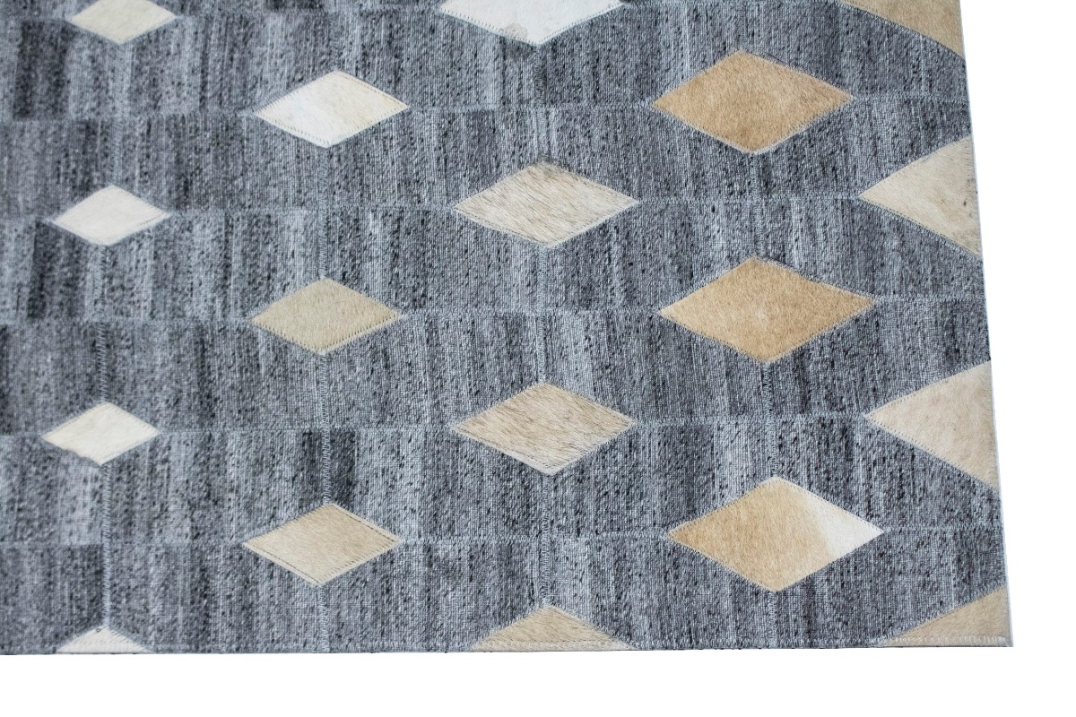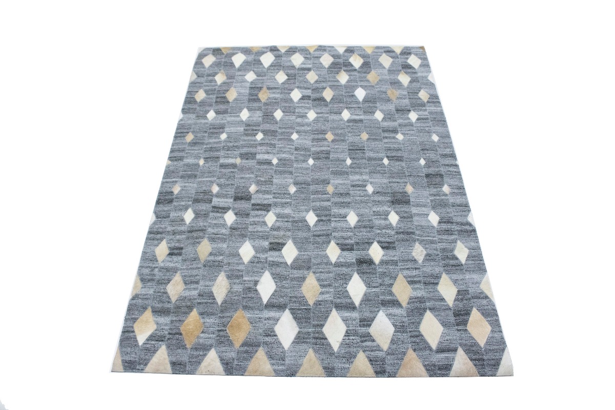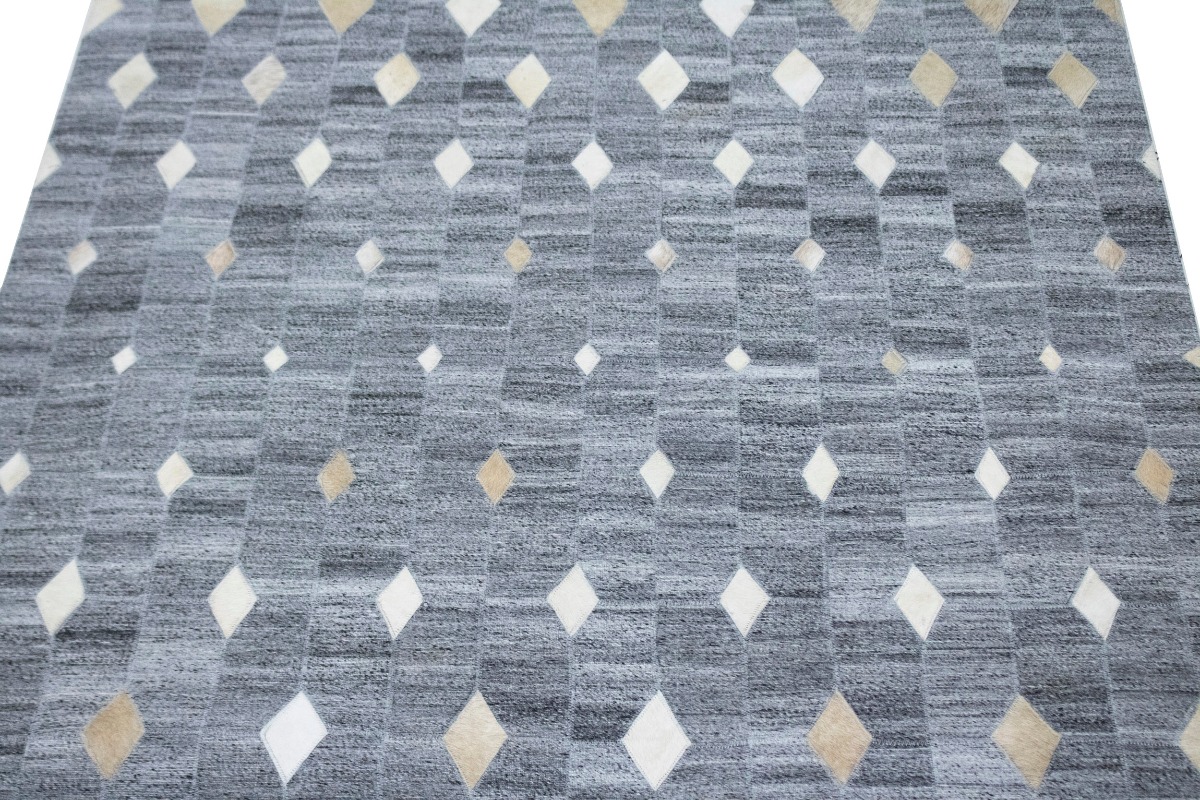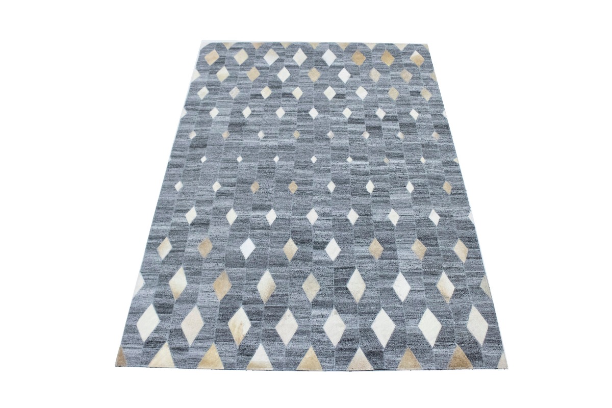 Grey Geometric 4X6 Modern Cowhide Patchwork Print Oriental Rug