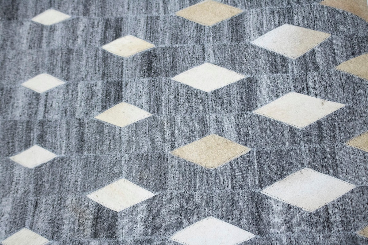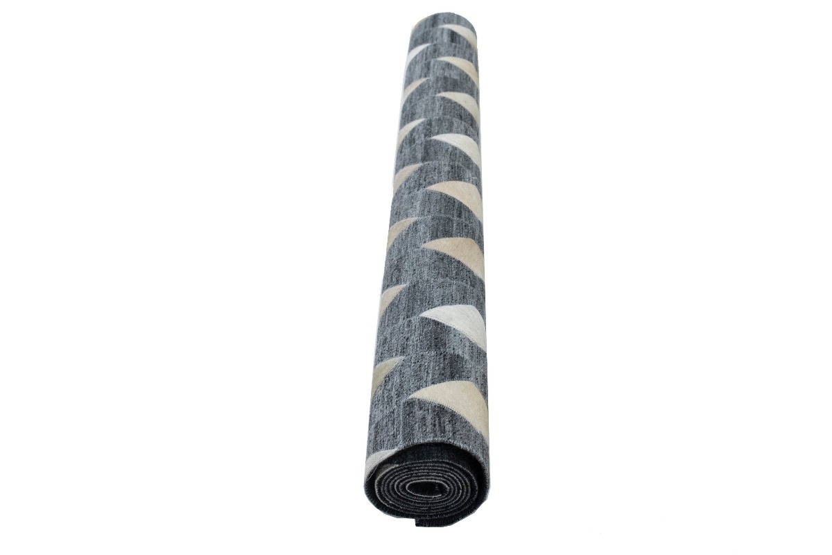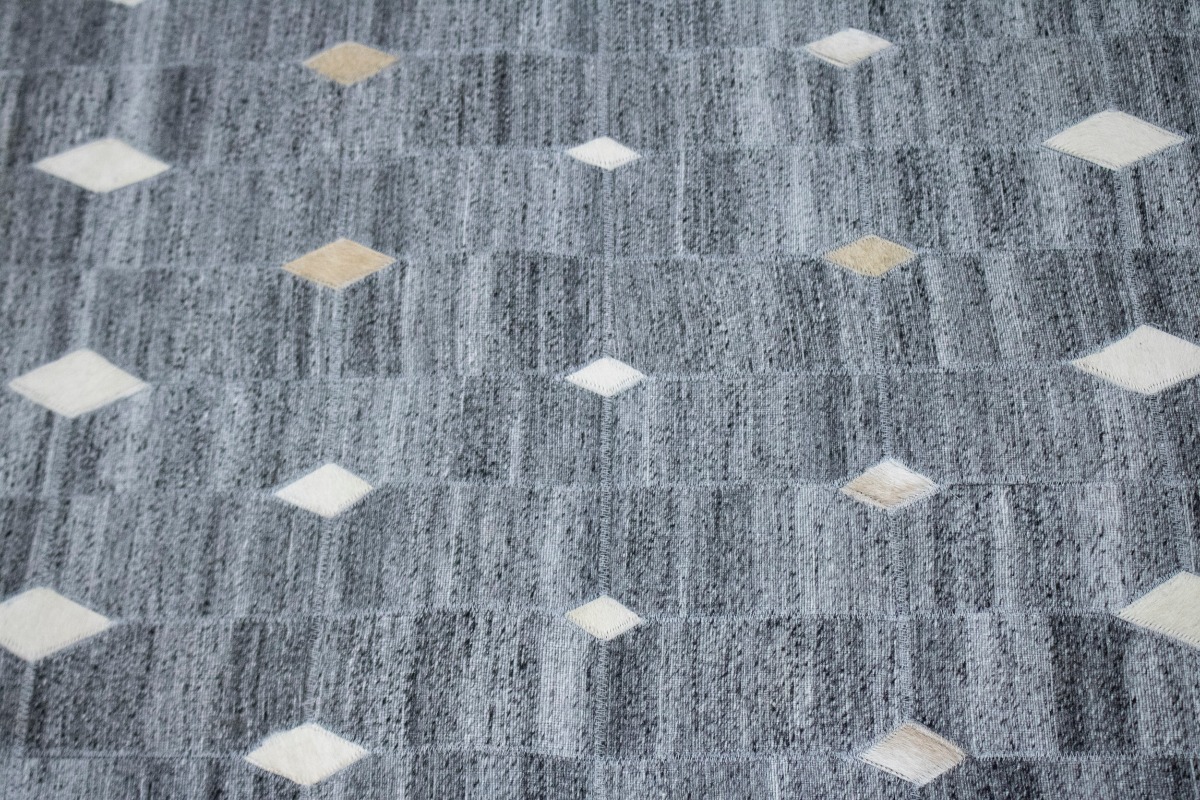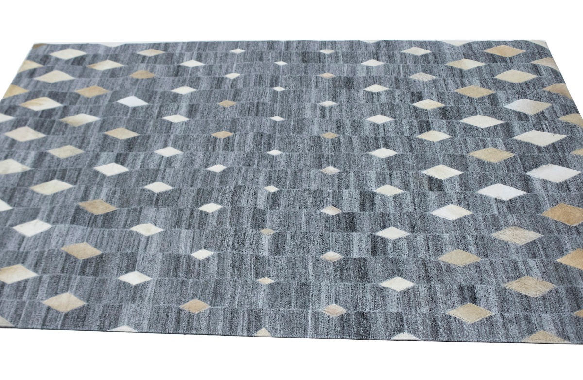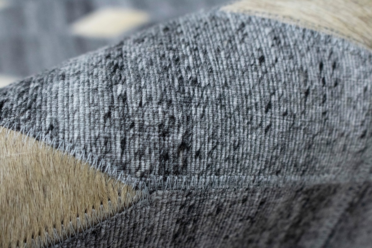 Grey Geometric 4X6 Modern Cowhide Patchwork Print Oriental Rug