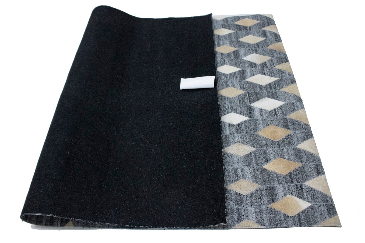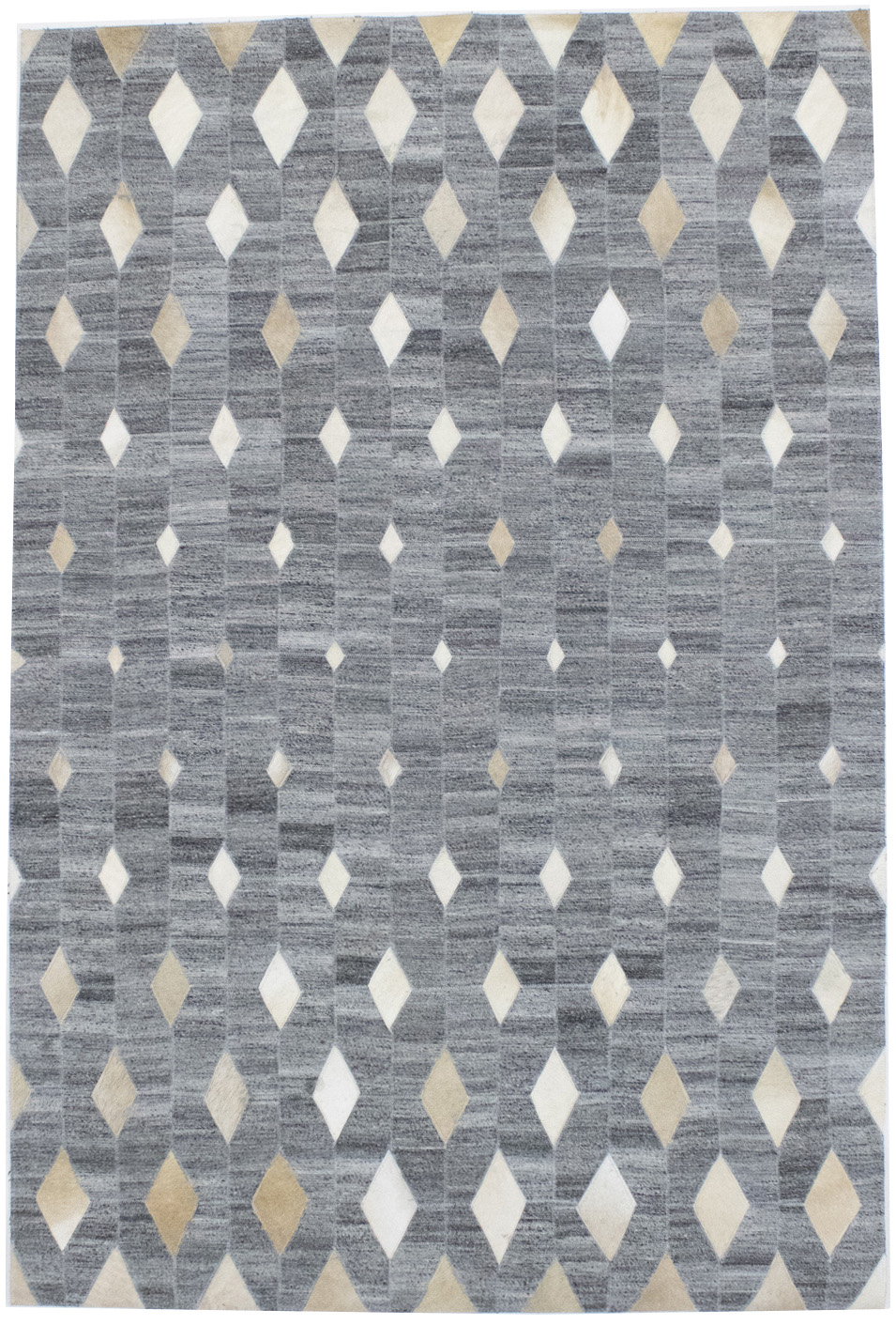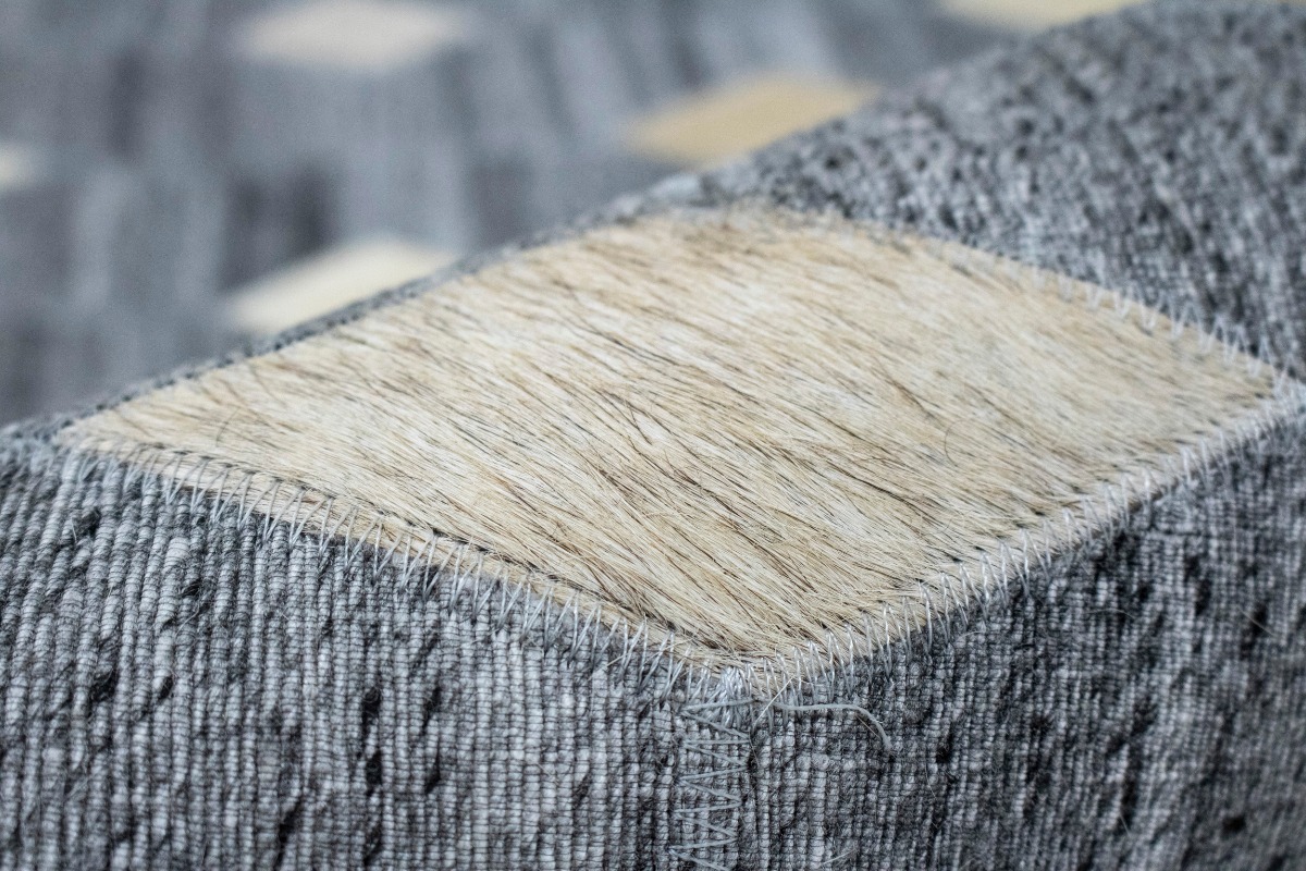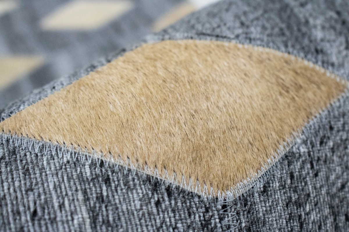 Grey Geometric 4X6 Modern Cowhide Patchwork Print Oriental Rug