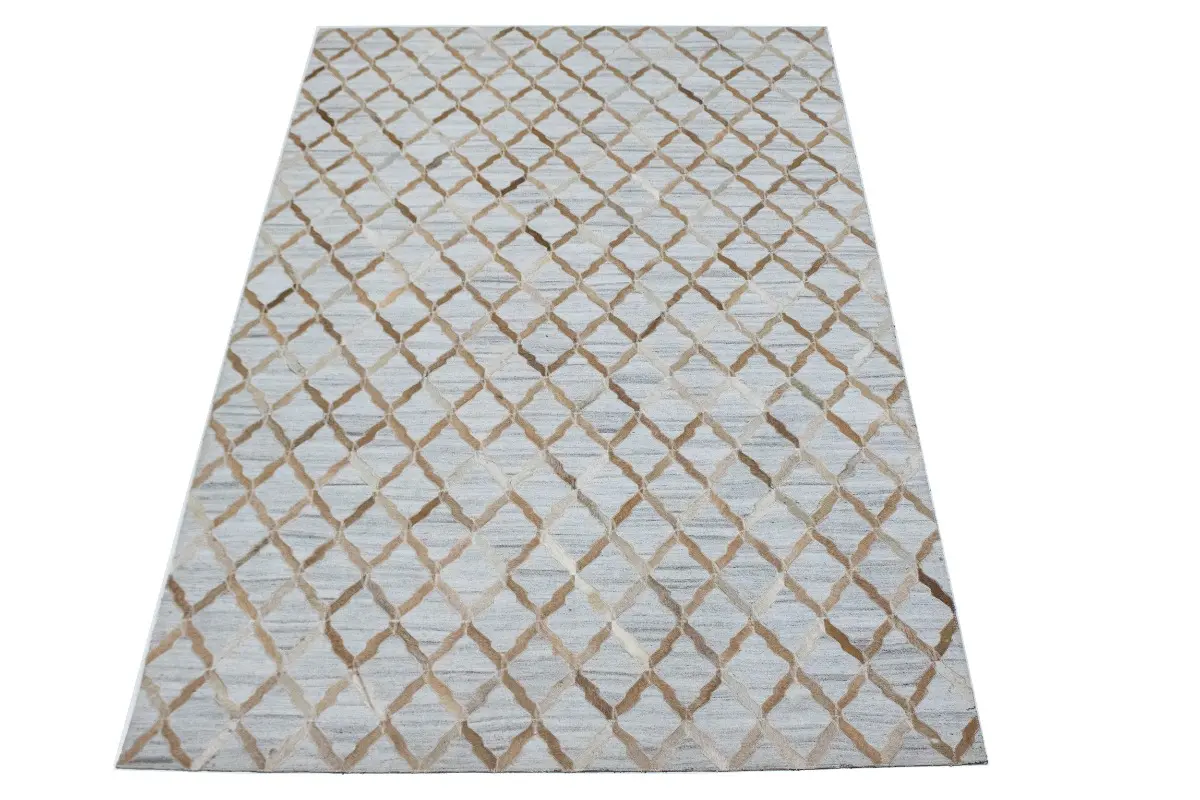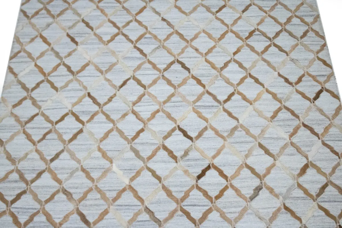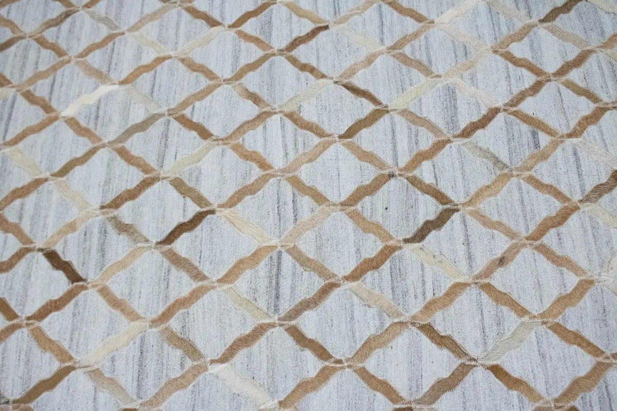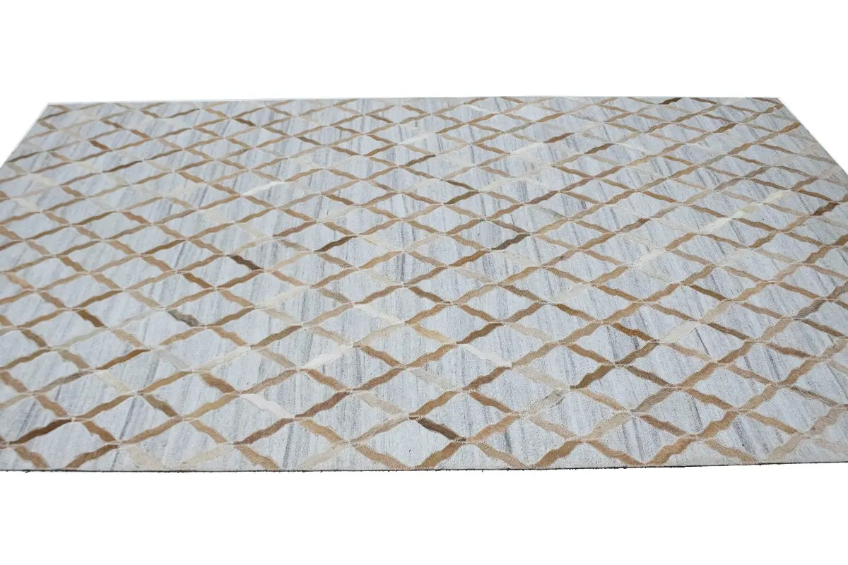 Modern Cowhide Patchwork Hand-Crafted 5X8 Contemporary Home Decor Leather Carpet