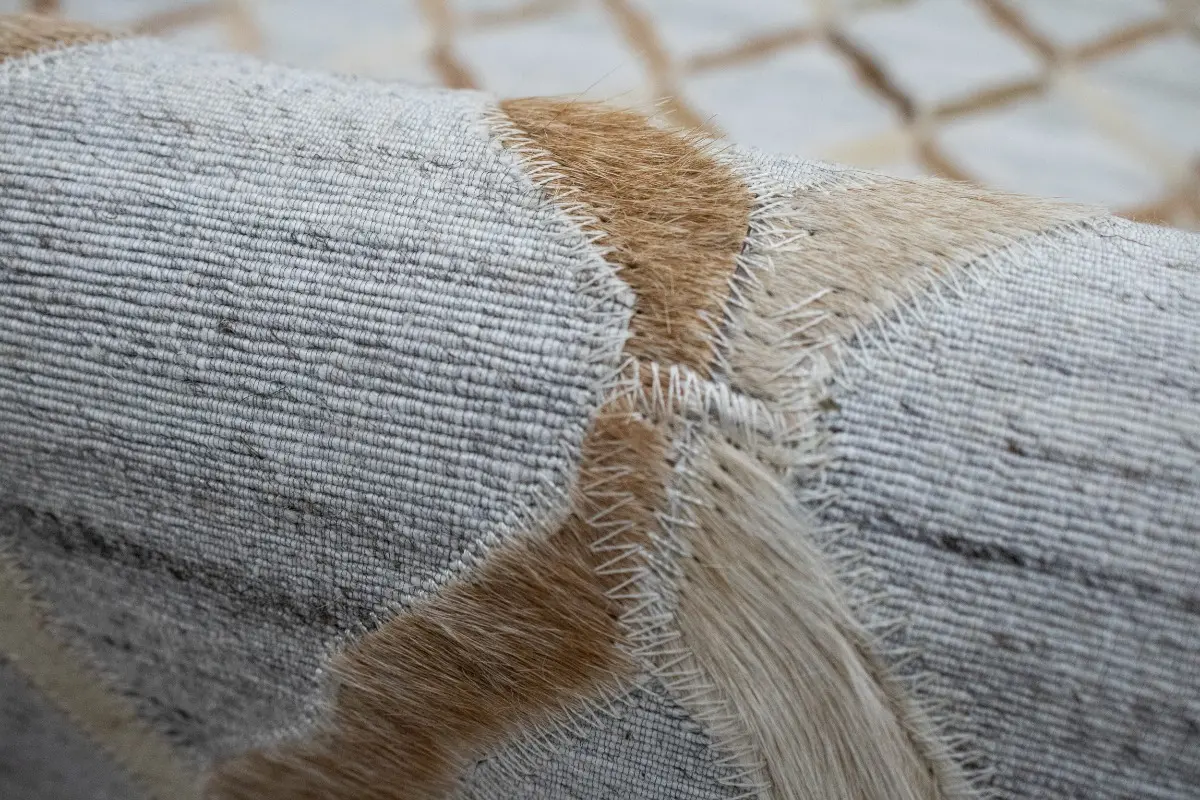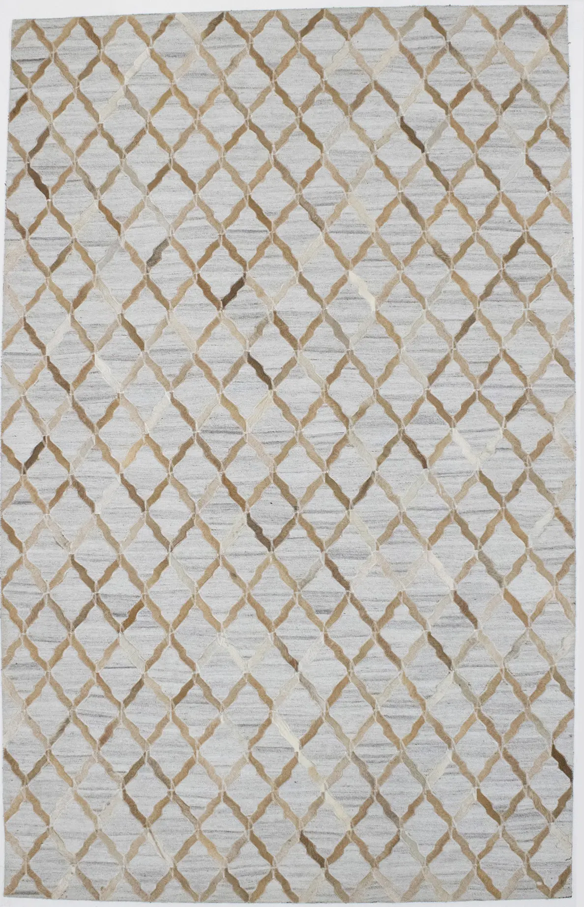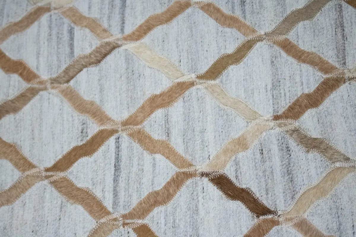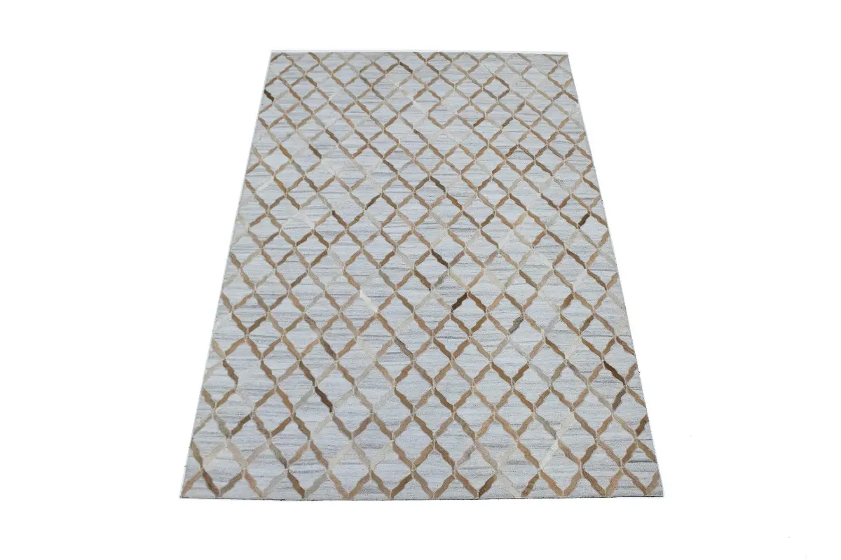 Modern Cowhide Patchwork Hand-Crafted 5X8 Contemporary Home Decor Leather Carpet