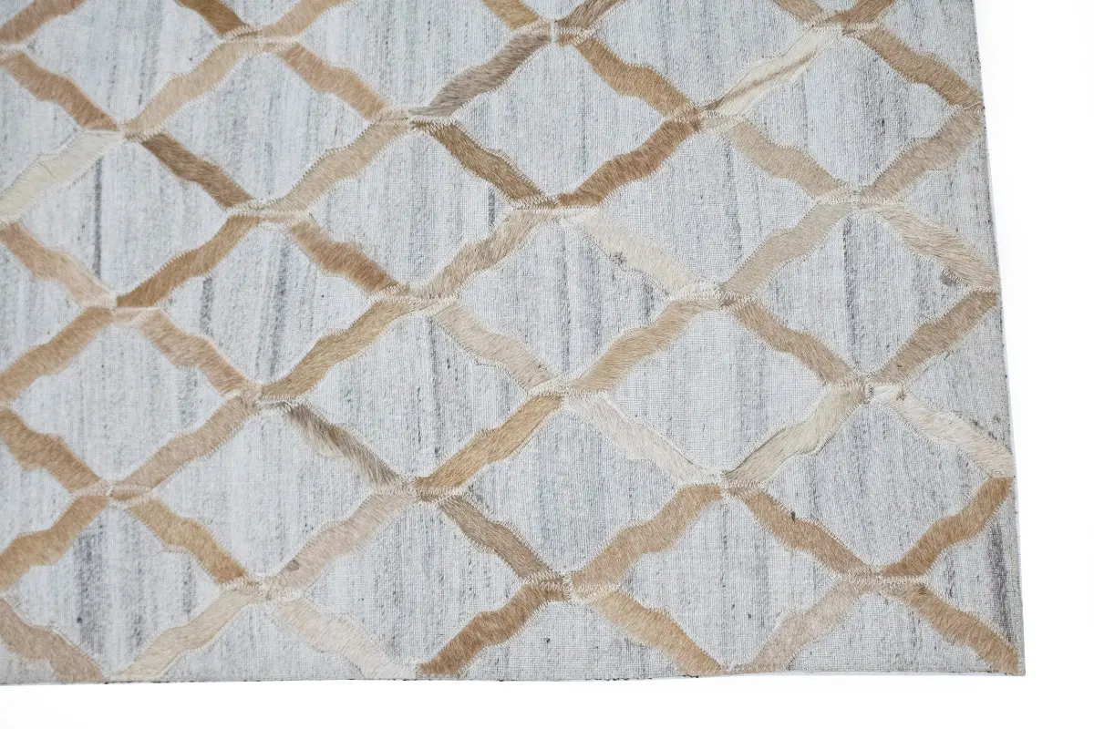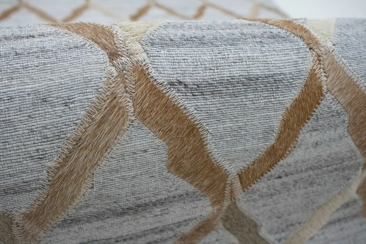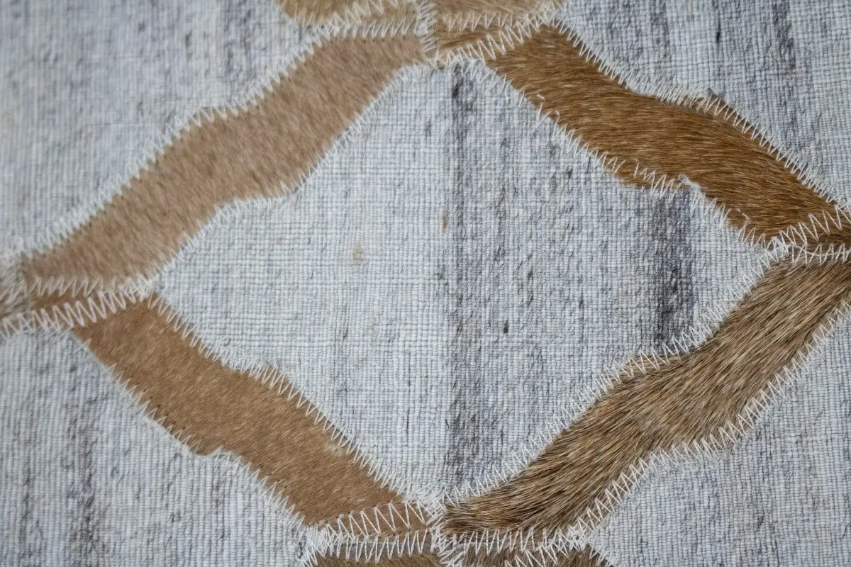 Grey Geometric 5X8 Cowhide Patchwork Modern Rug