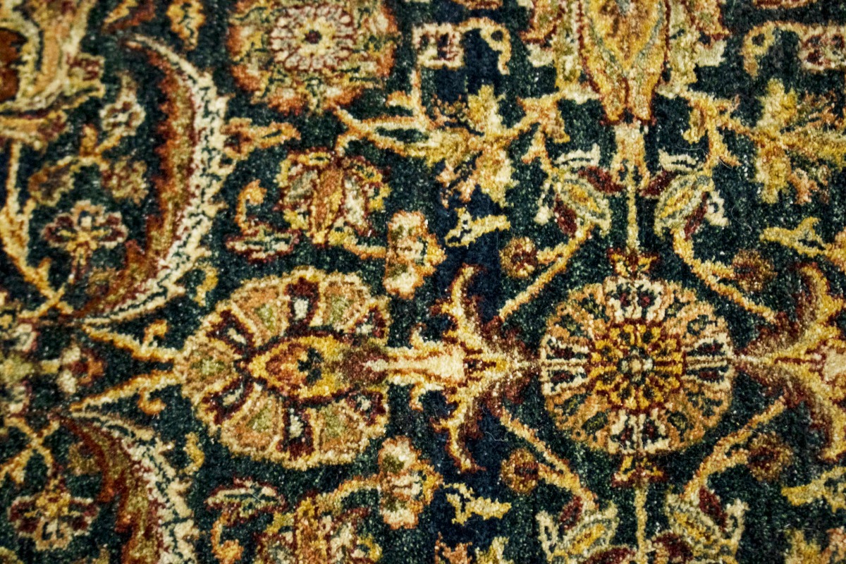 This original 8X10 hale navy new Oriental rug was finely knotted by the hands of weavers influenced by a variety of amazing artistic designs, to recreate the aged look of the exceptional piece with a richness of color and embellished background field. What set this vintage style Oriental area rug from the others are the material and dye used (wool pile and cotton foundation), knot count, antique designs, fantastic grades, and its regional historical connection: it has deep roots, from the story of the people who produced it to the meaning of the symbols and colors displayed across its canvas that have been praised for centuries. This Indian home décor carpet will be completely cozy and inviting that never will go out of style! Also, this Oriental rug would be among your most valuable treasures, it is a great investment that increase in value over time, and it will last a lifetime because was woven with high-quality, all-natural wool. Eco-friendly, opulent yet affordable; this rug/runner will give you an extra pop of character to help define your home environment with luxury and warmth that will capture the eyes and attention of your audience (homeowners, designers, decorators, family and friends). OT-3432