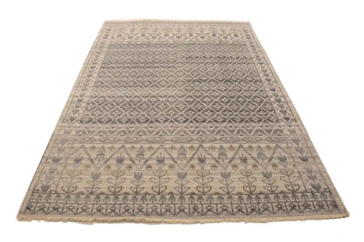 Hand Knotted 6X9 gray Oriental rug made with vegetable dyes (fine wool pile and cotton foundation), exceptional knot count, and appealing ancient designs. This Oriental rug never will go out of style and would be among your most valuable treasures.