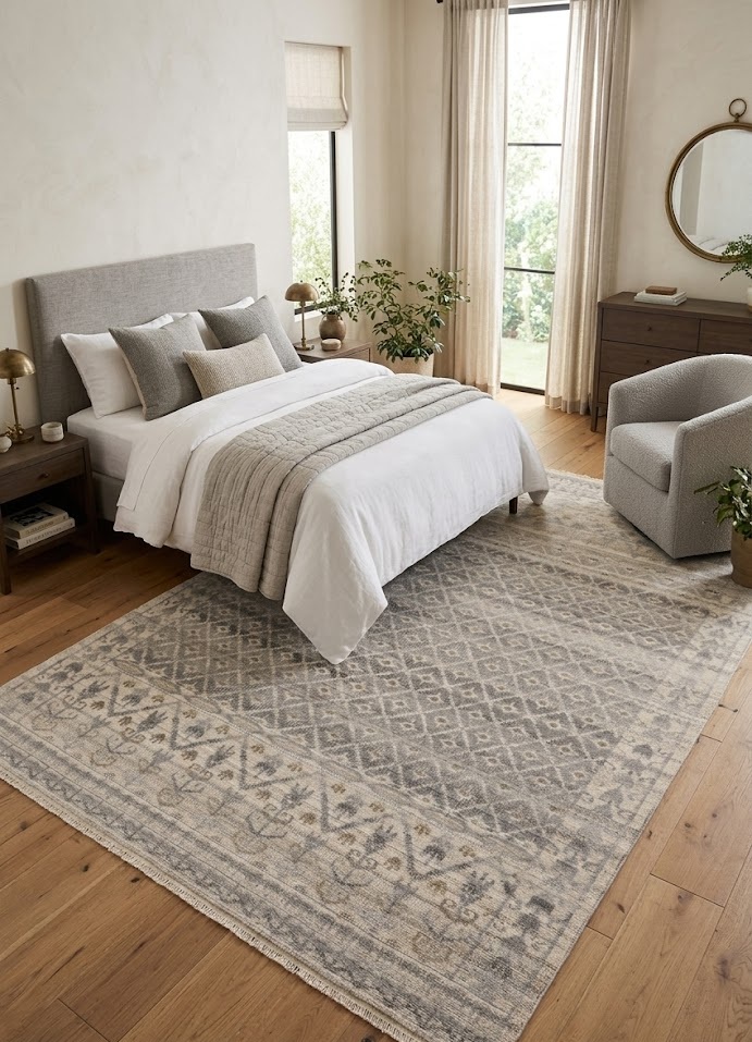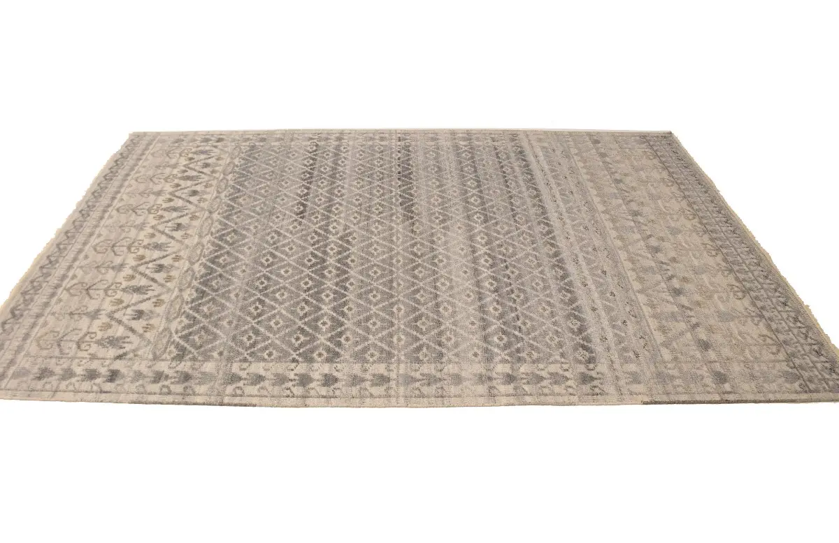 This authentic 6X9 gray new Oriental rug was masterly knotted by the hands of weavers inspired by a variety of wonderful artistic designs, to recreate the aged look of the original piece with a richness of color and intricate patterned background field. What set this vintage style Oriental area rug from the others are the material and dye used (wool pile and cotton foundation), knot count, antique designs, fantastic grades, and its regional historical connection: it has deep roots, from the story of the people who produced it to the meaning of the symbols and colors displayed across its canvas that have been praised for centuries. This Indian home décor carpet will be completely cozy and inviting that never will go out of style! Also, this Oriental rug would be among your most valuable treasures, it is a great investment that accrues value over time, and it will last for generations because was woven with high-quality, all-natural wool. Environmentally friendly, opulent yet affordable; this rug will give you a thorough amount of character to help define your living space with luxury and warmth that will capture the eyes and attention of your audience (homeowners, designers, decorators, family and friends). OT-6845
