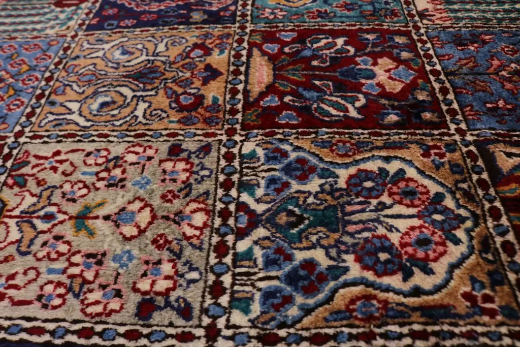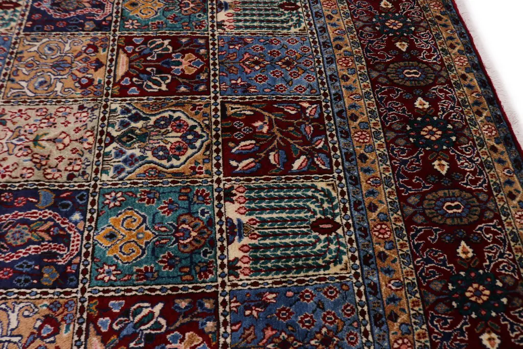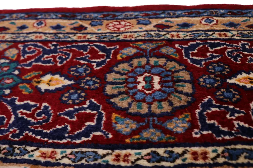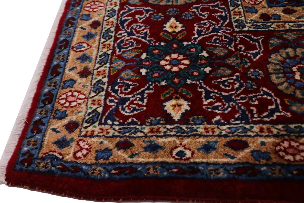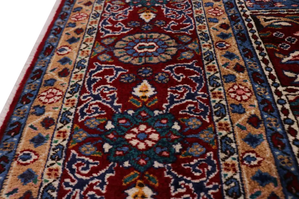 Handmade Persian rug made with vegetable dyes (fine wool pile and cotton foundation), superior knot count, and appealing ancient designs. This Oriental rug never will go out of style and would be among your most valuable treasures.