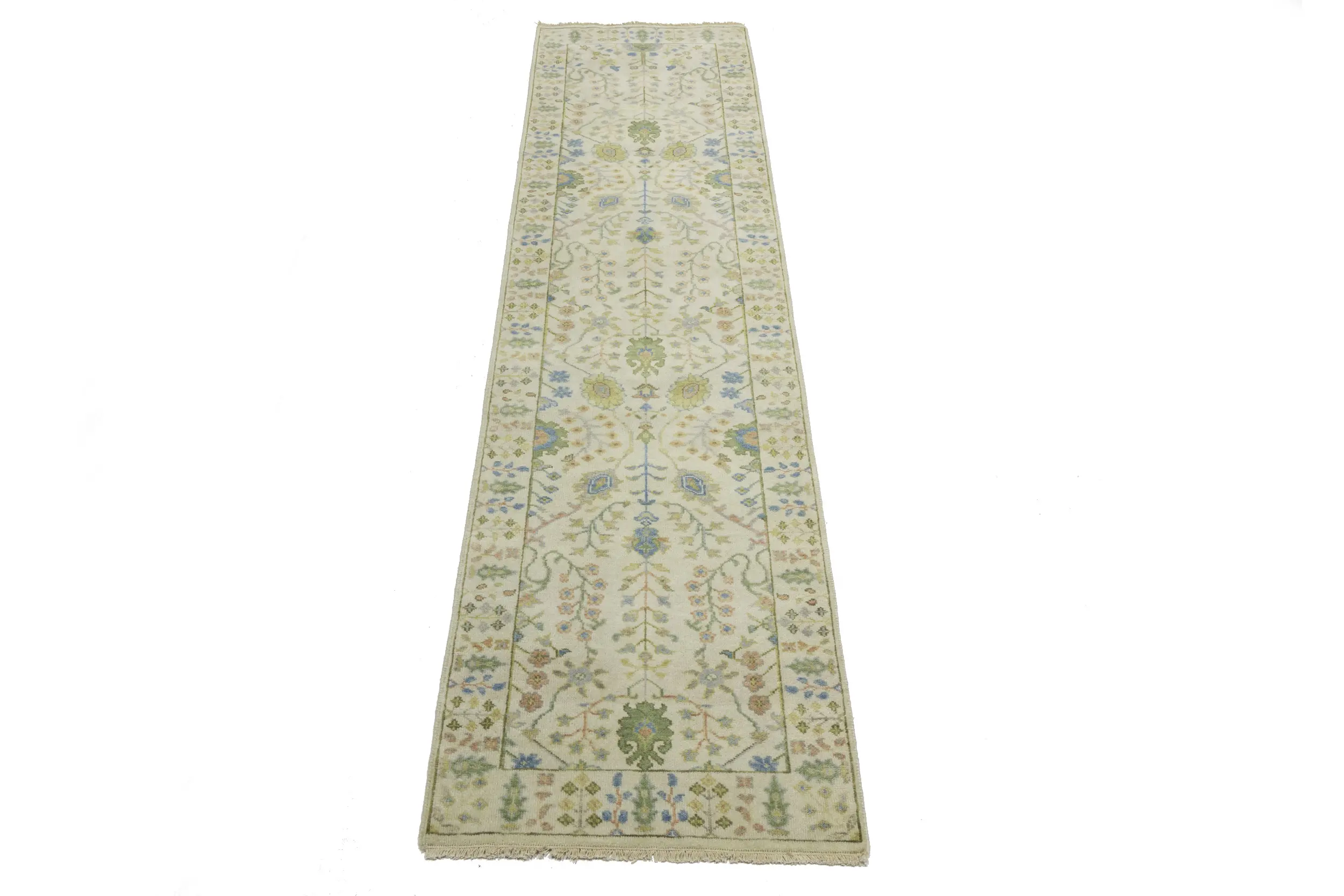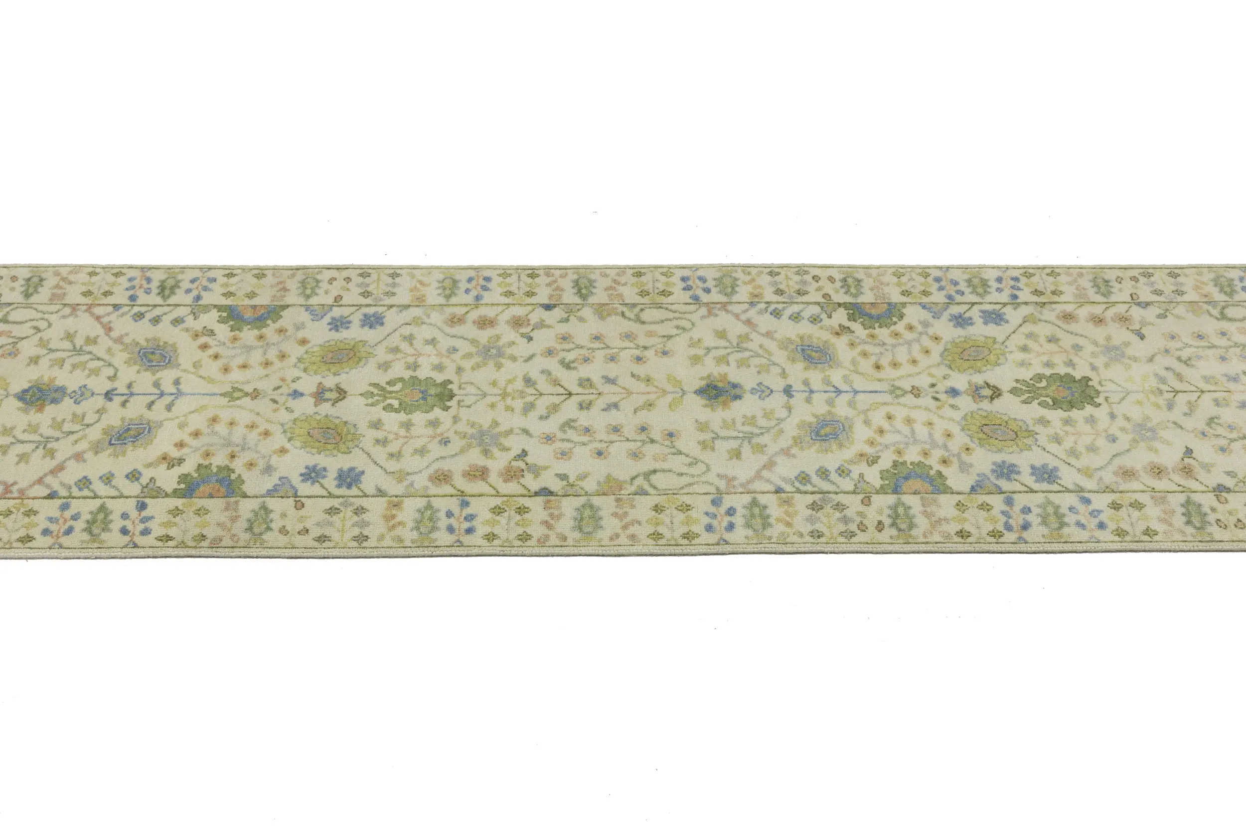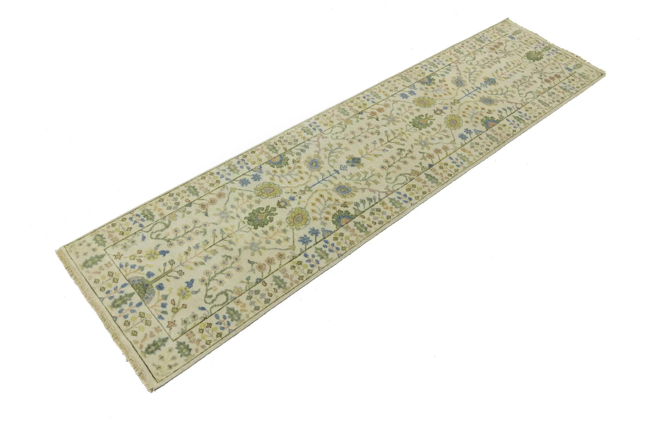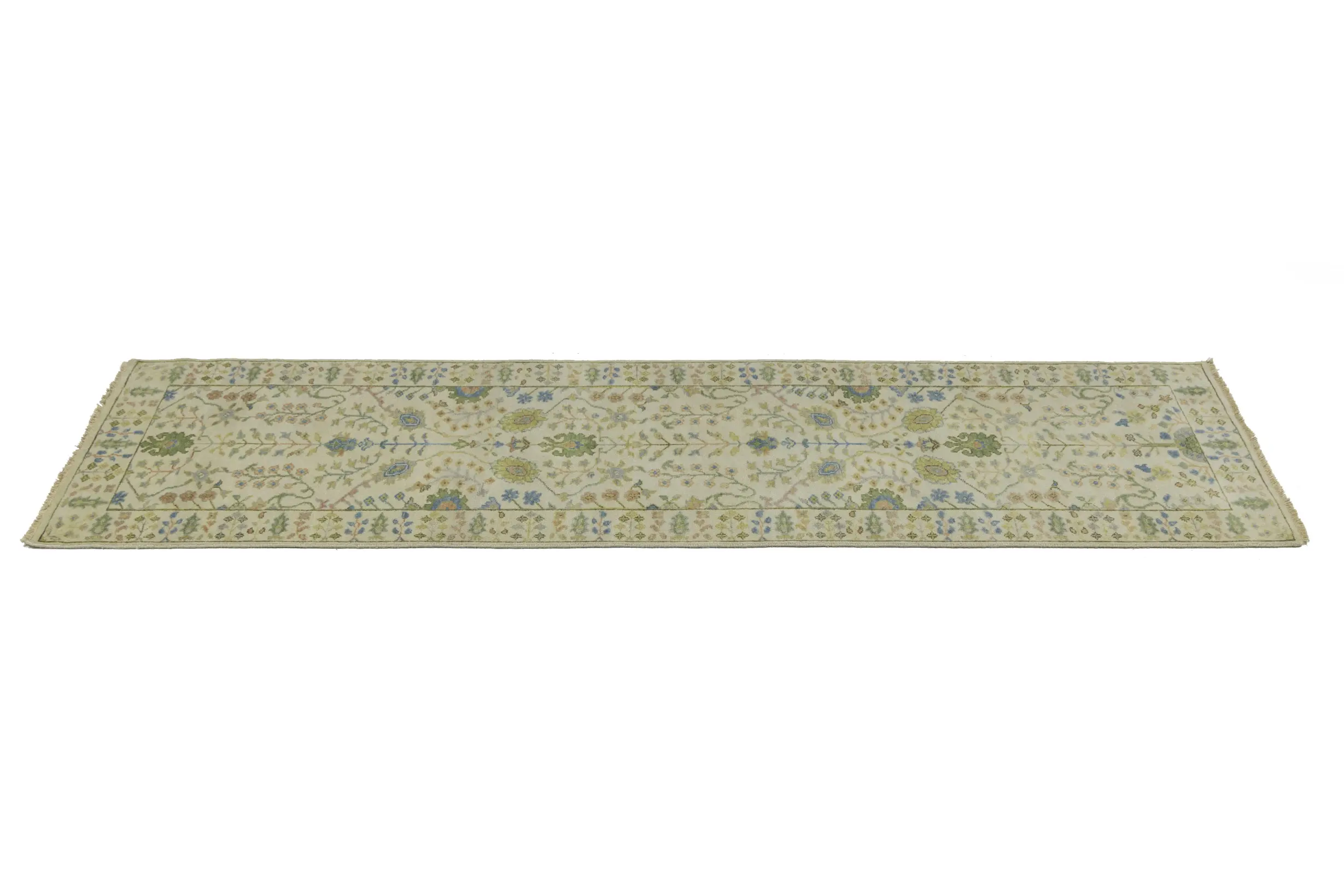 Handmade 2'6X10 ivory oriental runner made with vegetable dyes (fine wool pile and cotton foundation), superior knot count, and appealing ancient designs. This Oriental runner never will go out of style and would be among your most valuable treasures.