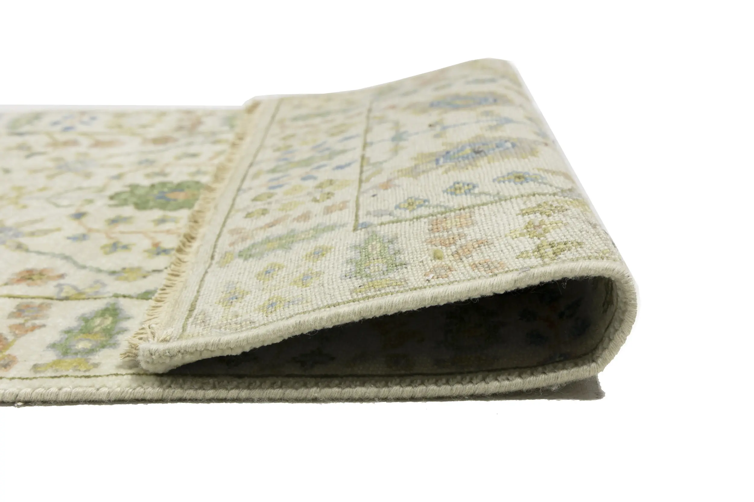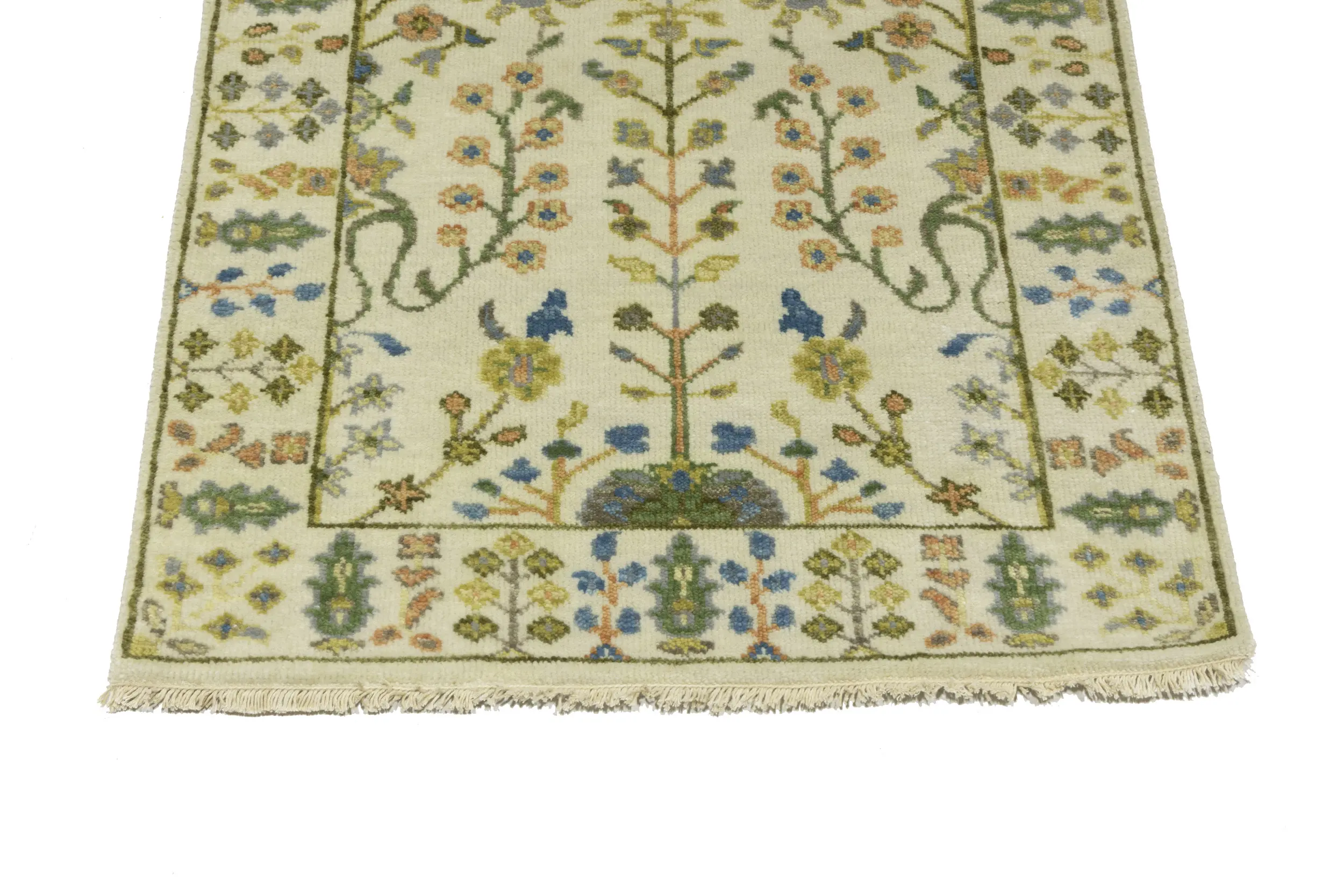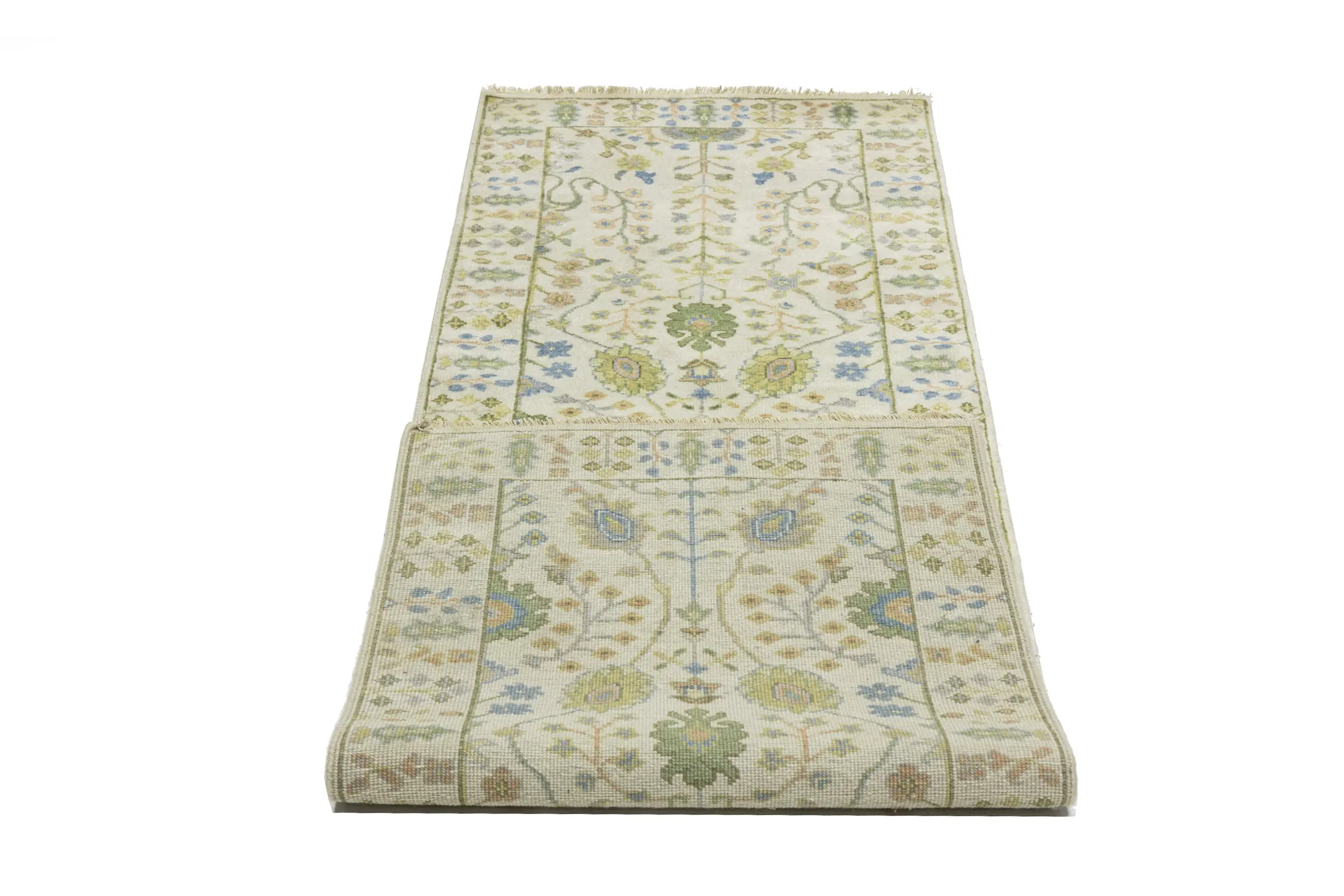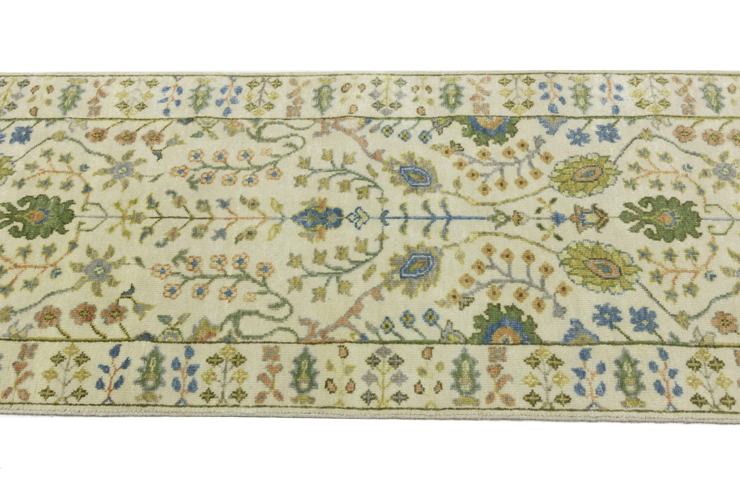 Handmade 2'5X8 ivory oriental runner made with vegetable dyes (fine wool pile and cotton foundation), superior knot count, and appealing ancient designs. This Oriental runner never will go out of style and would be among your most valuable treasures.