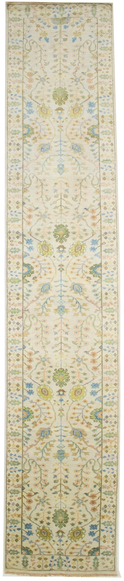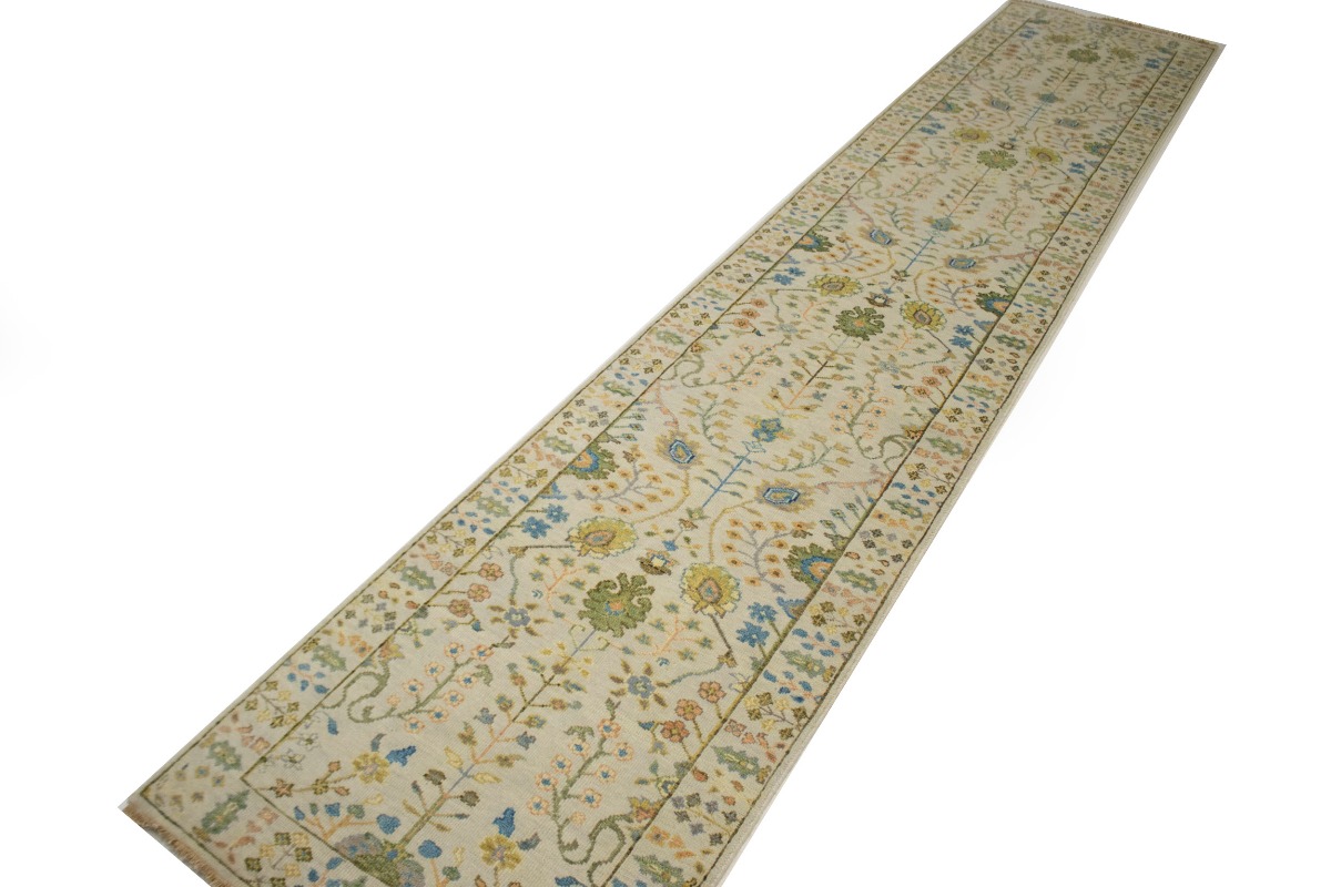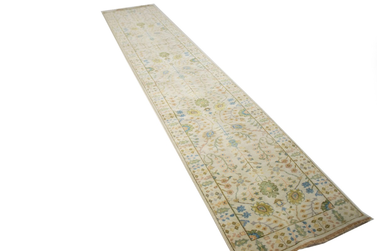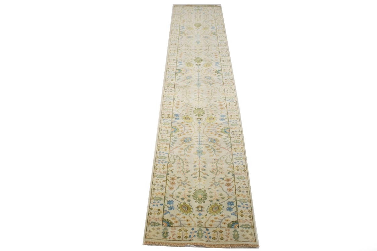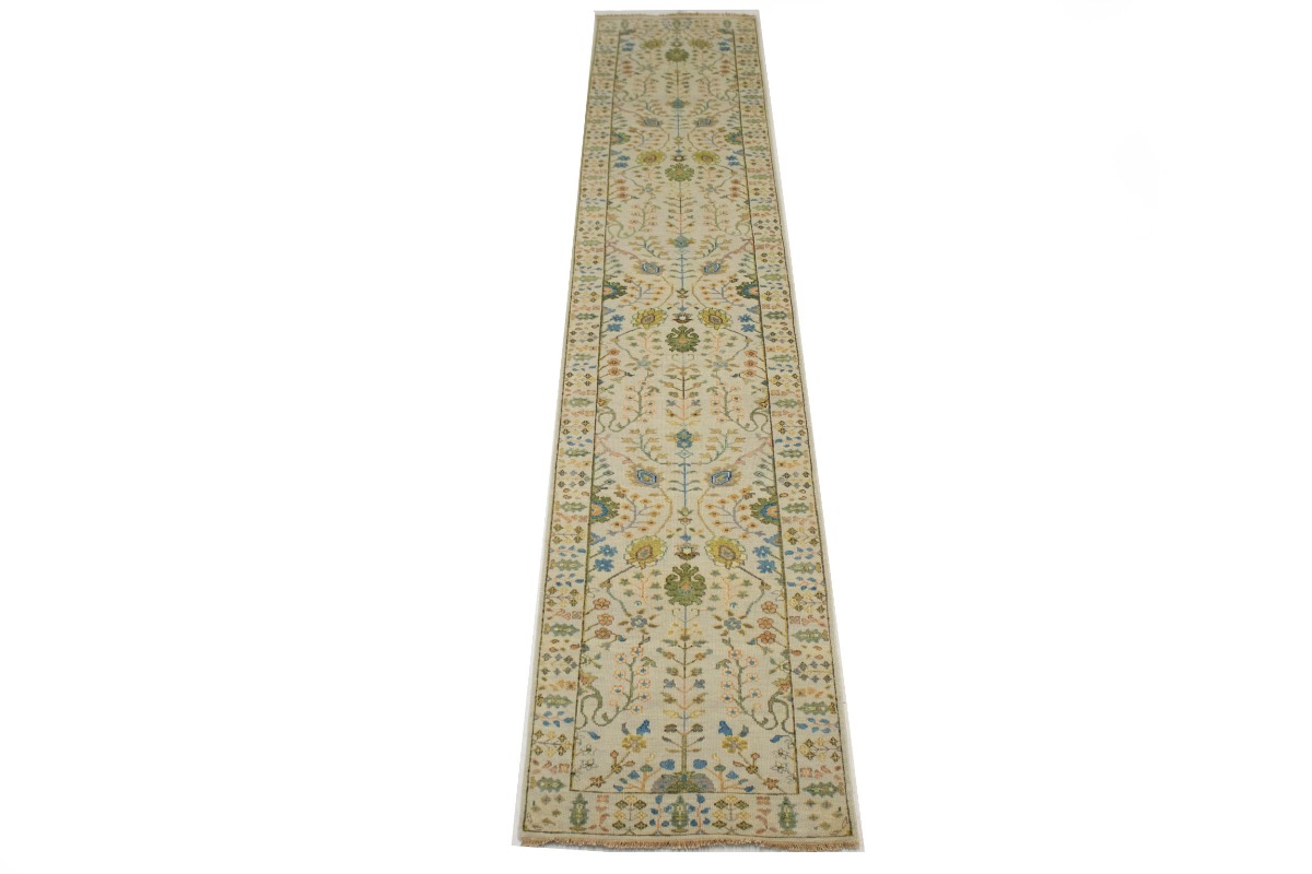 Handmade 3X14 ivory oriental runner made with vegetable dyes (fine wool pile and cotton foundation), exceptional knot count, and alluring ancient designs. This Oriental runner never will go out of style and would be among your most valuable treasures.