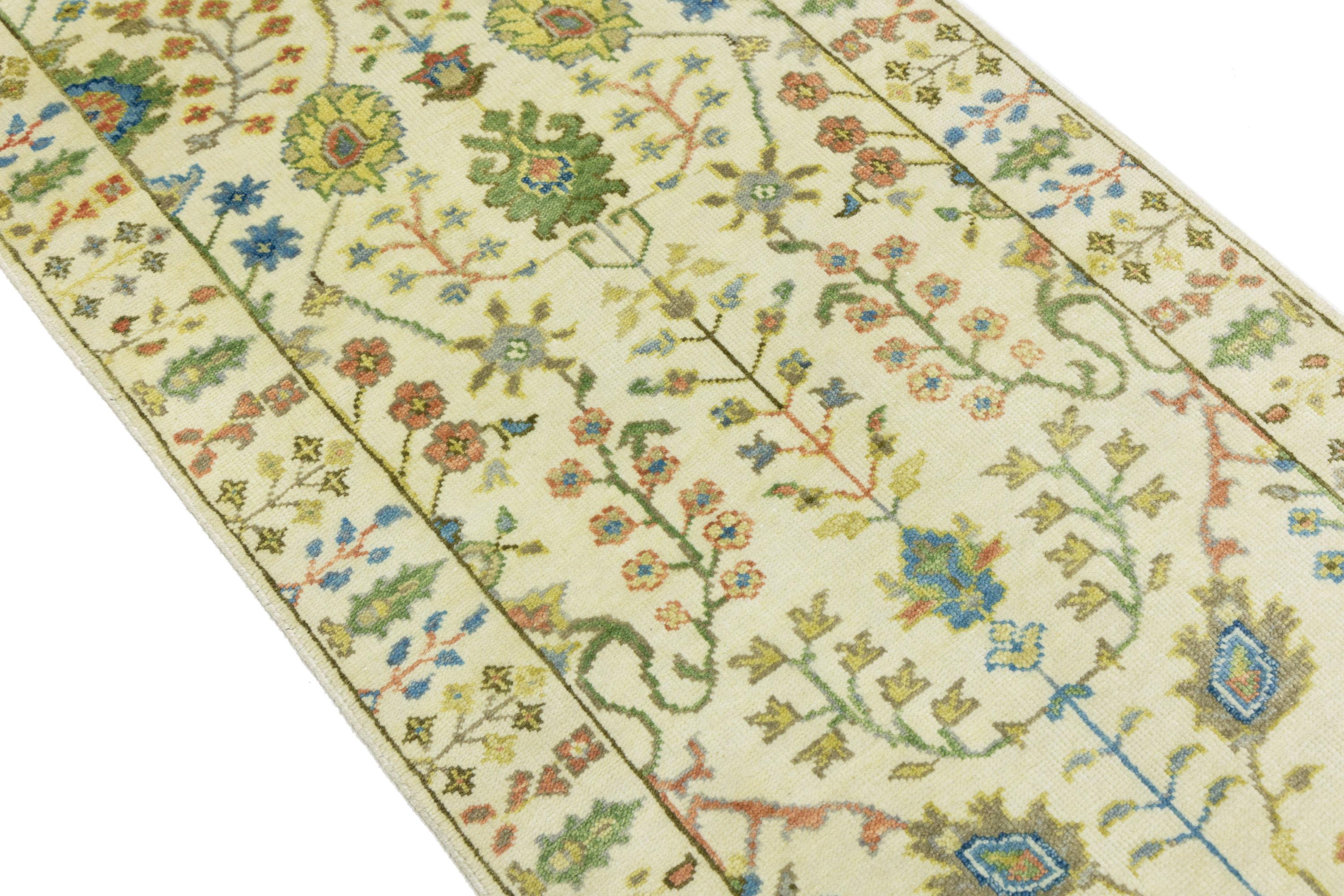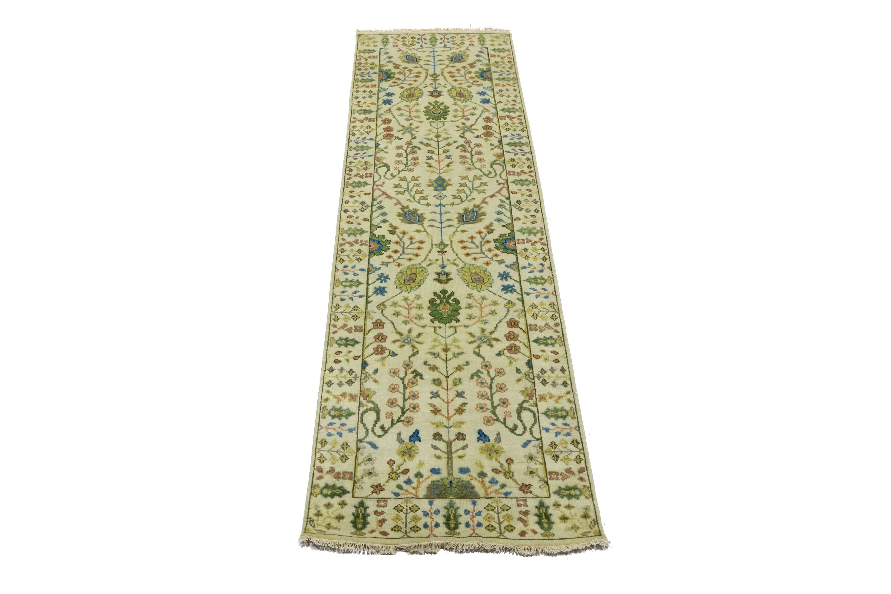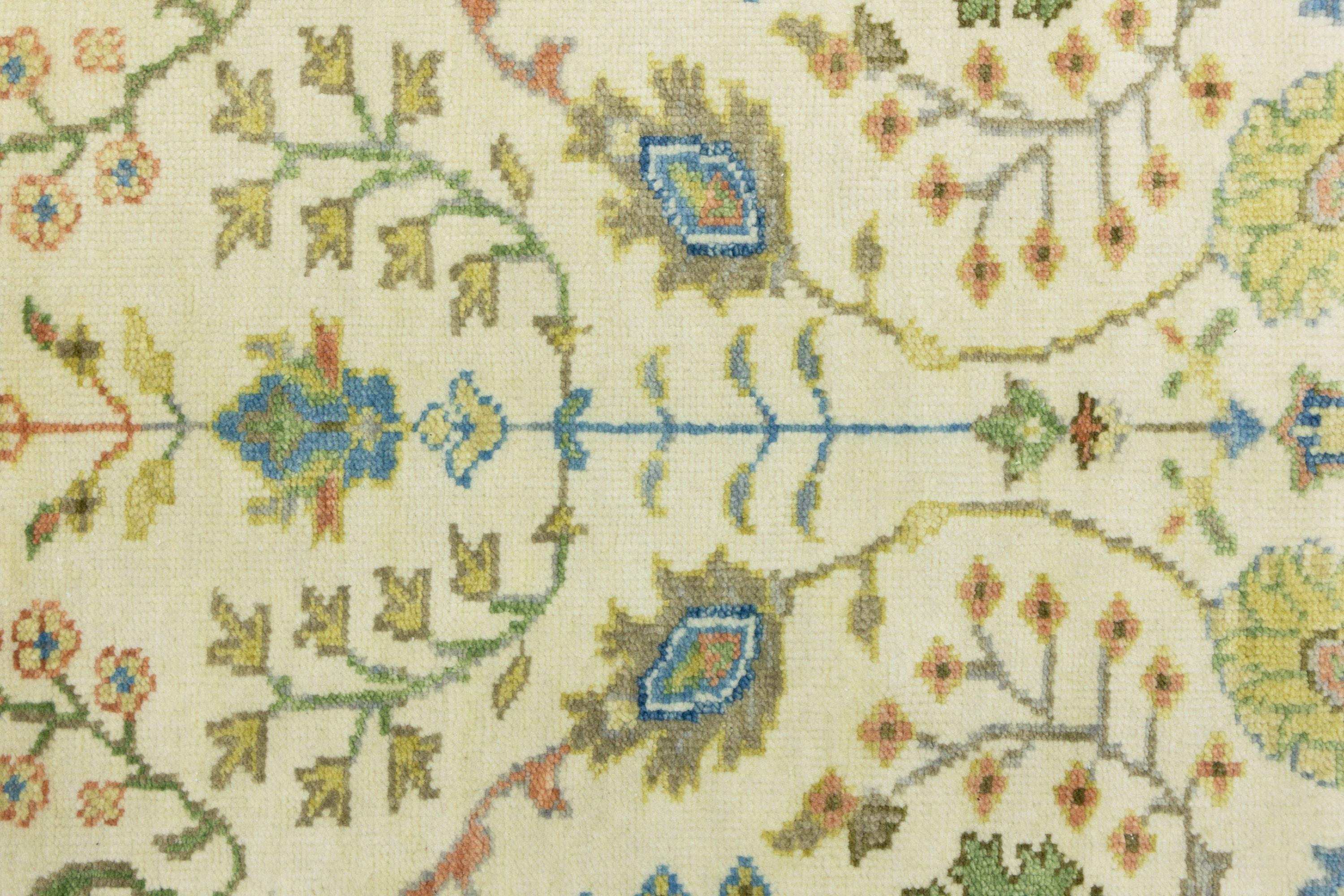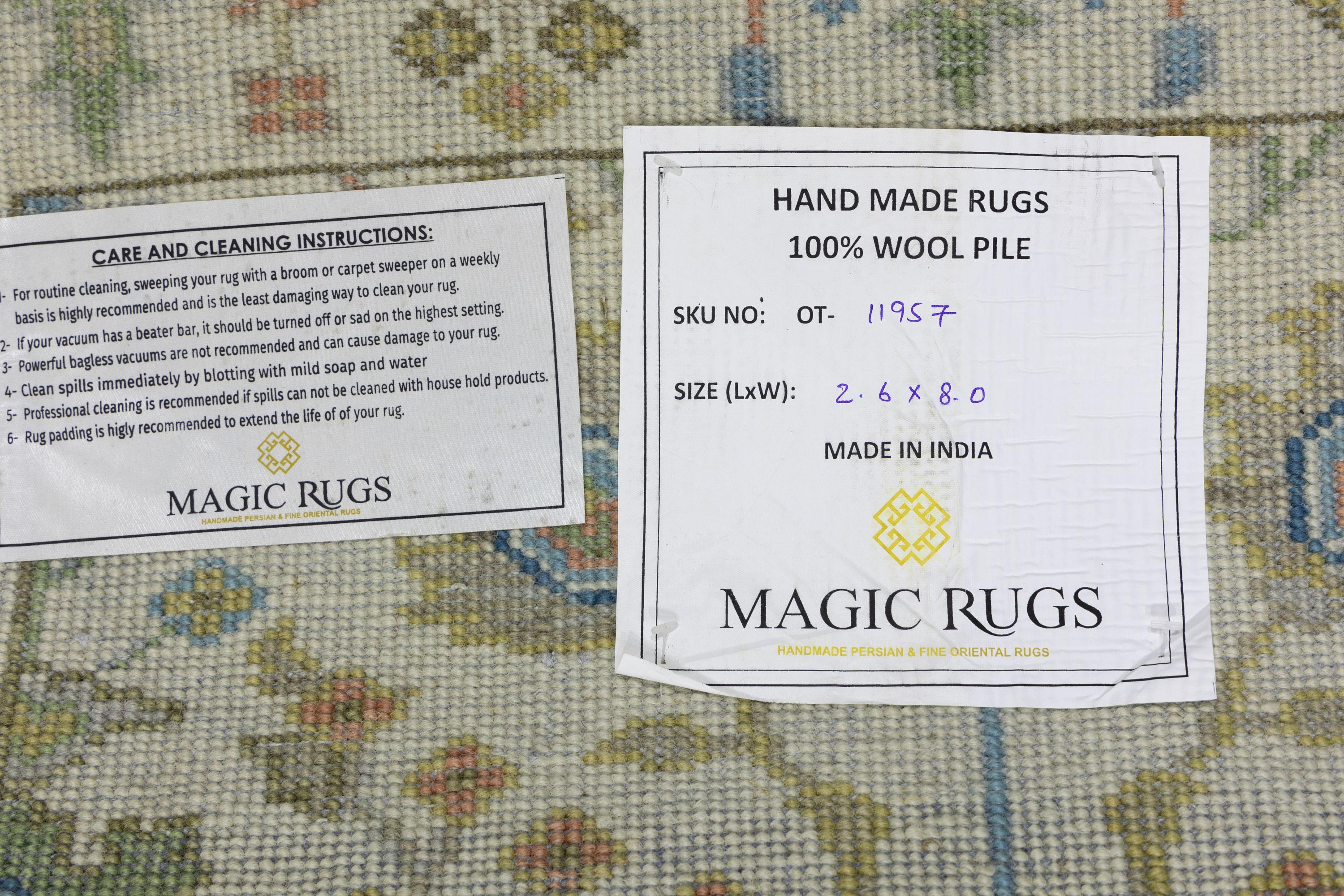 This genuine 2'6 X 8'0 ivory new Oriental rug was made by the hands of gifted weavers inspired by a variety of spectacular artistic designs, to recreate the aged look of the original piece with a richness of color and ornately patterned background field. What set this vintage style Oriental area rug from the others are the material and dye used (wool pile and cotton foundation), knot count, ancient designs, fantastic grades, and its regional historical connection: it has deep roots, from the story of the people who produced it to the meaning of the symbols and colors displayed across its canvas that have been praised for centuries. This Indian home décor carpet will be completely cozy and inviting that never will go out of style! Also, this Oriental rug would be among your most valuable treasures, it is a great investment that accrues value over time, and it will last for generations because was woven with high-quality, all-natural wool. Environmentally friendly, opulent yet affordable; this rug will give you a thorough amount of character to help define your living space with elegance and warmth that will capture the eyes and attention of your audience (homeowners, designers, decorators, family and friends). OT-11957