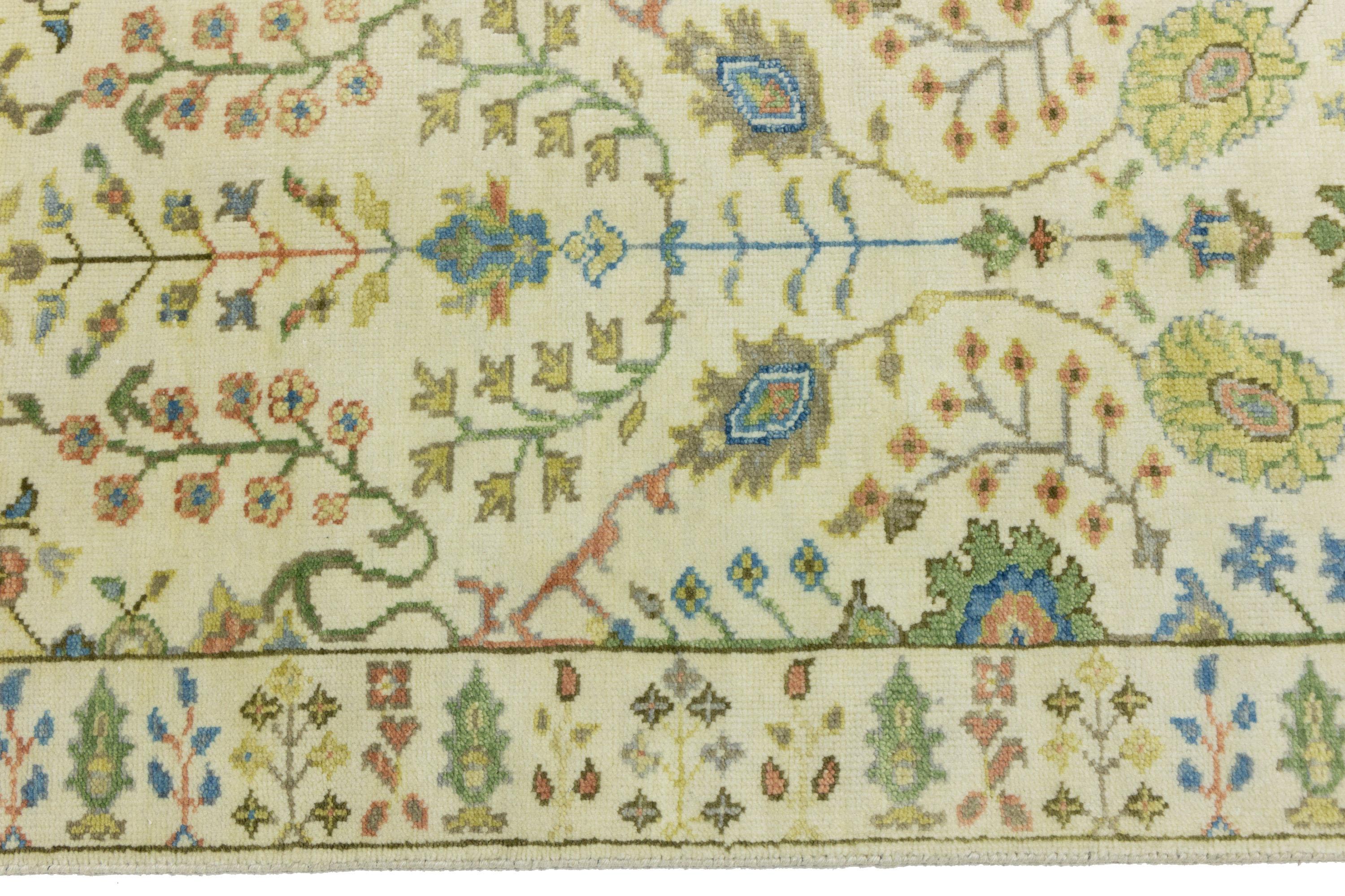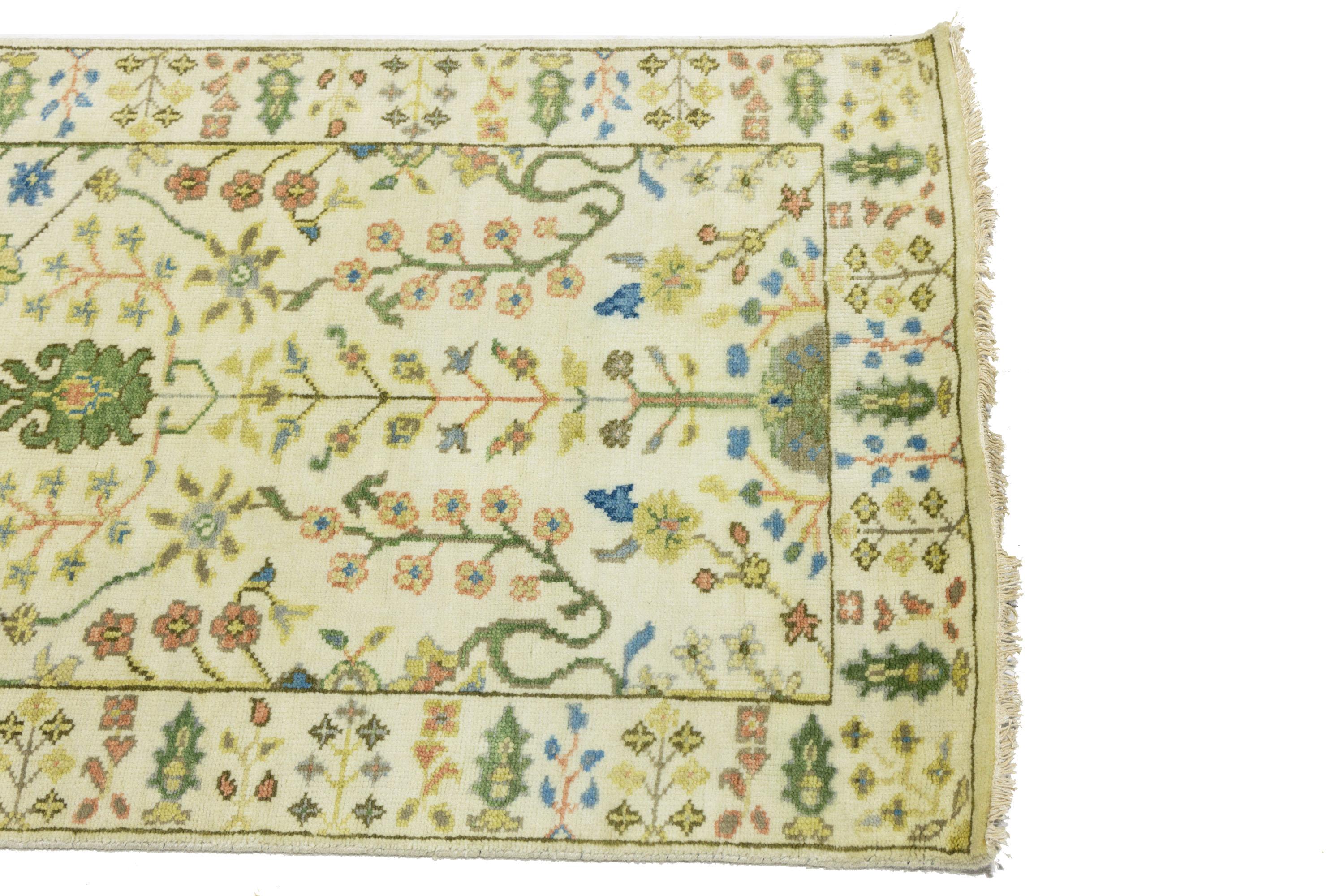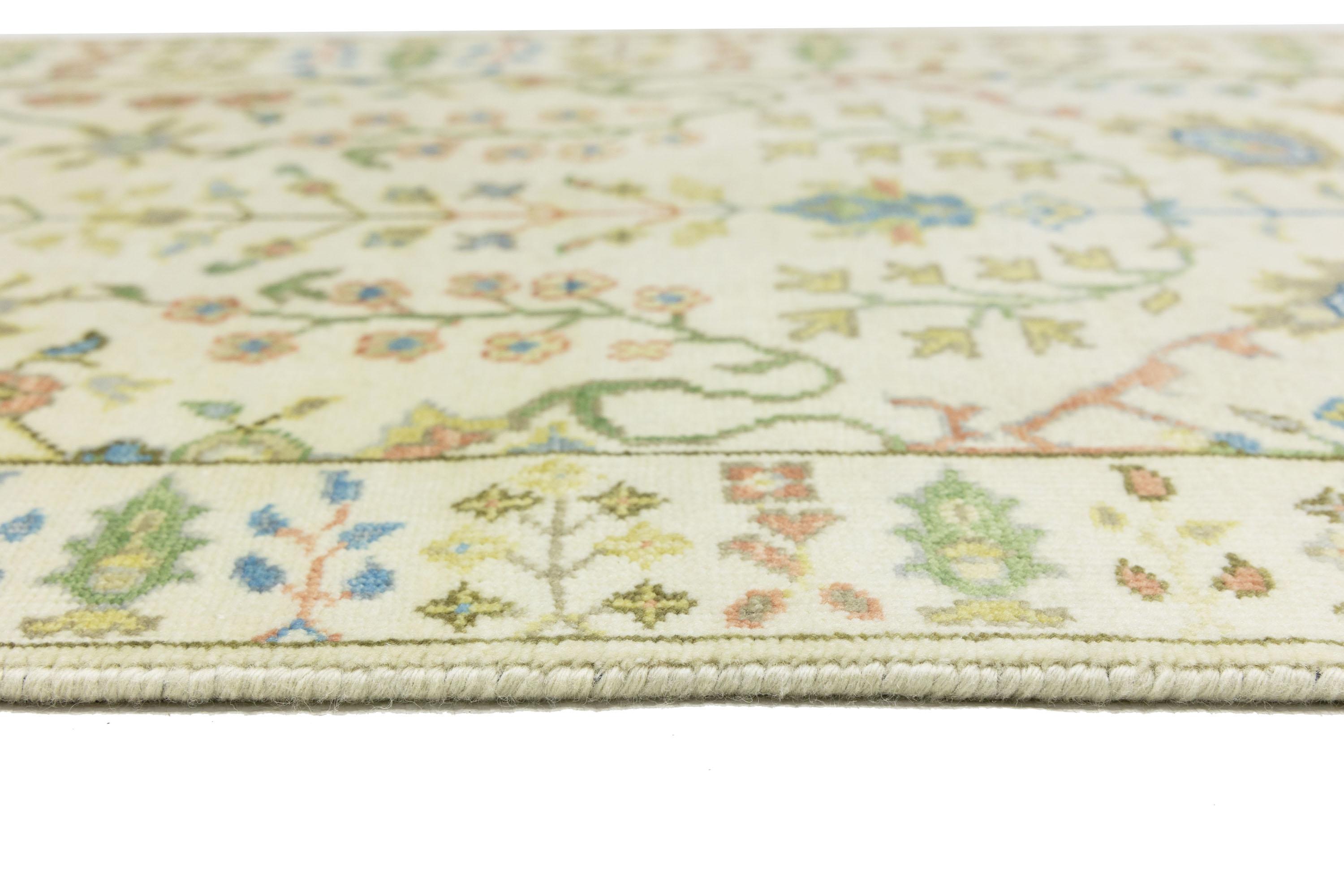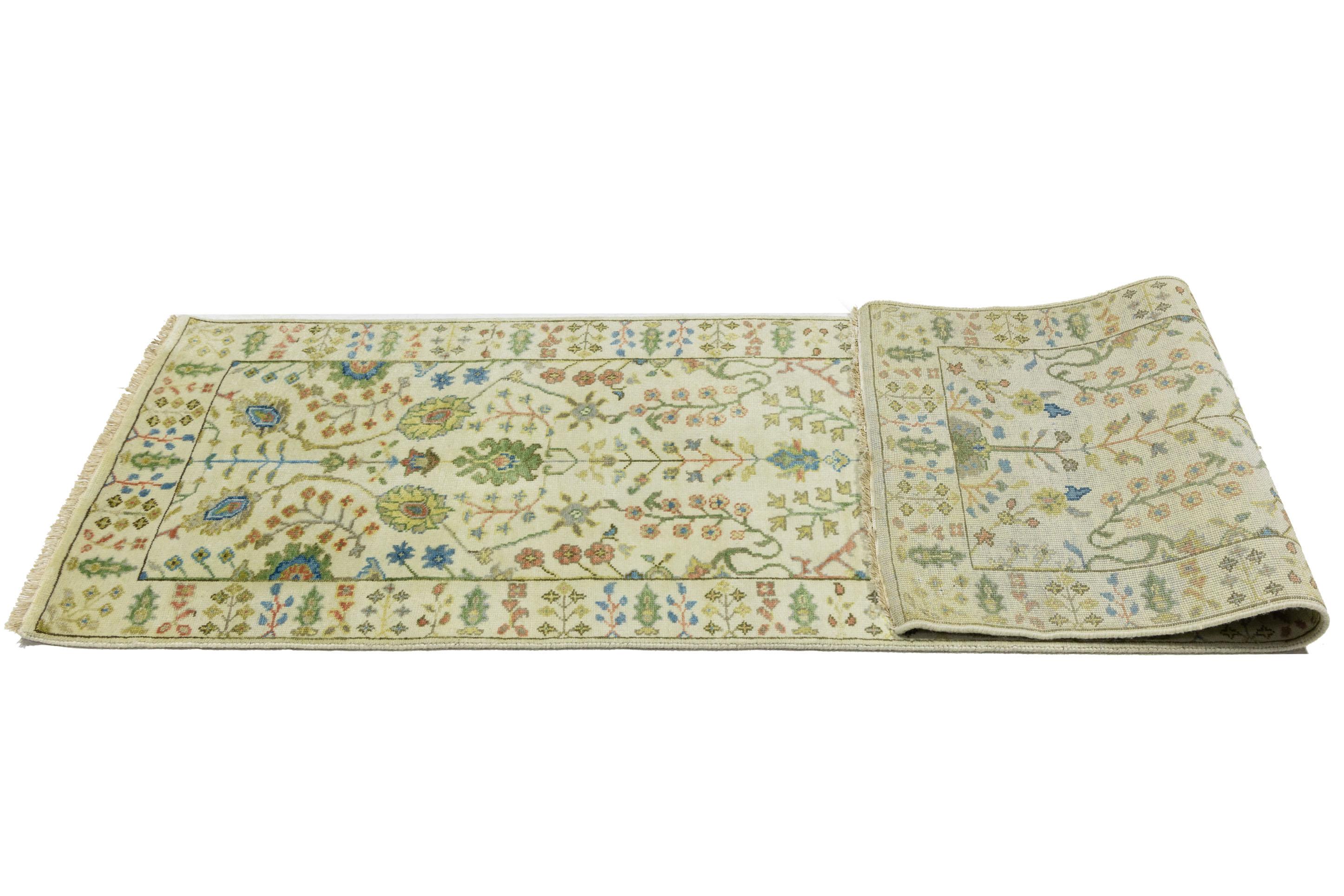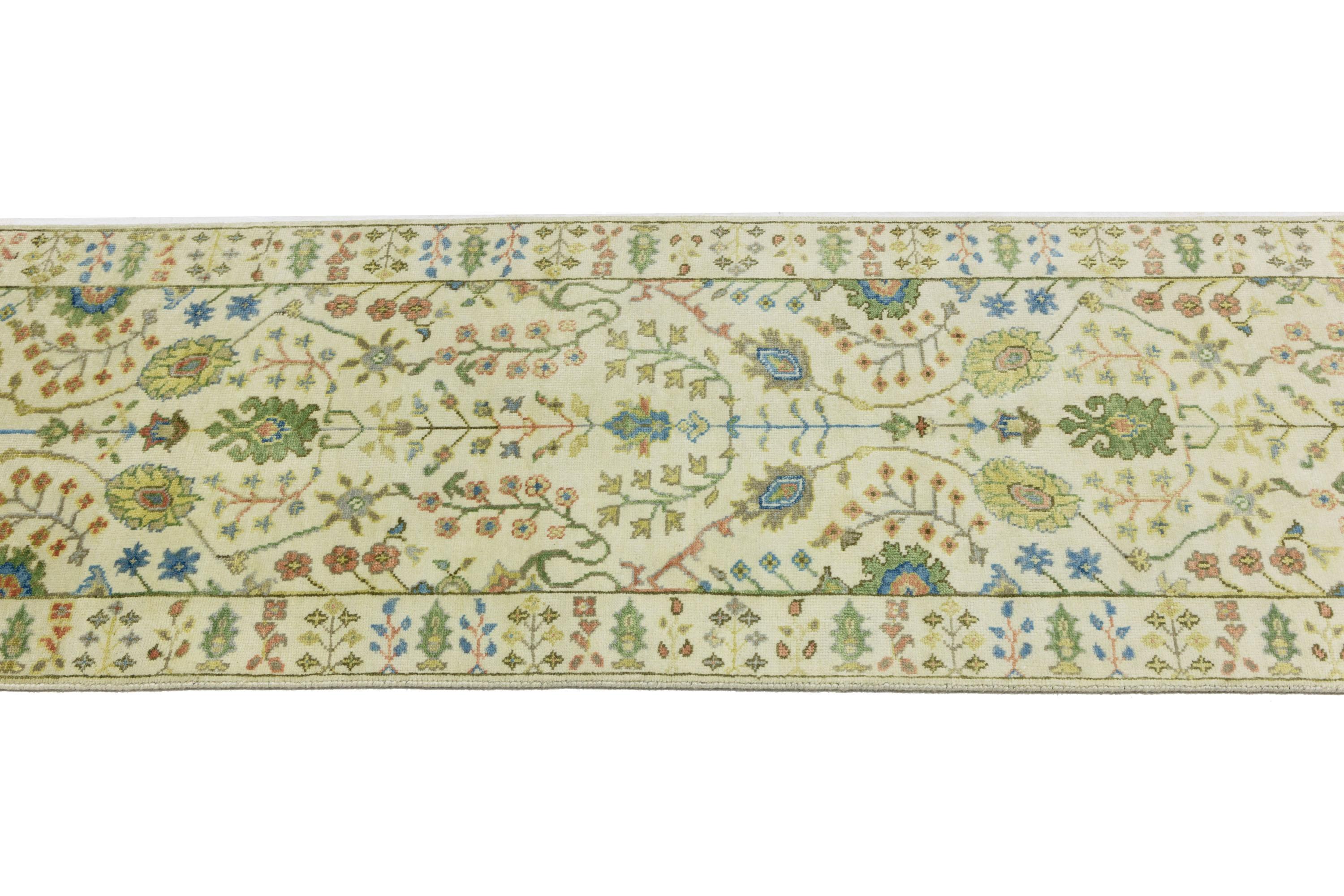 This genuine 2'6 X 8'0 ivory new Oriental rug was made by the hands of gifted weavers inspired by a variety of spectacular artistic designs, to recreate the aged look of the original piece with a richness of color and ornately patterned background field. What set this vintage style Oriental area rug from the others are the material and dye used (wool pile and cotton foundation), knot count, ancient designs, fantastic grades, and its regional historical connection: it has deep roots, from the story of the people who produced it to the meaning of the symbols and colors displayed across its canvas that have been praised for centuries. This Indian home décor carpet will be completely cozy and inviting that never will go out of style! Also, this Oriental rug would be among your most valuable treasures, it is a great investment that accrues value over time, and it will last for generations because was woven with high-quality, all-natural wool. Environmentally friendly, opulent yet affordable; this rug will give you a thorough amount of character to help define your living space with elegance and warmth that will capture the eyes and attention of your audience (homeowners, designers, decorators, family and friends). OT-11957
