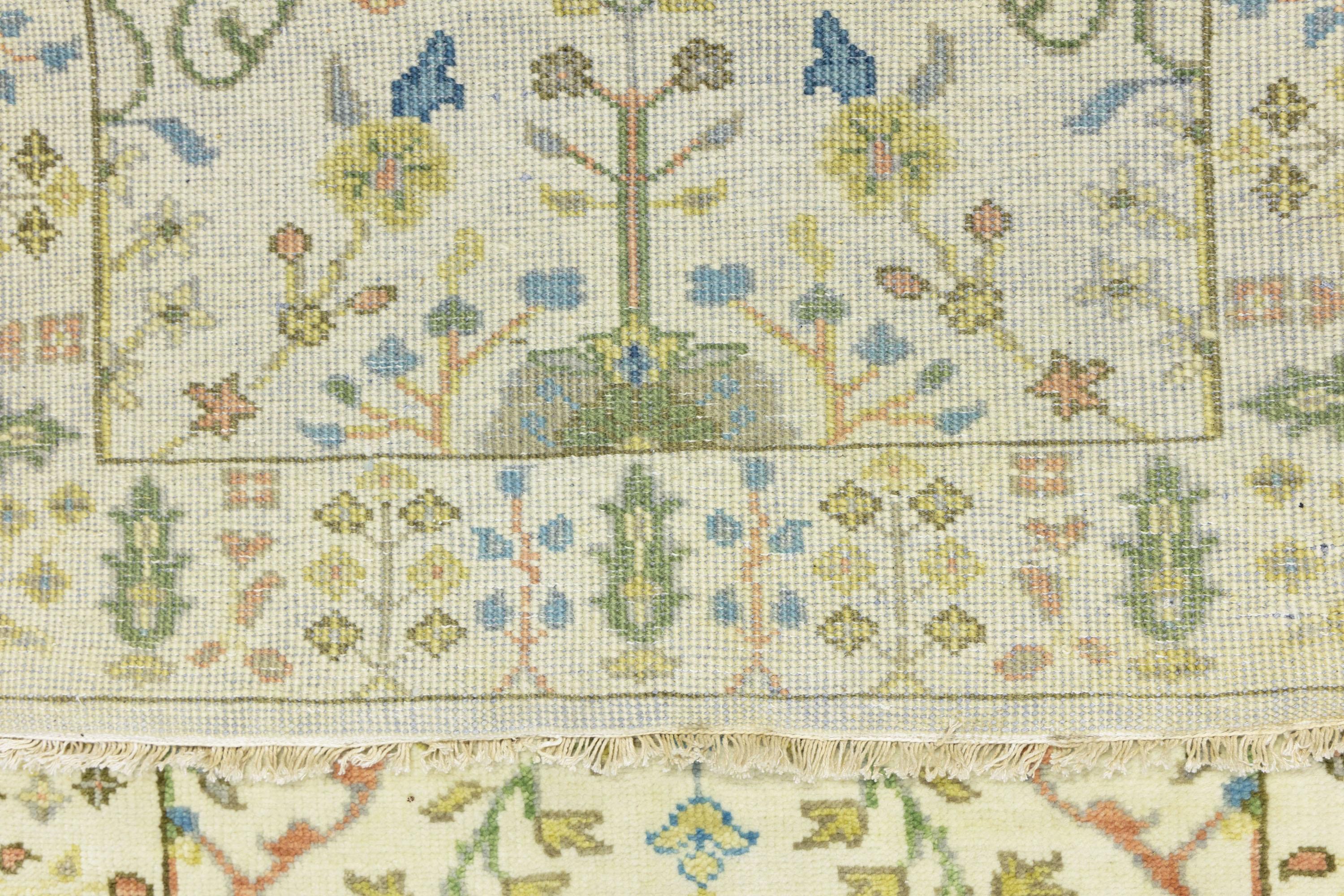 - Hand-knotted in India with skilled traditional weaving