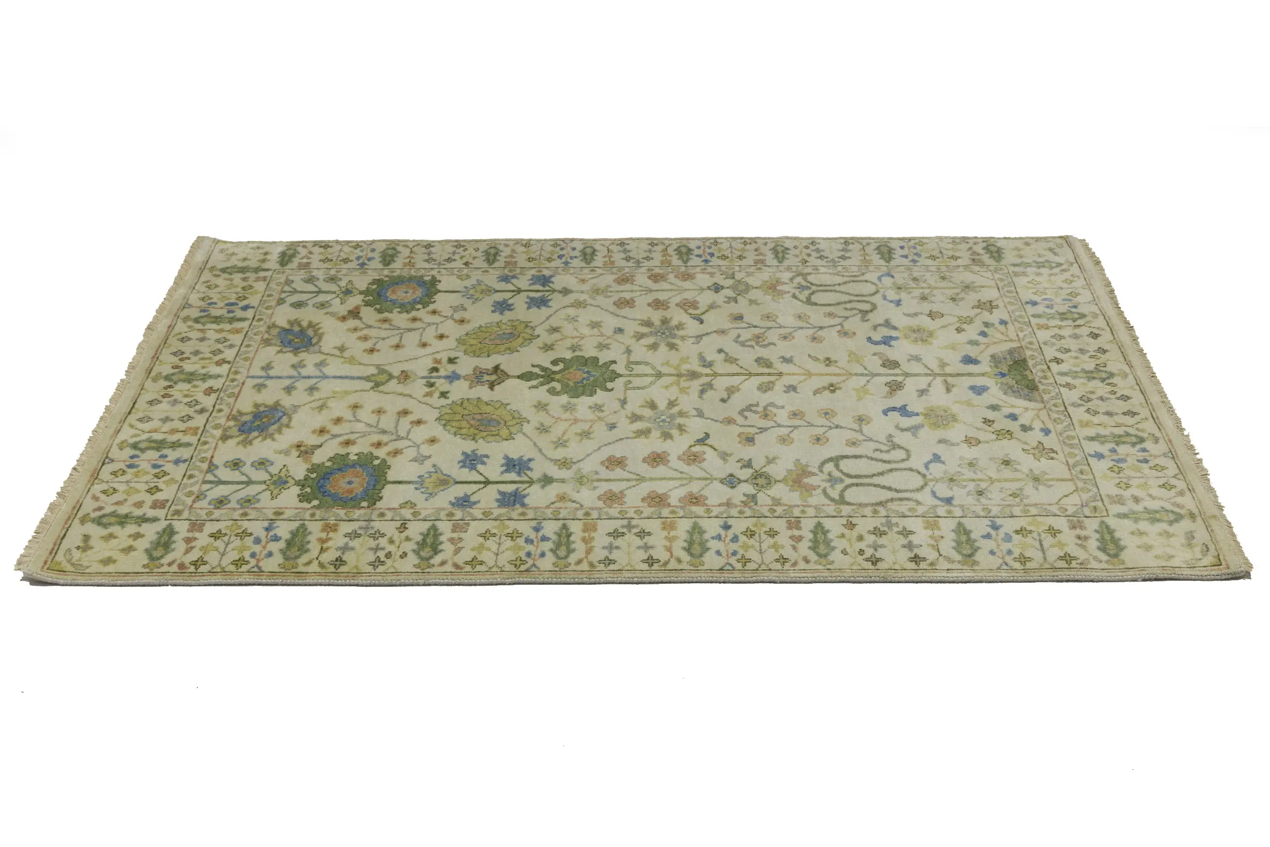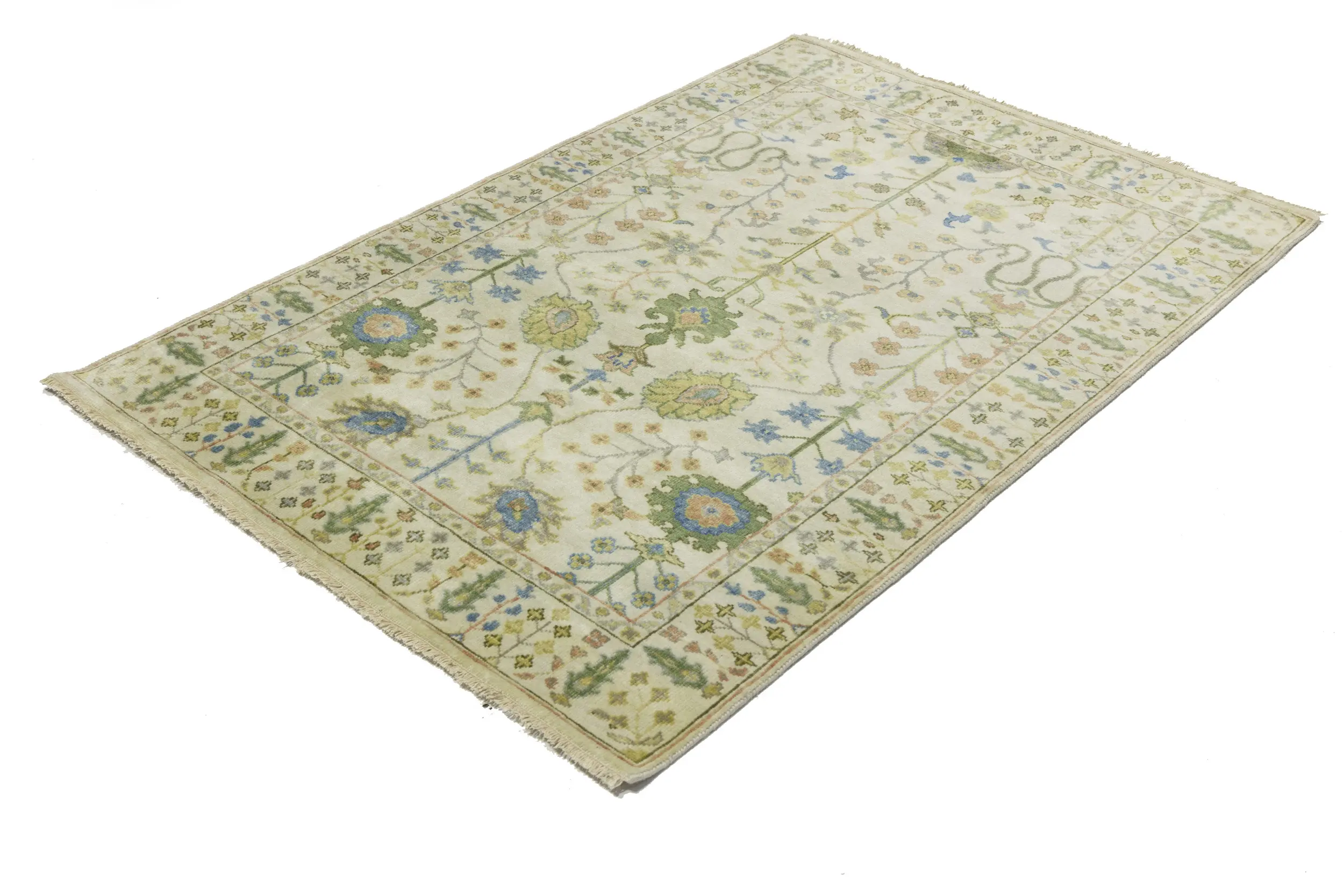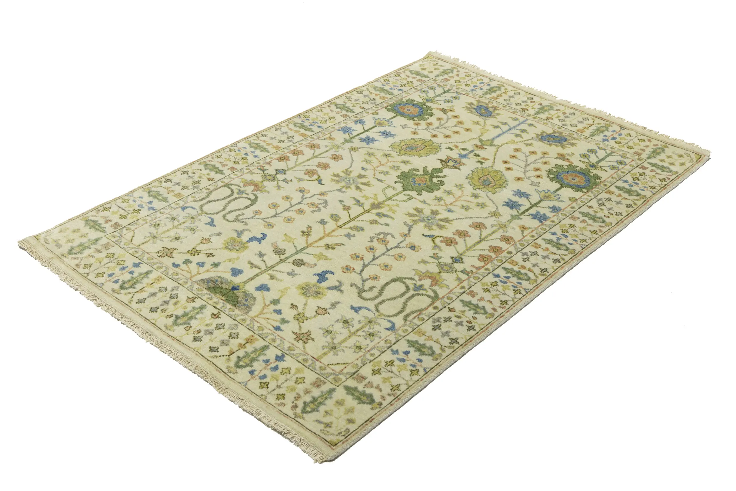 Handmade 4X6 ivory oriental rug made with vegetable dyes (fine wool pile and cotton foundation), superior knot count, and appealing ancient designs. This Oriental rug never will go out of style and would be among your most valuable treasures.