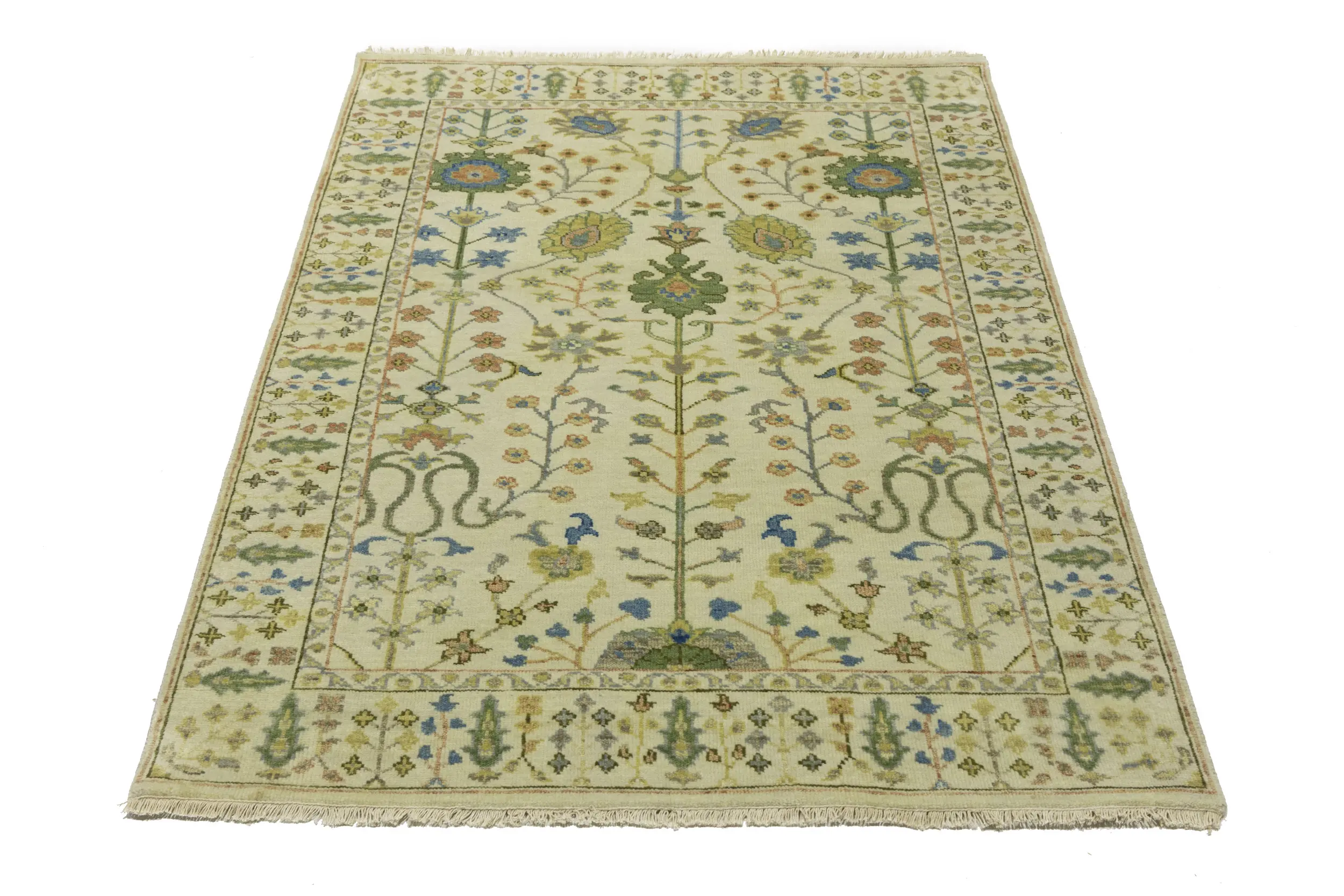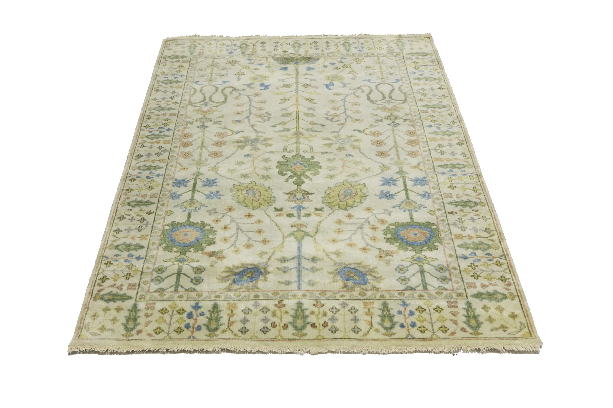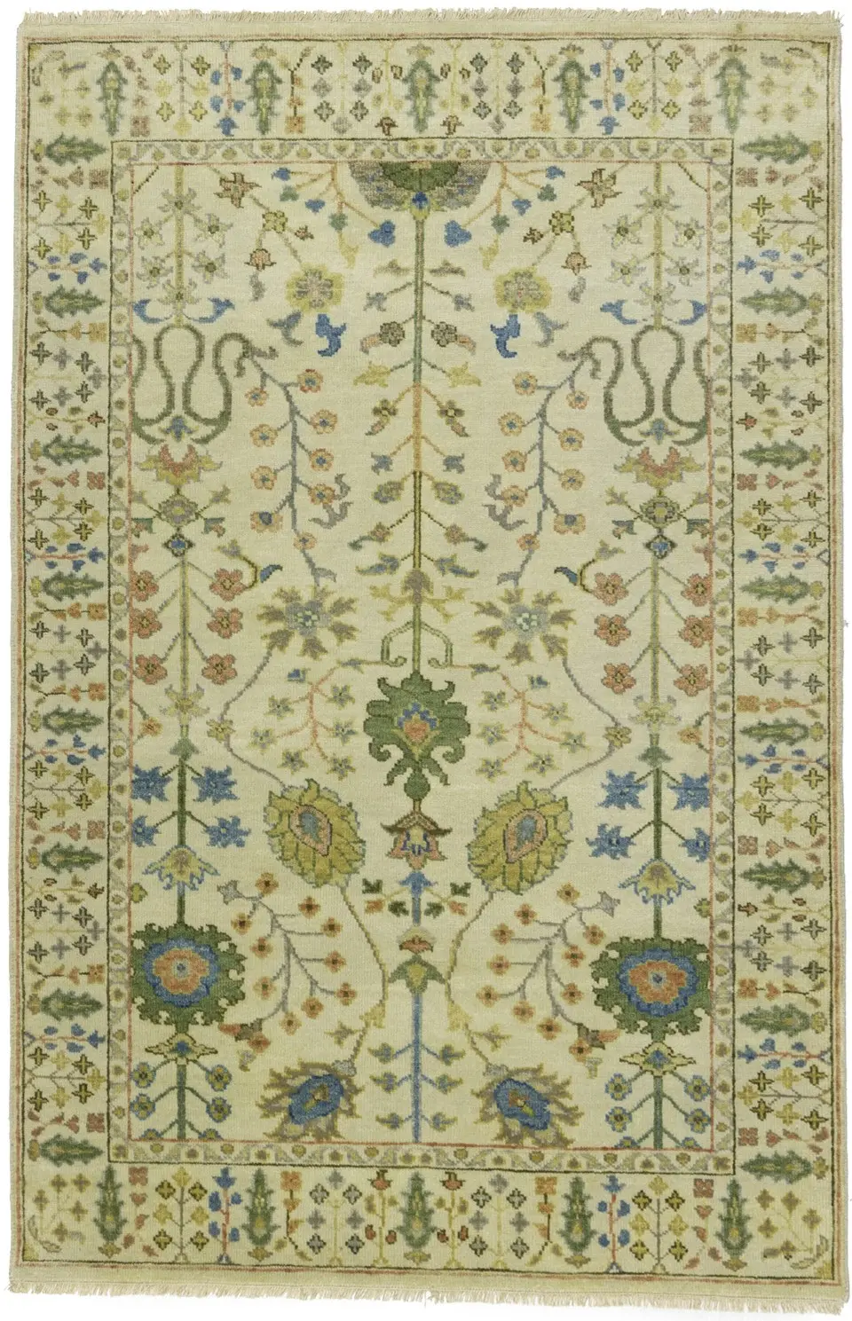 Handmade 4X6 ivory oriental rug made with vegetable dyes (fine wool pile and cotton foundation), superior knot count, and appealing ancient designs. This Oriental rug never will go out of style and would be among your most valuable treasures.