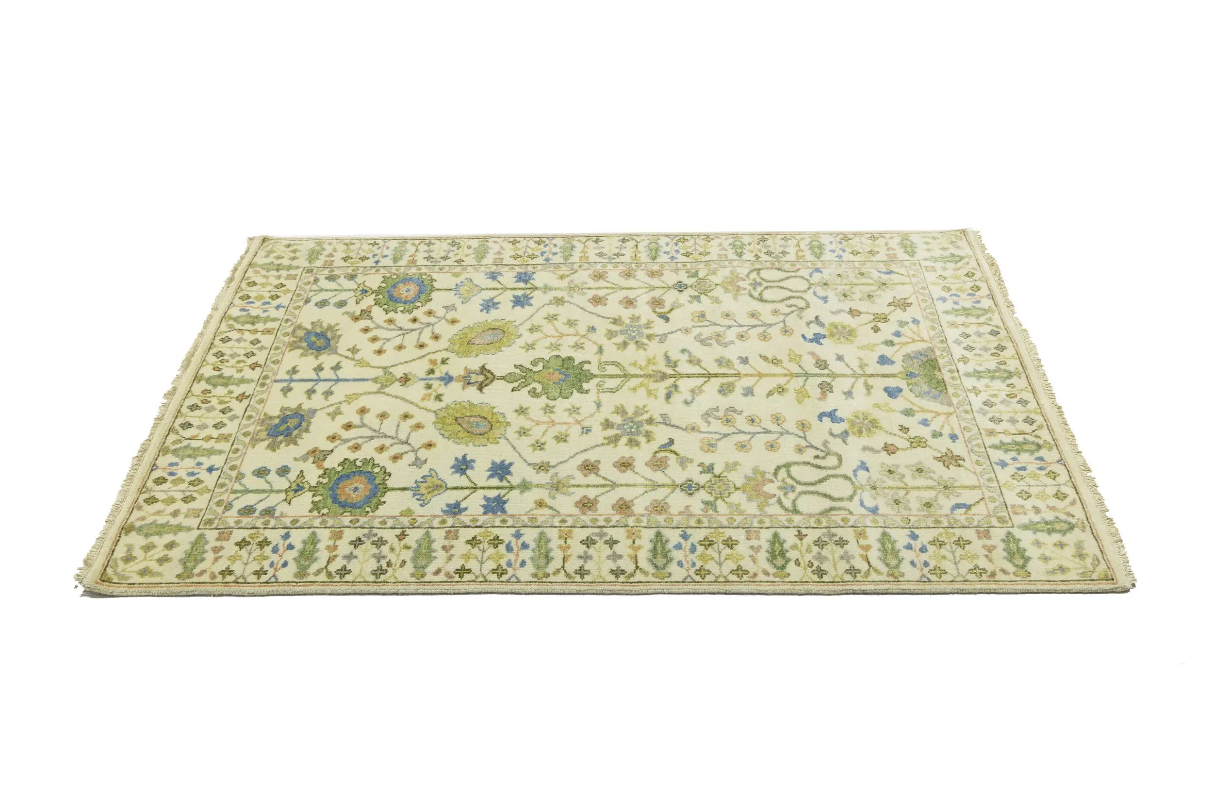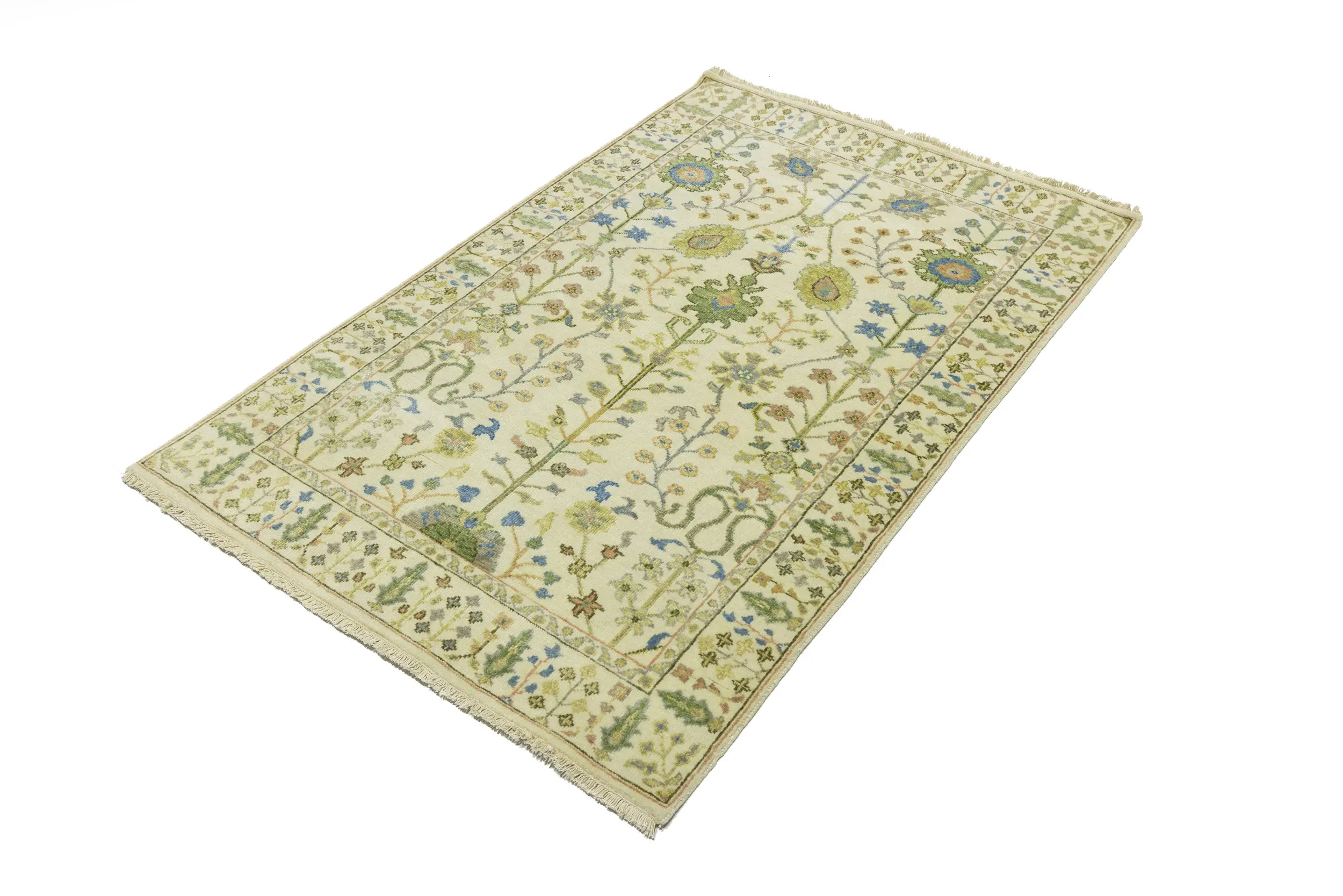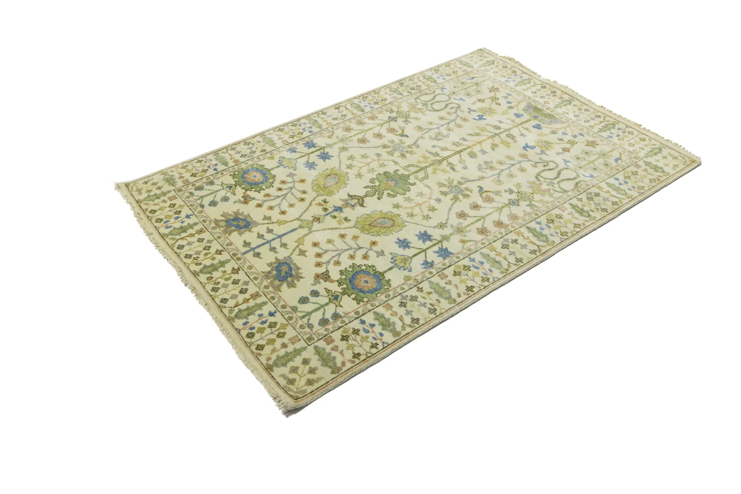 Handmade 4X6 ivory oriental rug made with vegetable dyes (fine wool pile and cotton foundation), superior knot count, and appealing ancient designs. This Oriental rug never will go out of style and would be among your most valuable treasures.