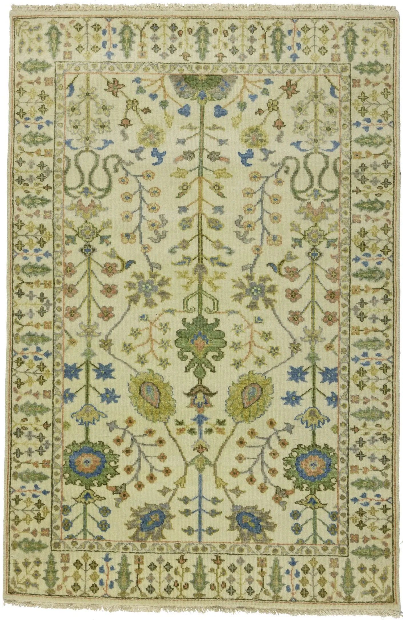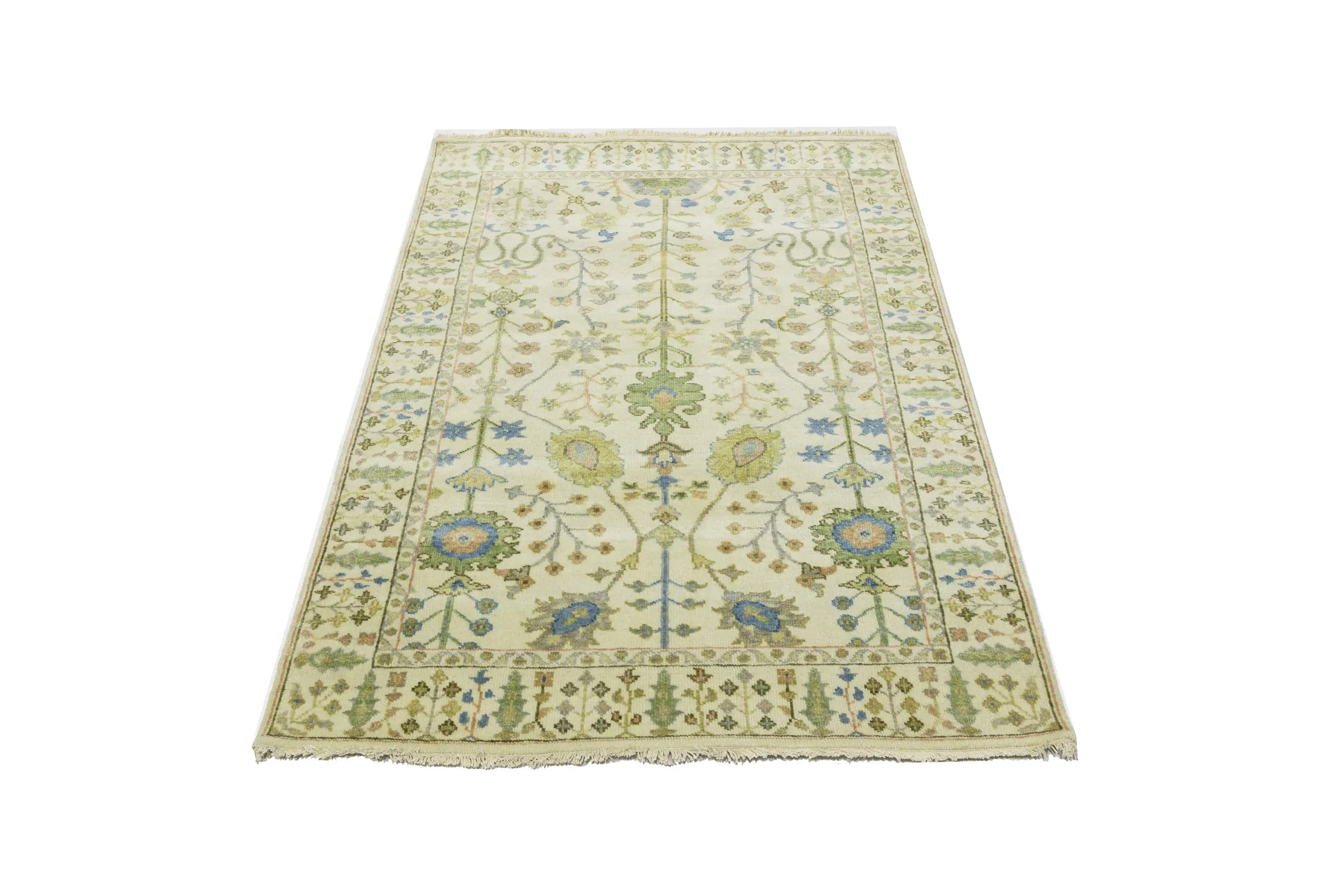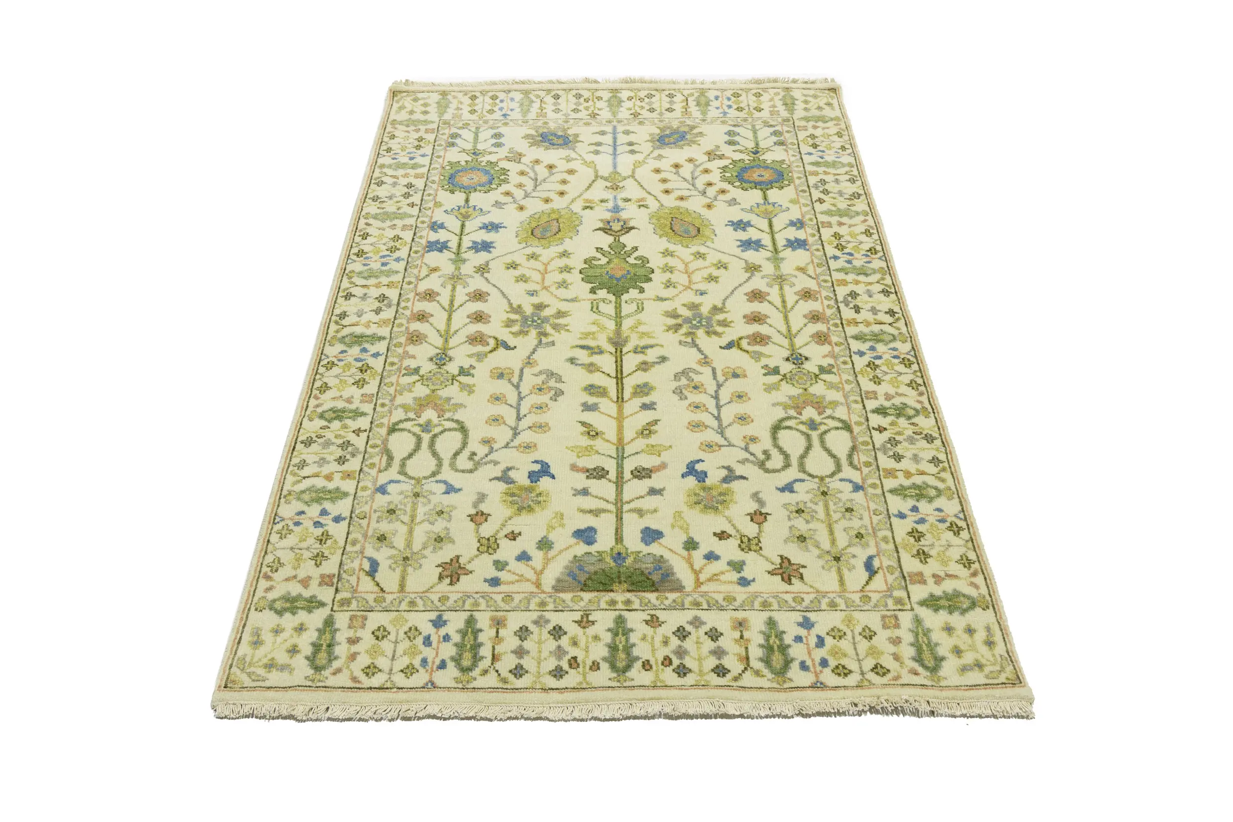 Handmade 4X6 ivory oriental rug made with vegetable dyes (fine wool pile and cotton foundation), superior knot count, and appealing ancient designs. This Oriental rug never will go out of style and would be among your most valuable treasures.