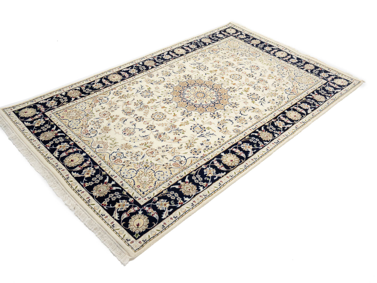 Ivory Floral 5x8 Indo-Nain Oriental Rug