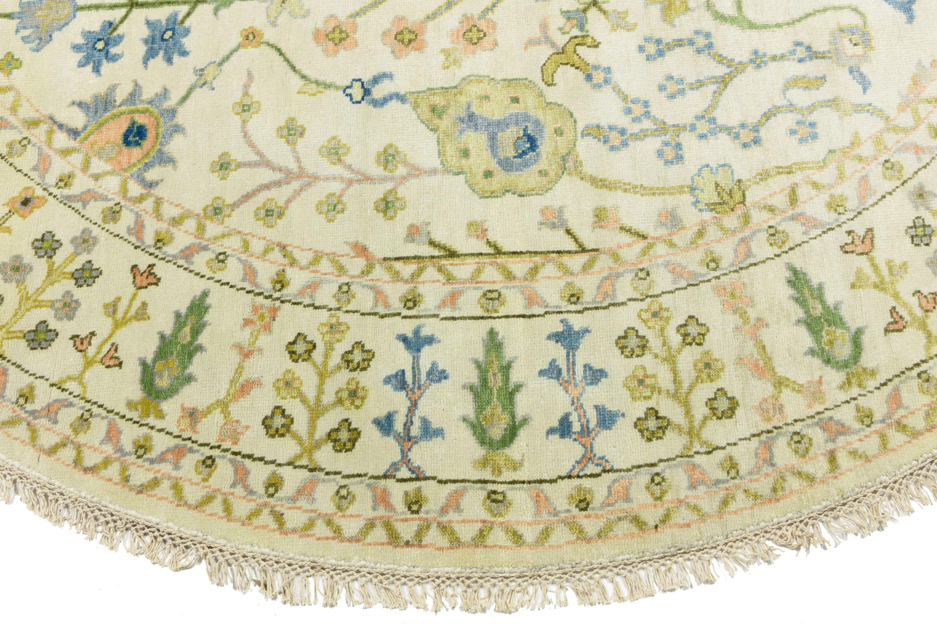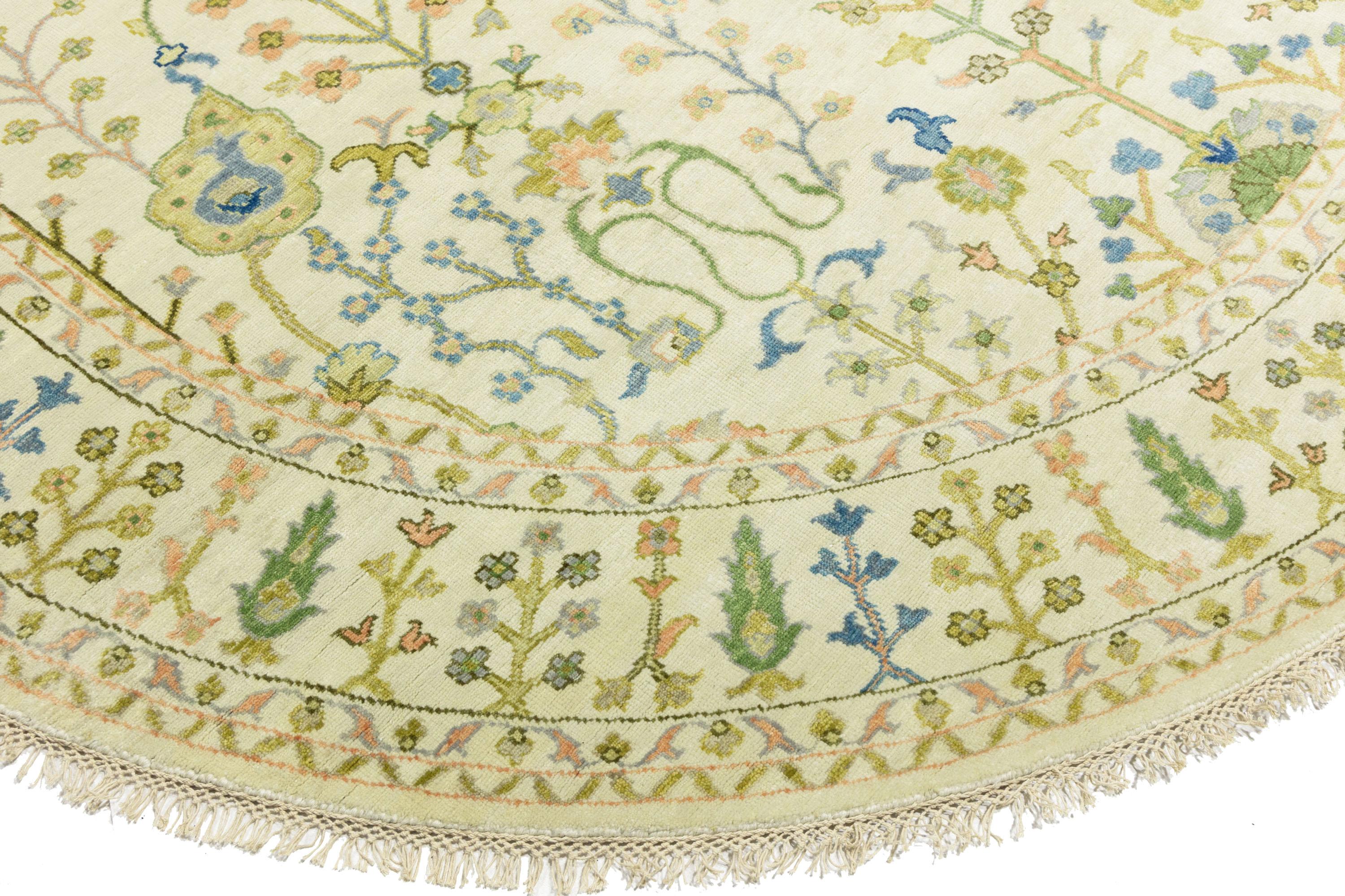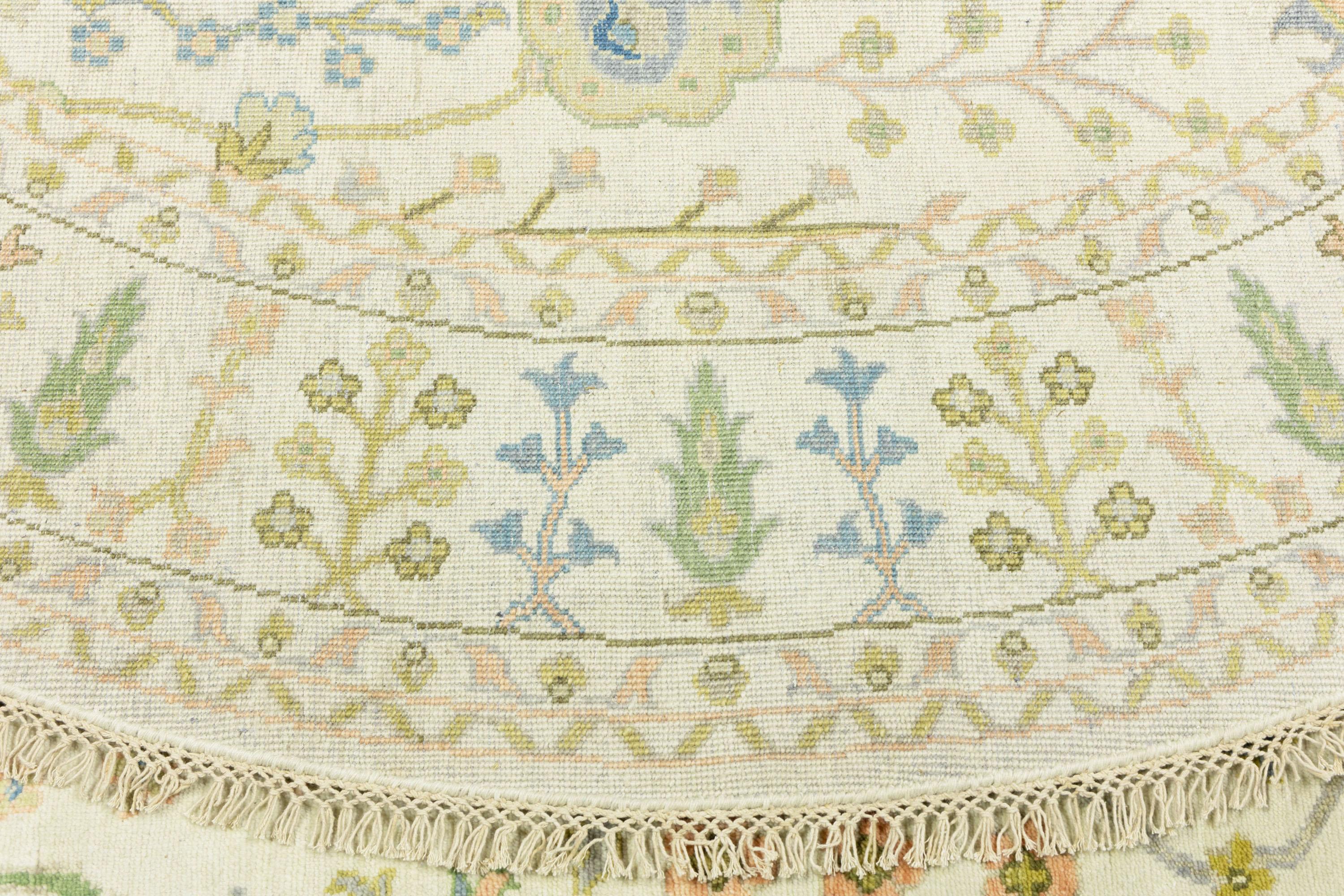 Ivory Floral 8x8 Traditional Chobi Oriental Round Rug