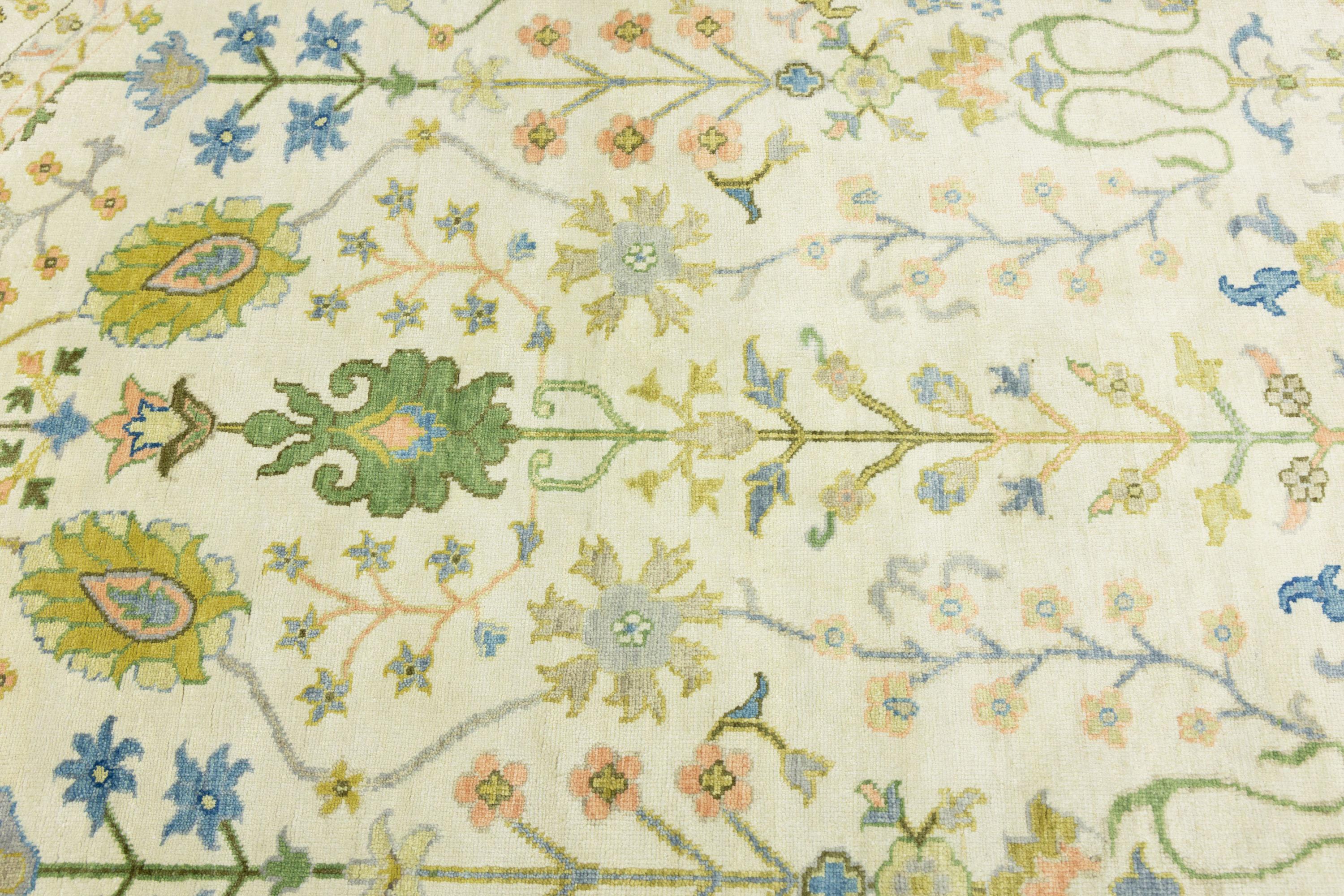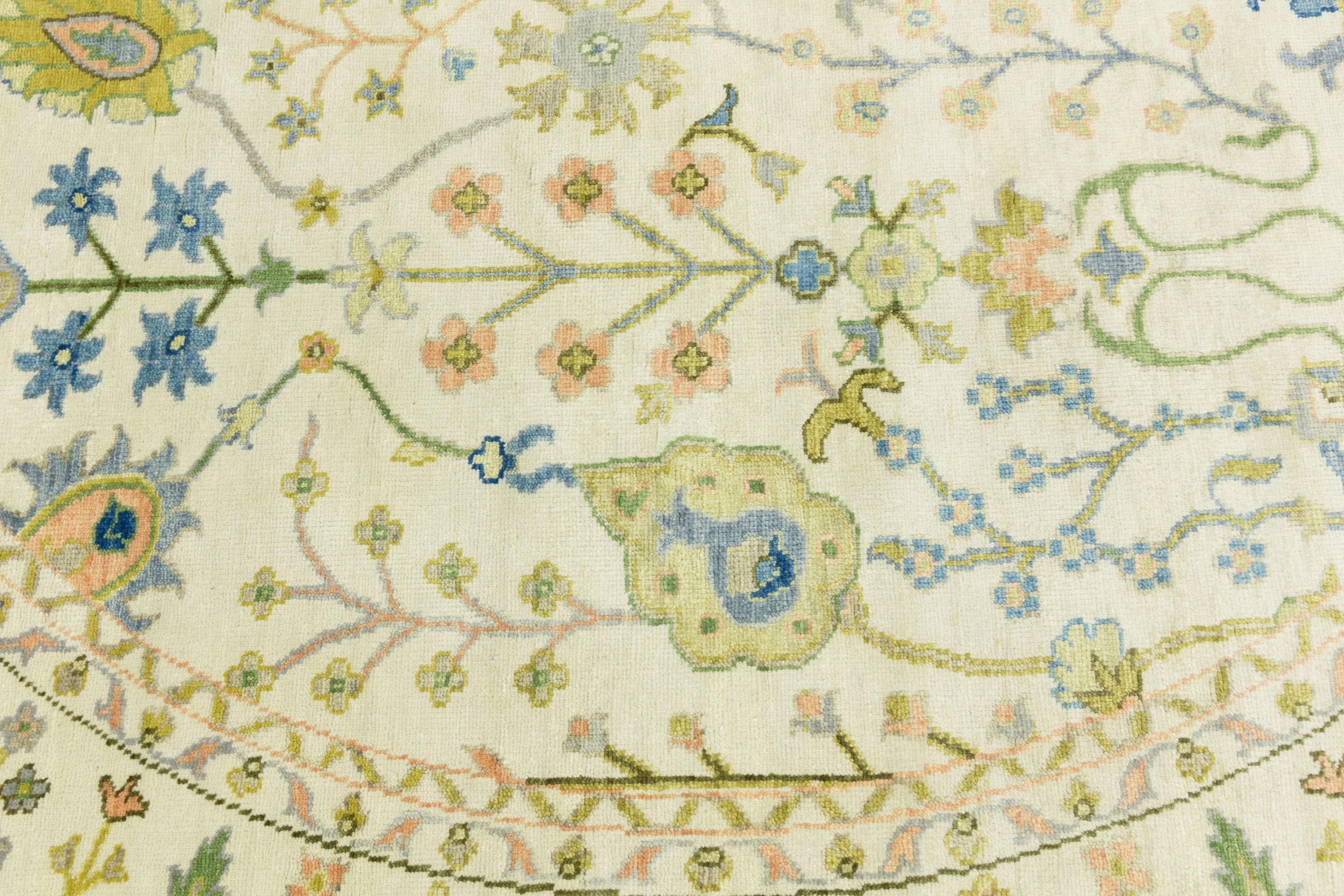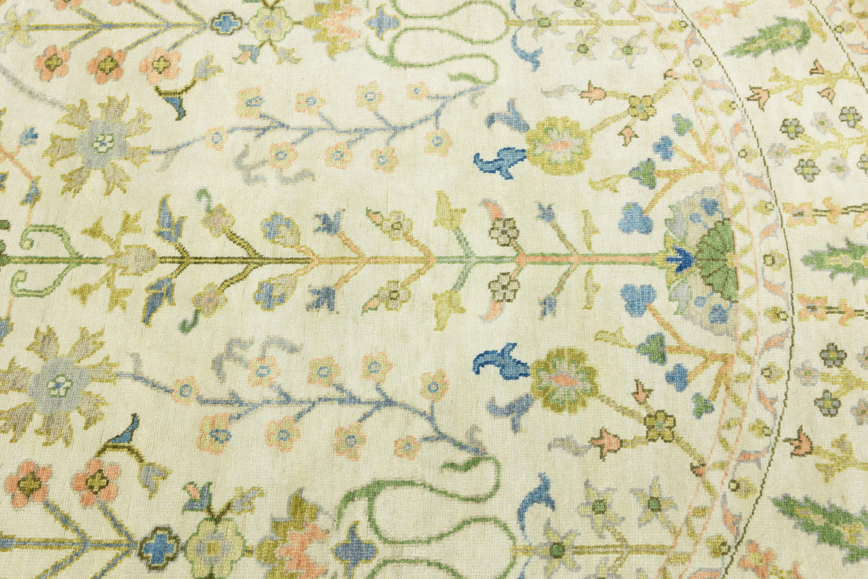 Ivory Floral 8x8 Traditional Chobi Oriental Round Rug