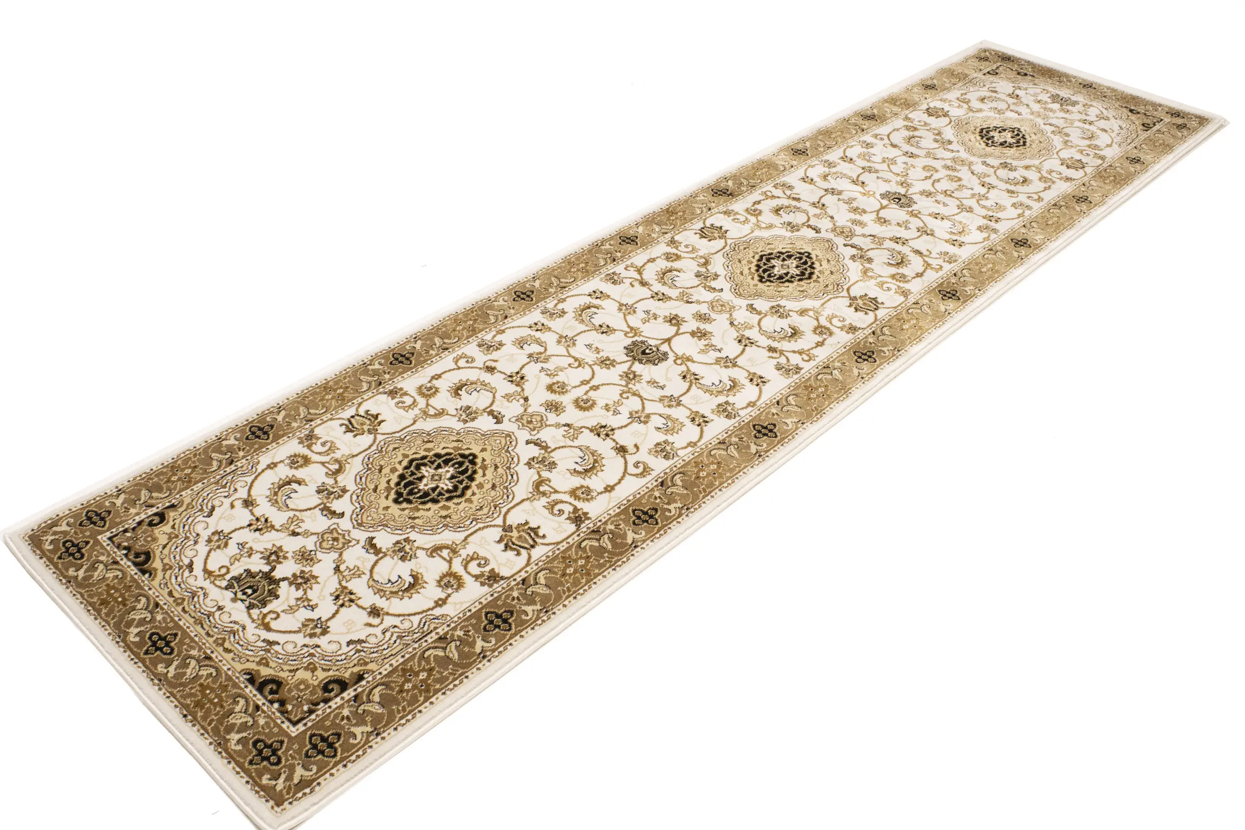 Ivory Floral Oriental Style 3X11 Machine-Made Runner Rug