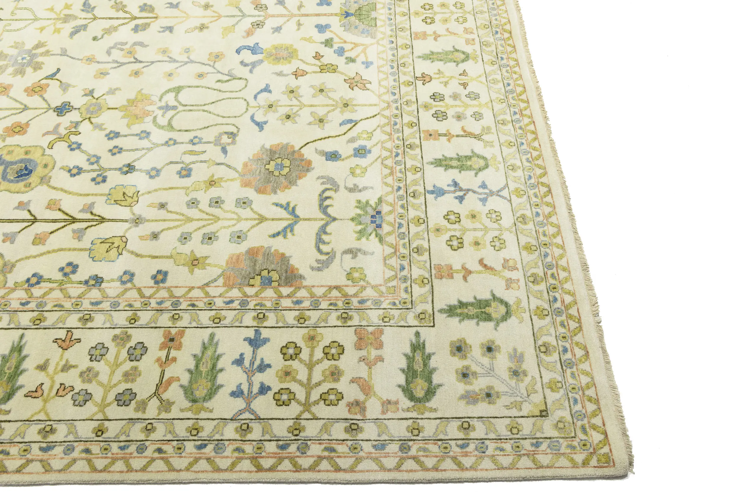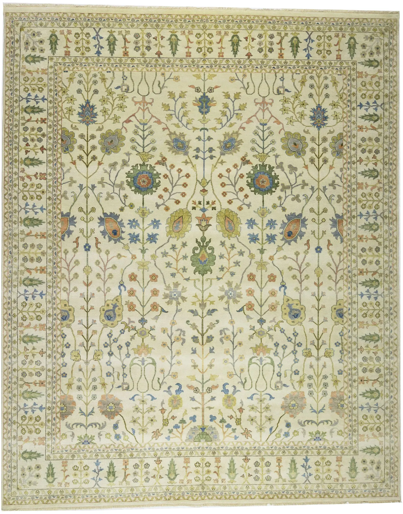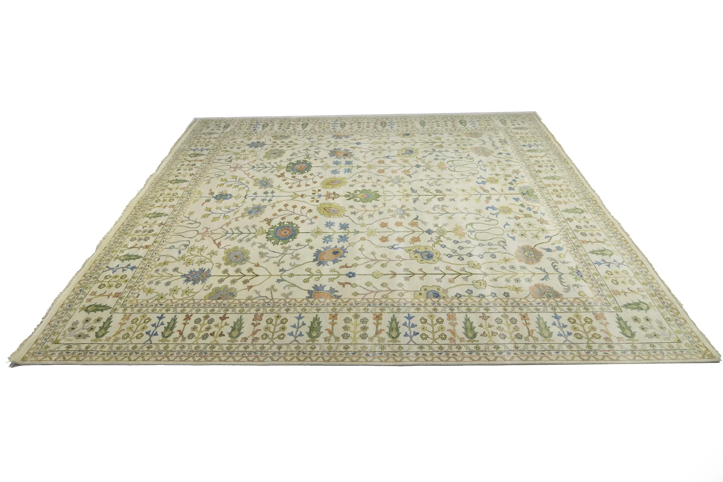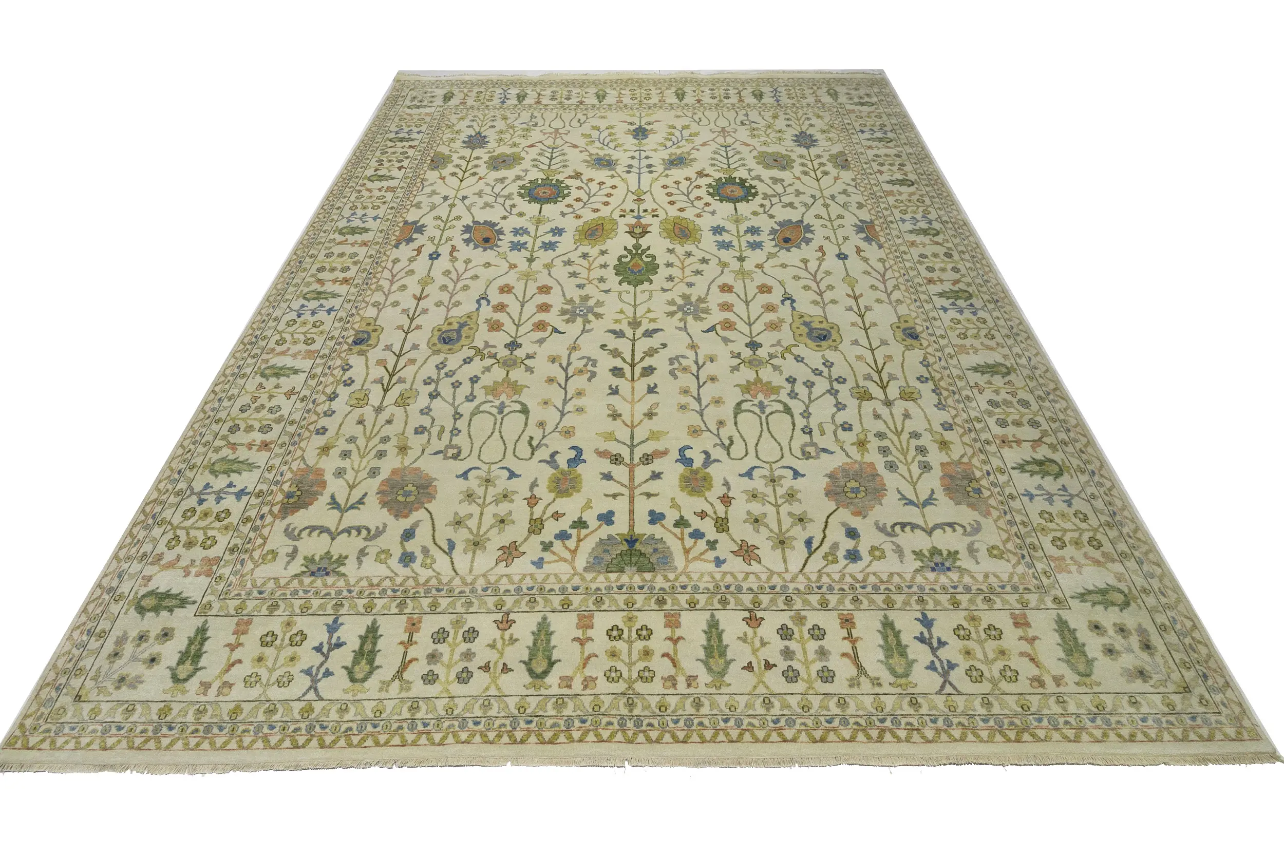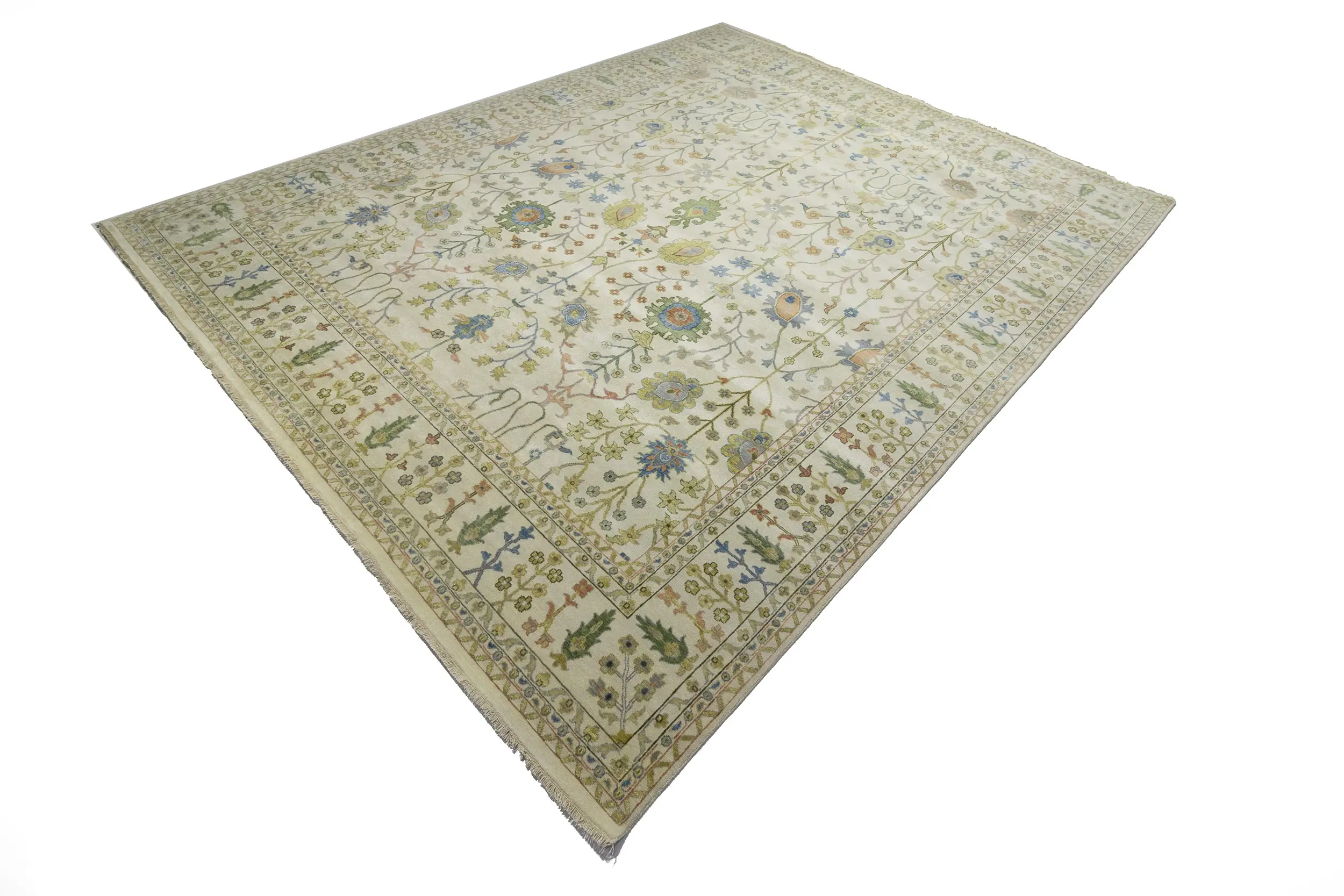 Hand Knotted 12X15 Ivory oriental rug made with natural dyes (fine wool pile and cotton foundation), superior knot count, and appealing ancient designs. This Oriental rug never will go out of style and would be among your most valuable treasures.