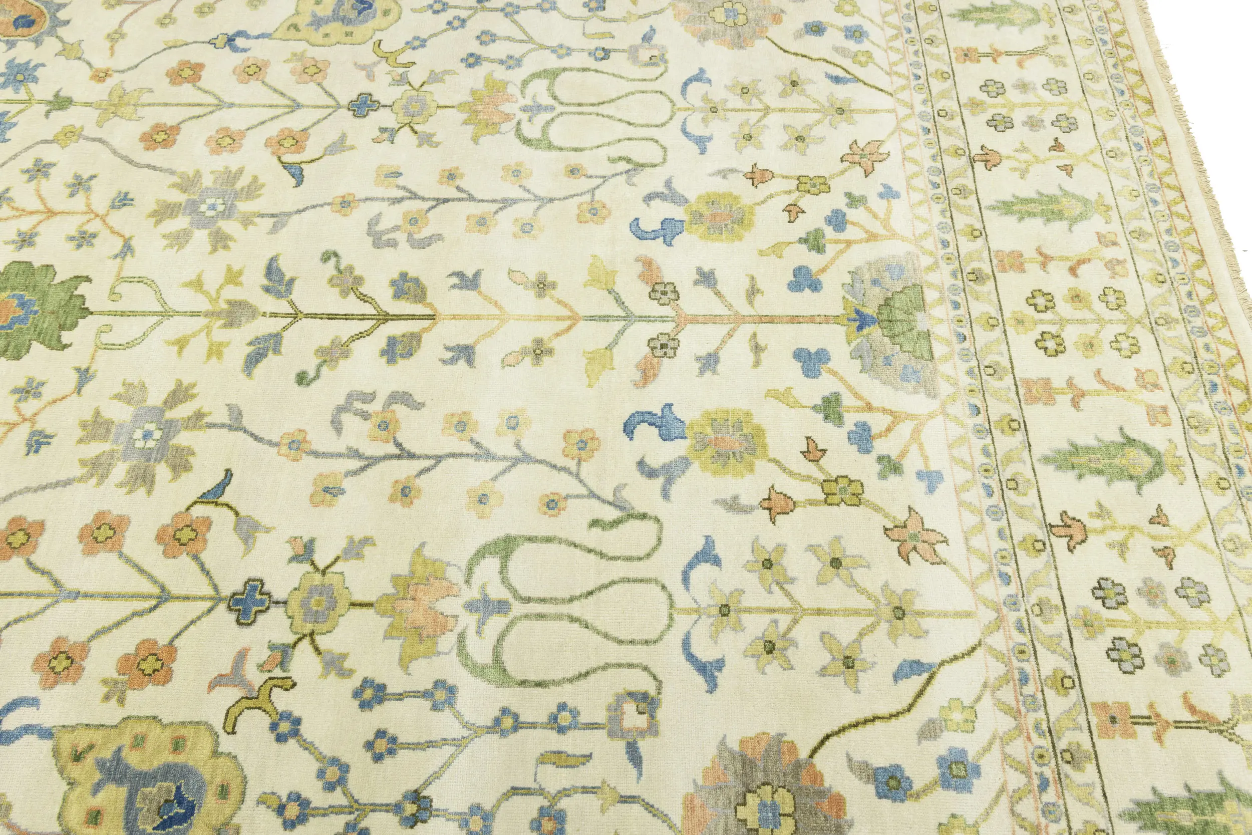 Ivory Floral Traditional 12X15 Osh Chobi Oriental Rug