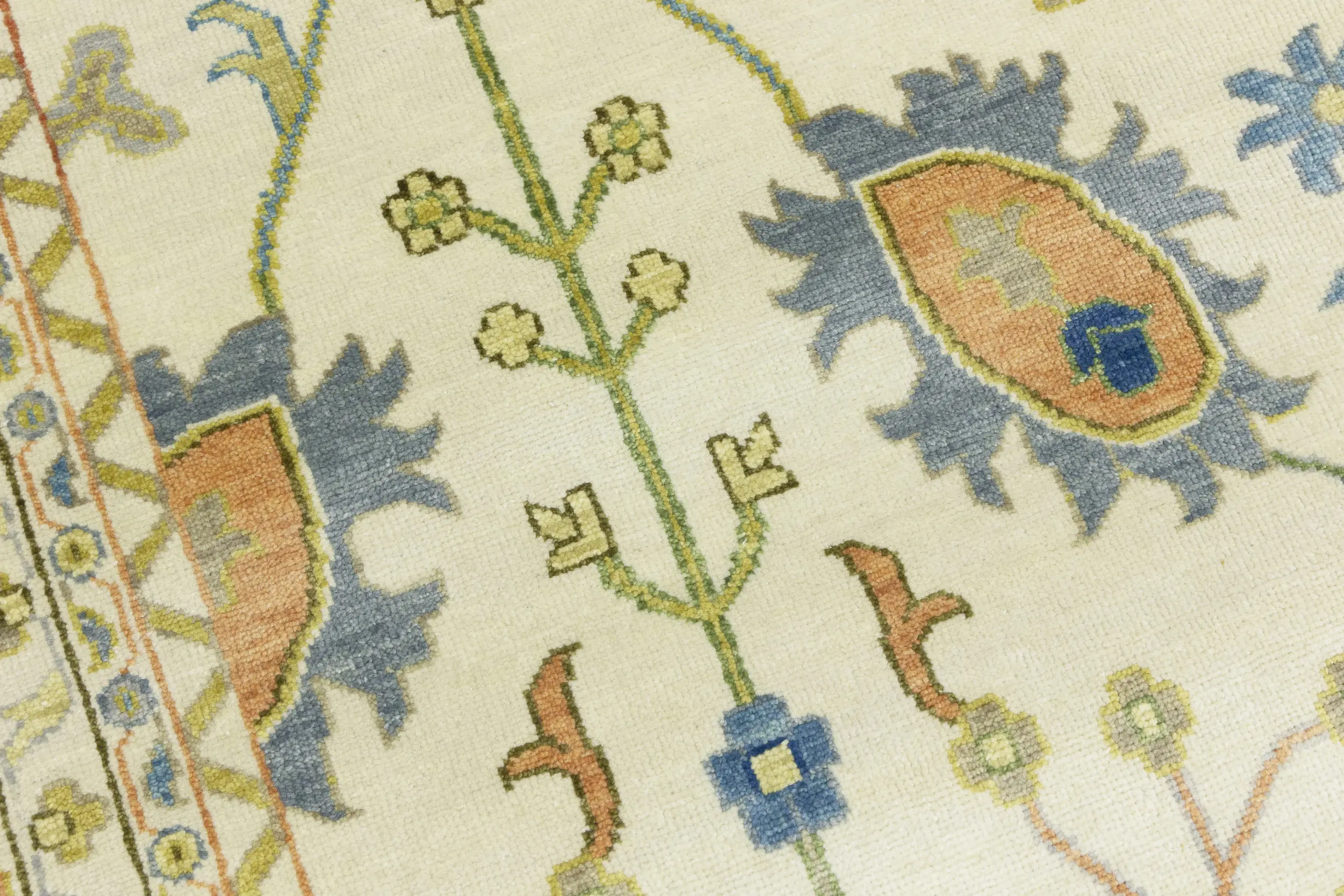 This authentic 12X15 Ivory new Oriental rug was crafted by the hands of skilled weavers enthused by a variety of lovely artistic designs, to recreate the aged look of the unique piece with a richness of color and beautifully elaborated background field. What set this vintage style Oriental area rug from the others are the material and dye used (wool pile and cotton foundation), knot count, ancient designs, fantastic grades, and its regional historical connection: it has deep roots, from the story of the people who produced it to the meaning of the symbols and colors displayed across its canvas that have been praised for centuries. This Indian home décor carpet will be completely cozy and inviting that never will go out of style! Also, this Oriental rug would be among your most valuable treasures, it is a great investment that increase in value over time, and it will last for generations because was woven with high-quality, all-natural wool. Environmentally friendly, opulent yet affordable; this rug/runner will give you a thorough amount of character to help define your living space with sophistication and warmth that will capture the eyes and attention of your audience (homeowners, designers, decorators, family and friends).