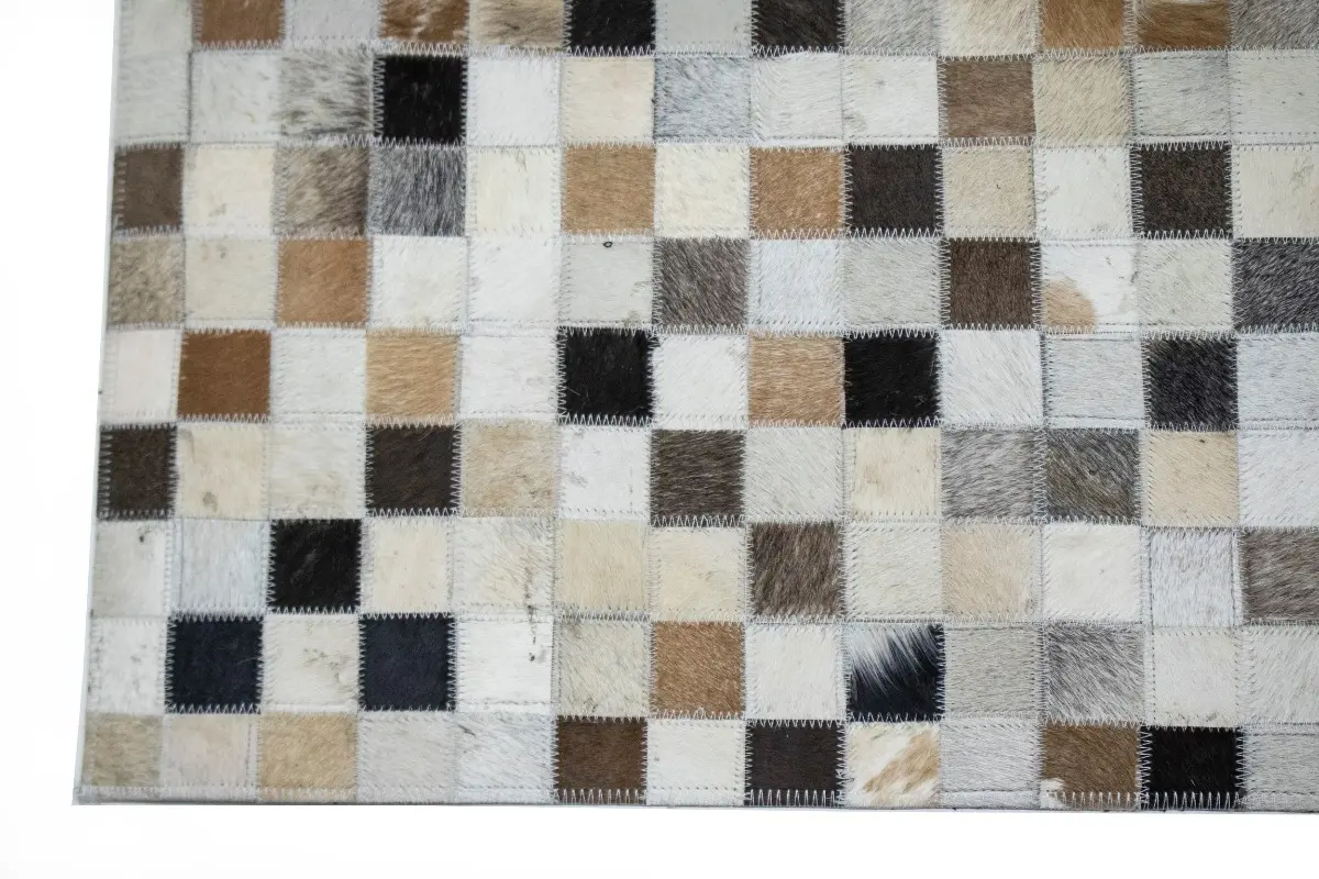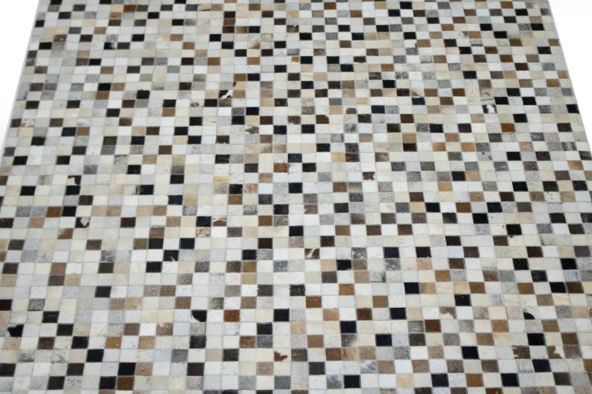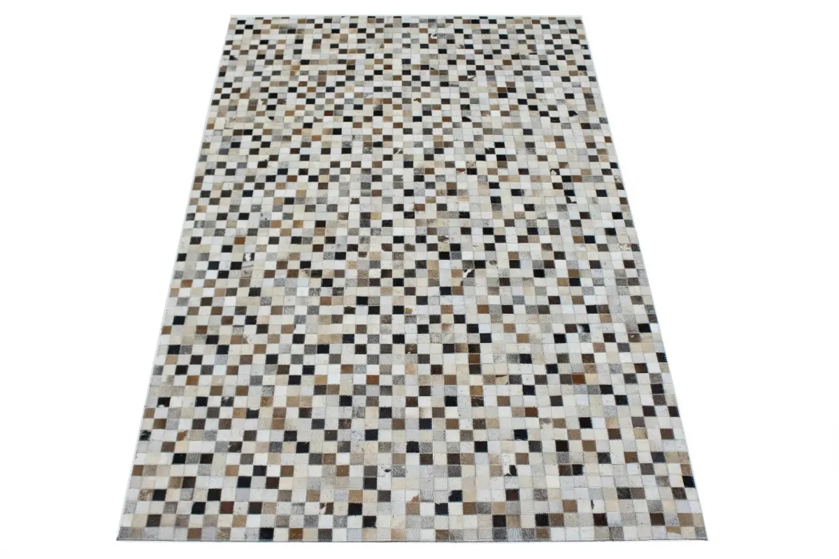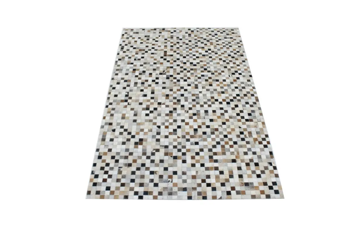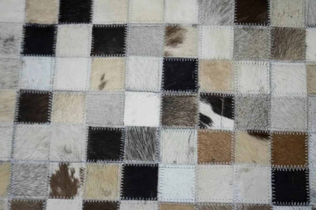 Geometric Modern Cowhide Patchwork Print 5X8 Handcrafted Area Rug Leather Carpet