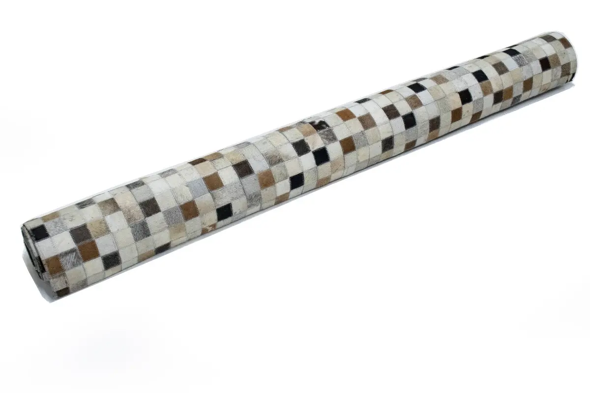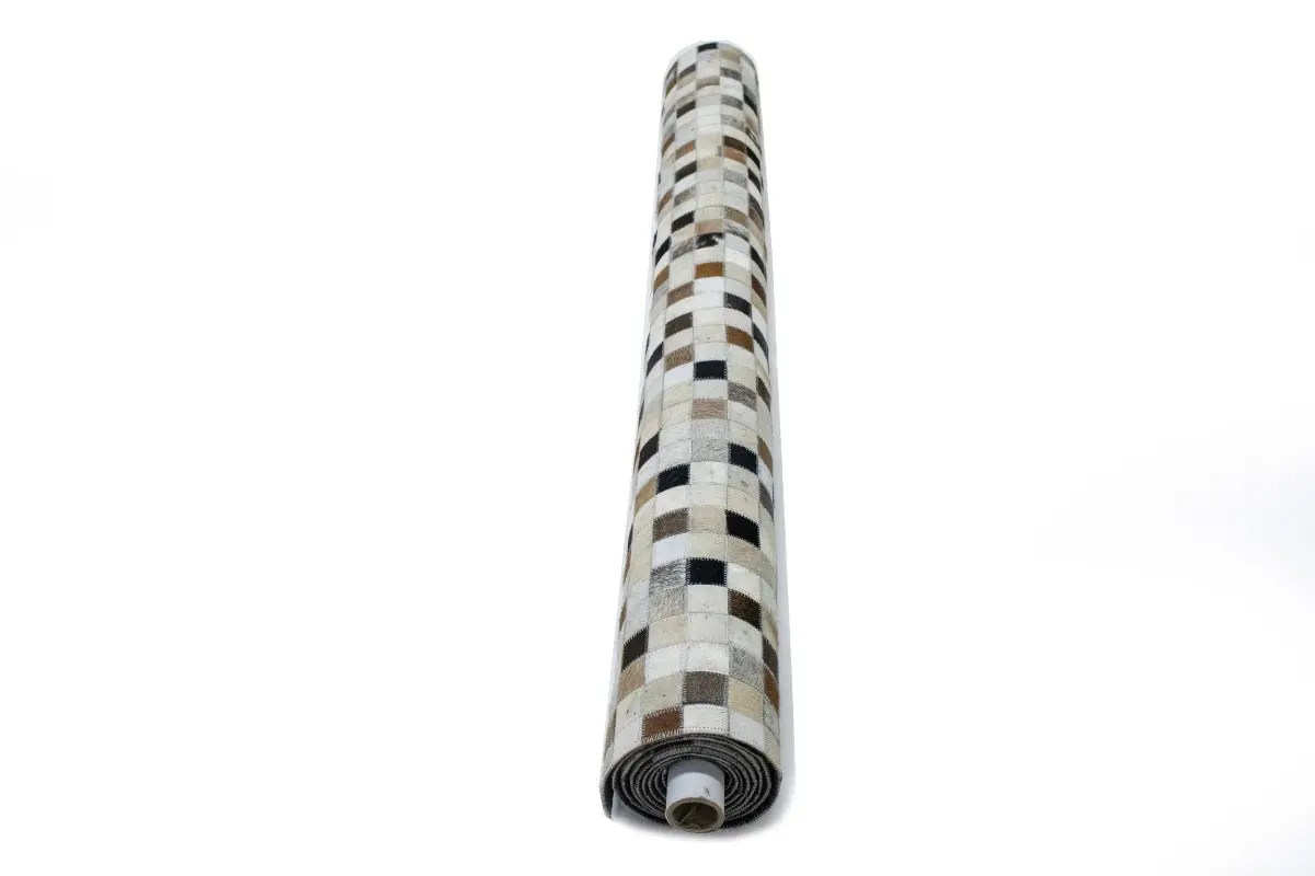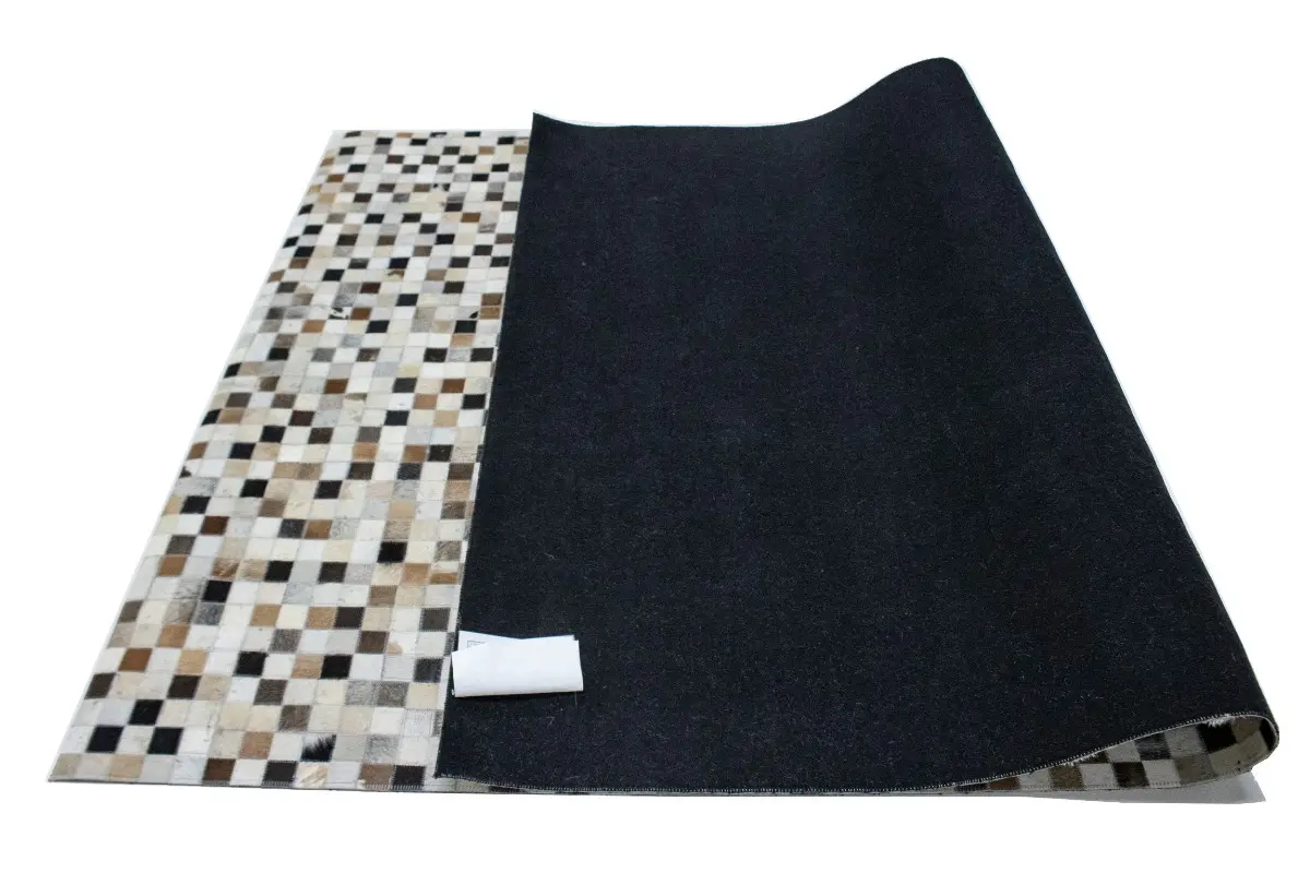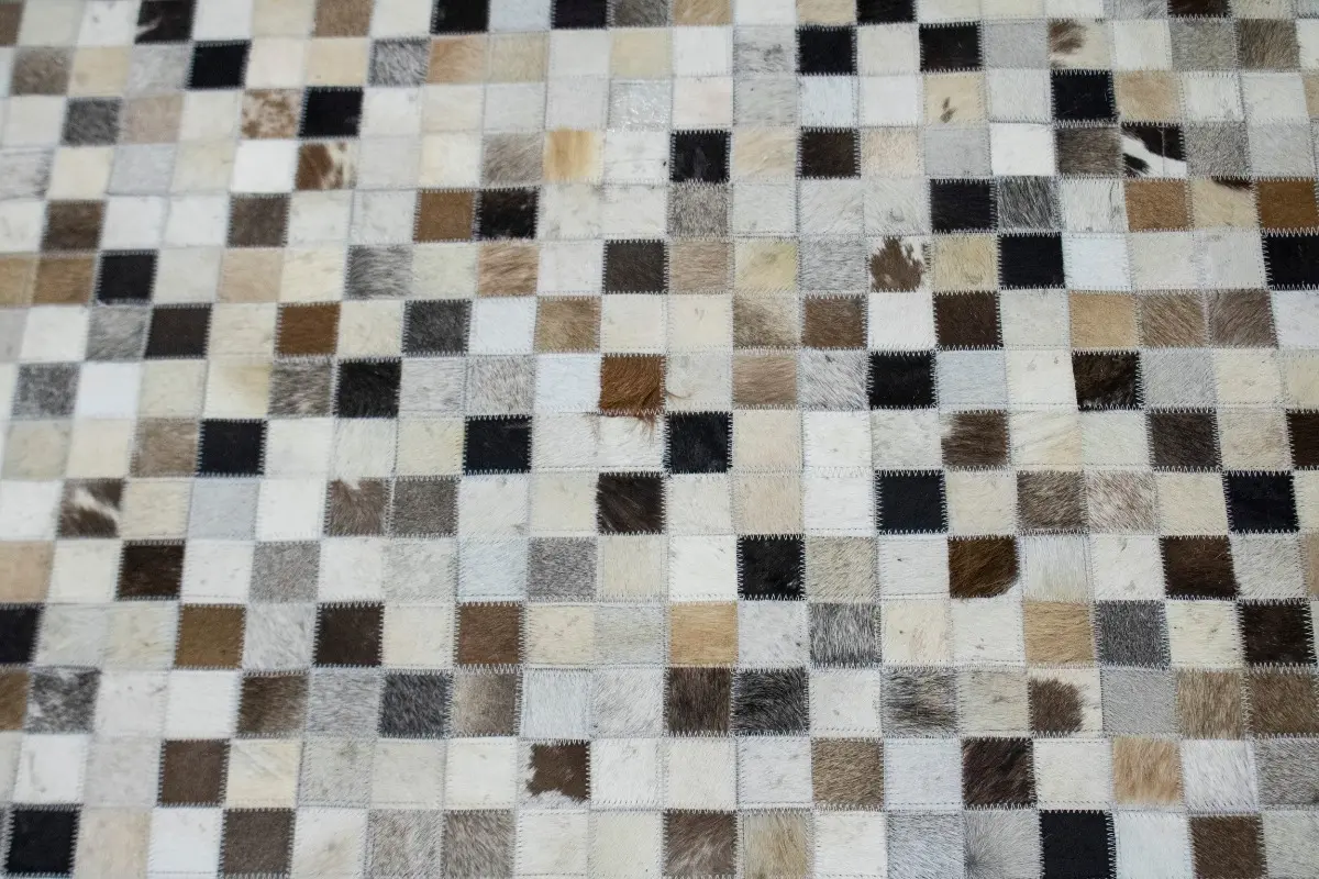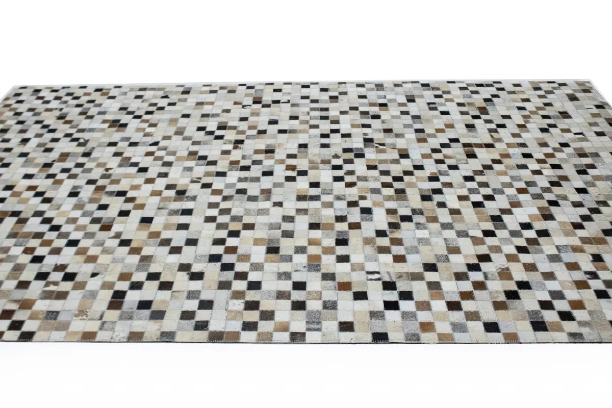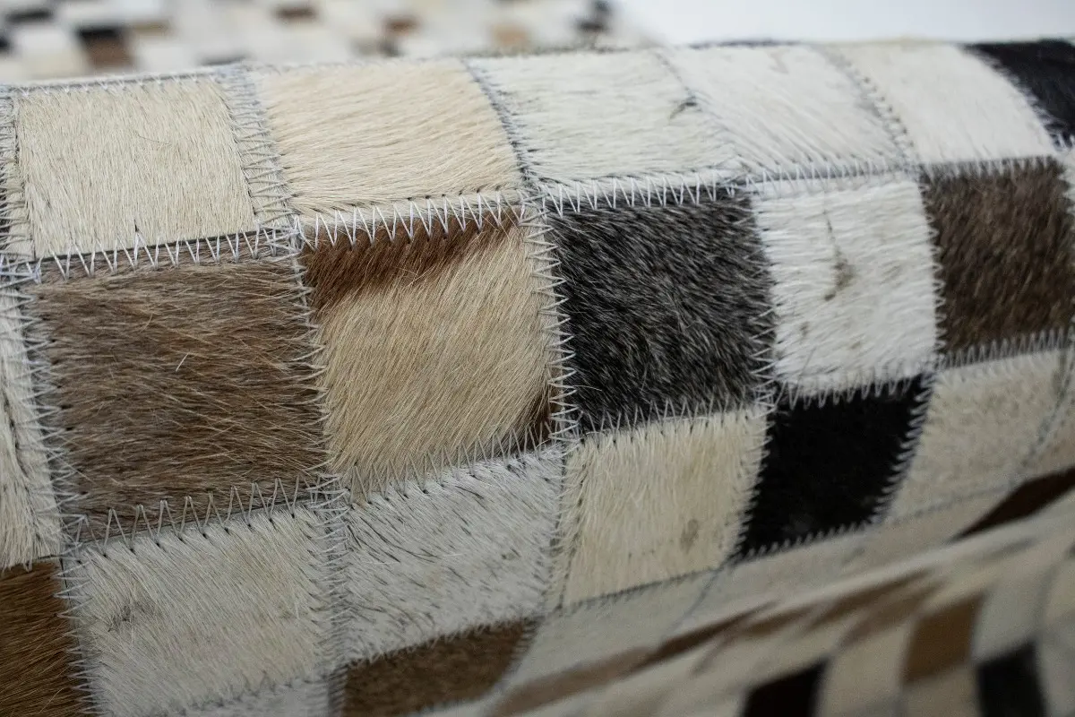 Geometric Modern Cowhide Patchwork Print 5X8 Handcrafted Area Rug Leather Carpet