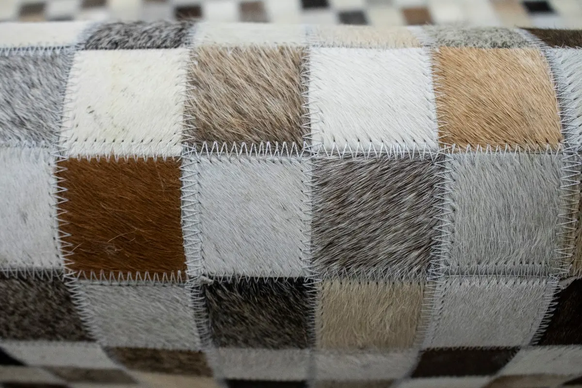 Ivory Geometric 5X8 Cowhide Patchwork Modern Rug