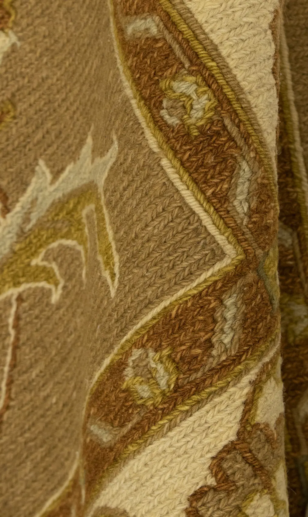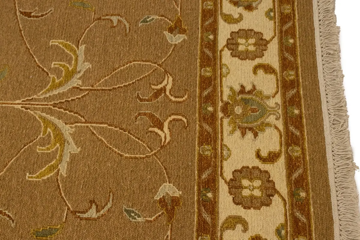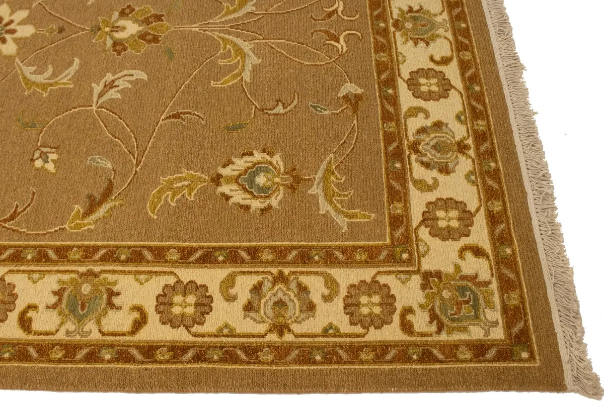 Handmade 6X8 khaki Oriental rug made with vegetable dyes (fine wool pile and cotton foundation), superior knot count, and appealing ancient designs. This Oriental rug never will go out of style and would be among your most valuable treasures.