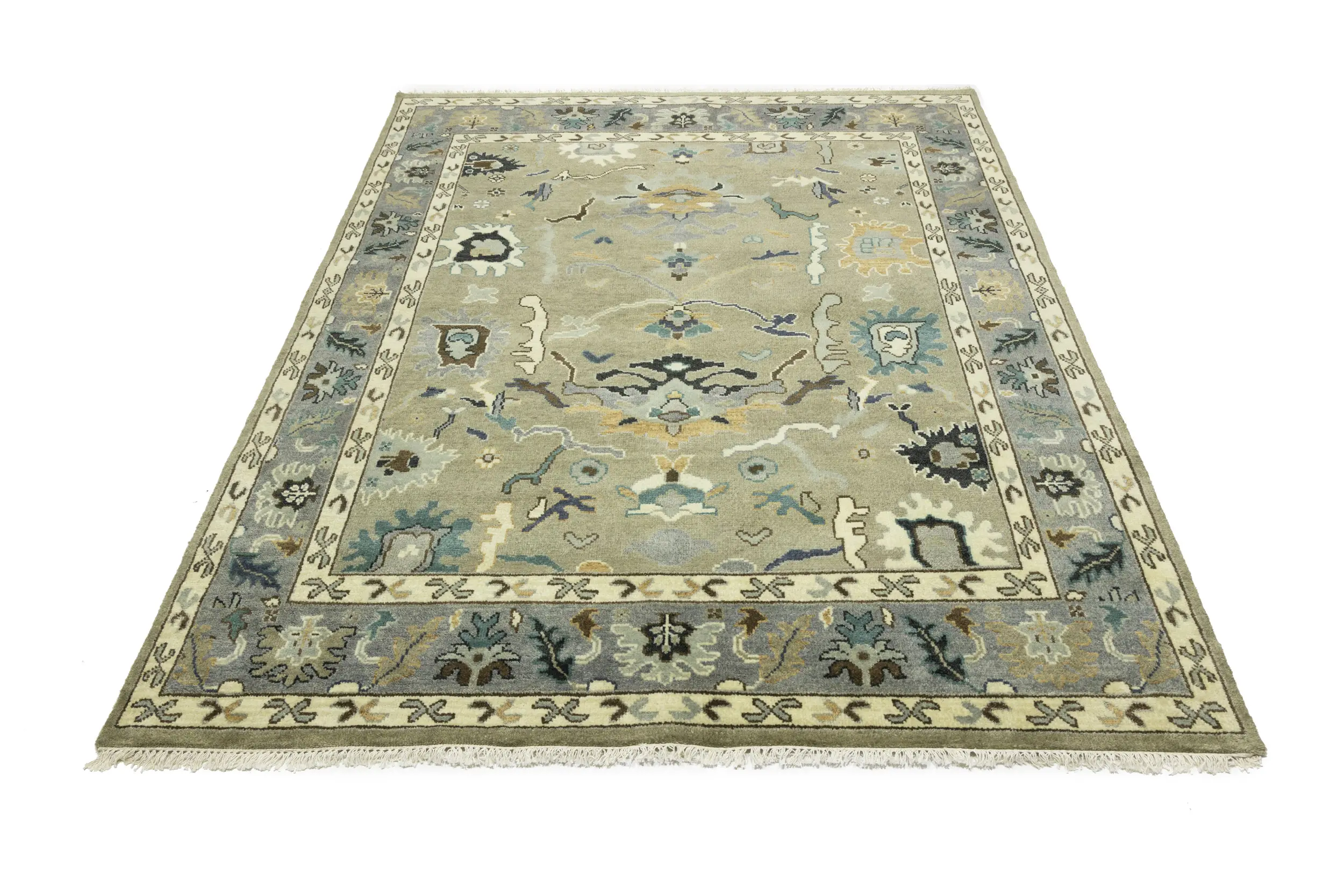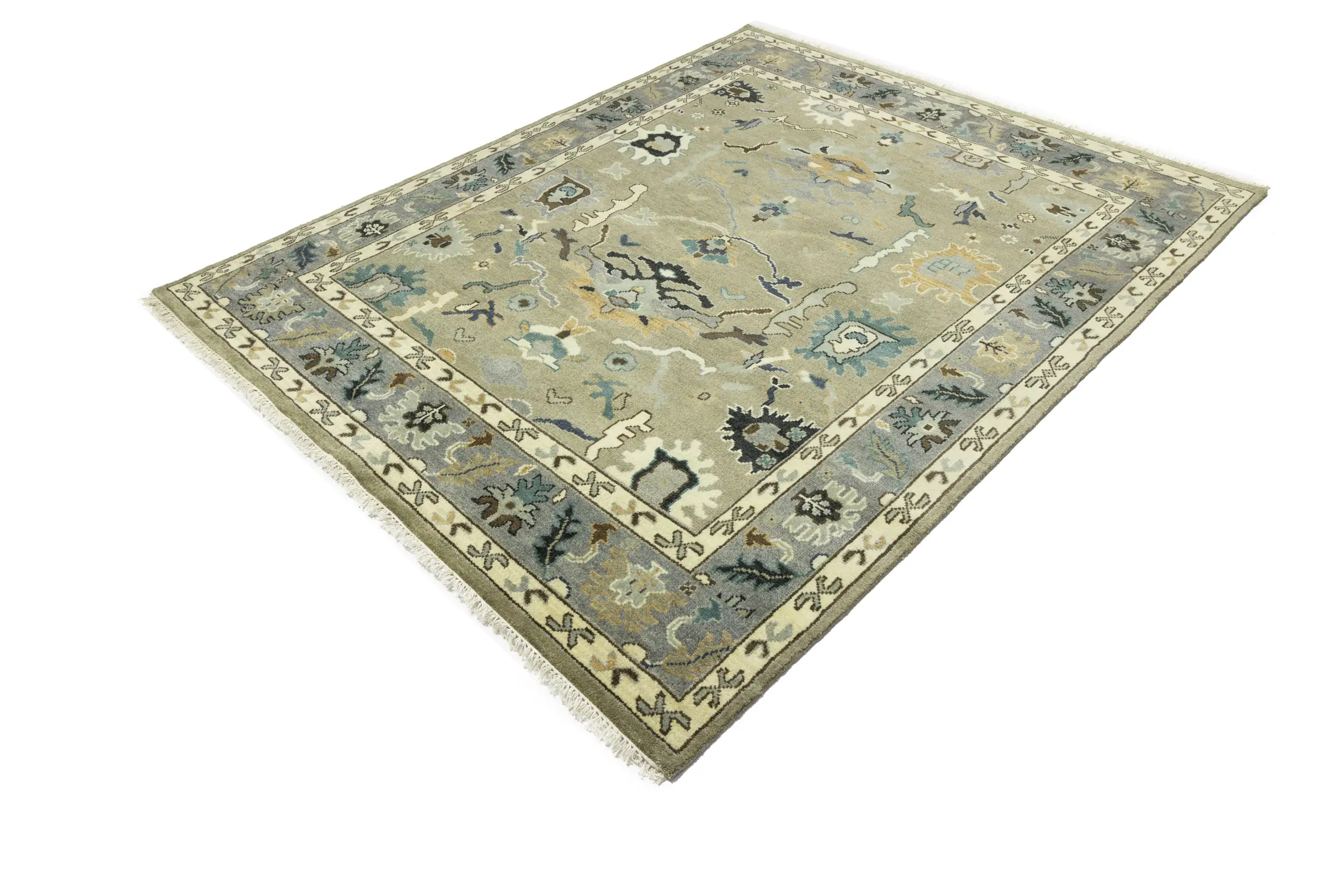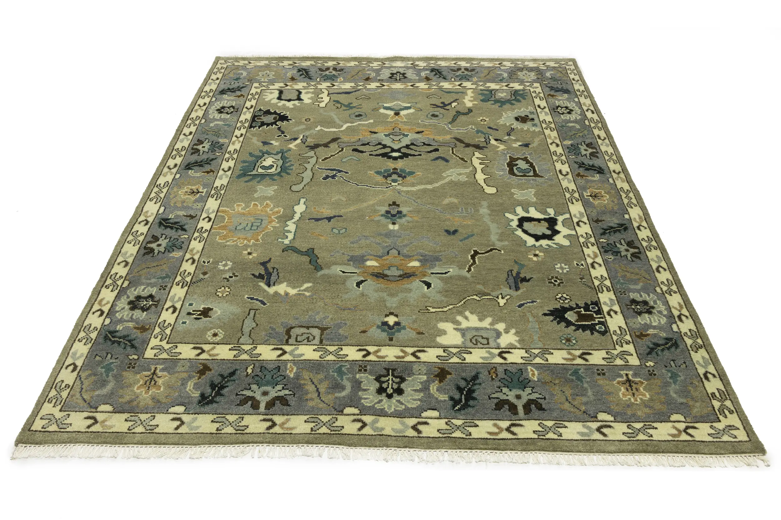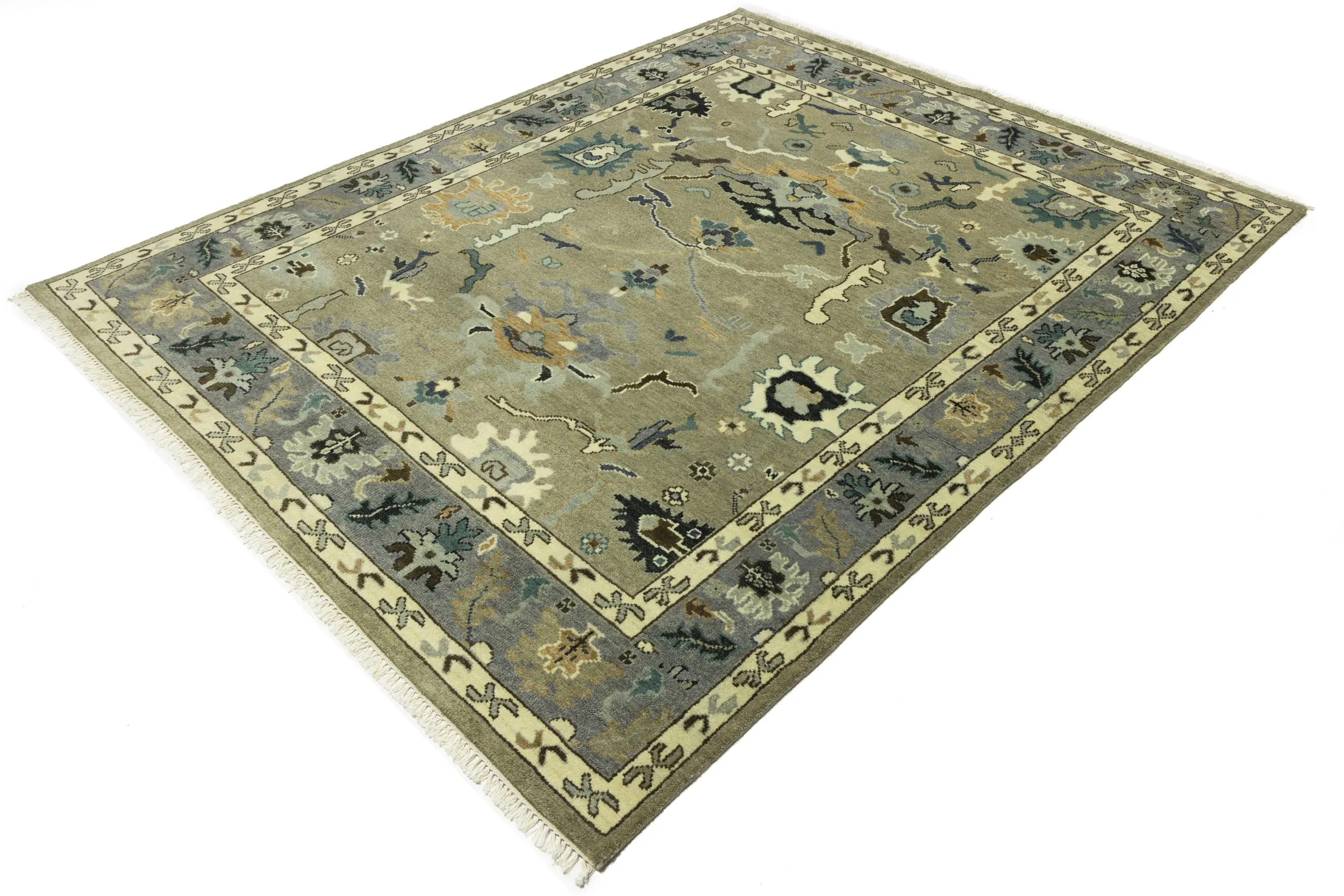 Khaki Floral 8X10 Oushak Chobi Oriental Rug