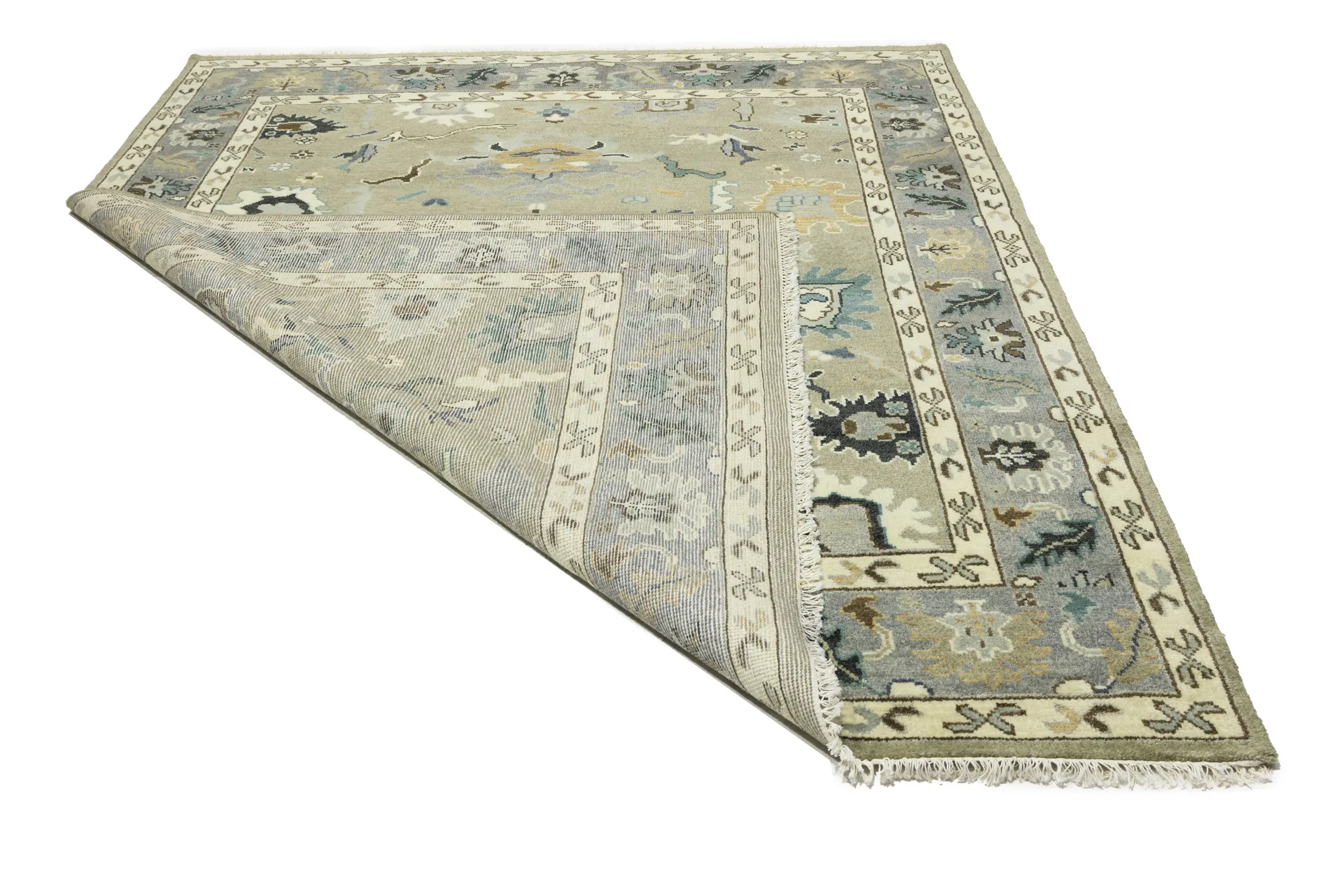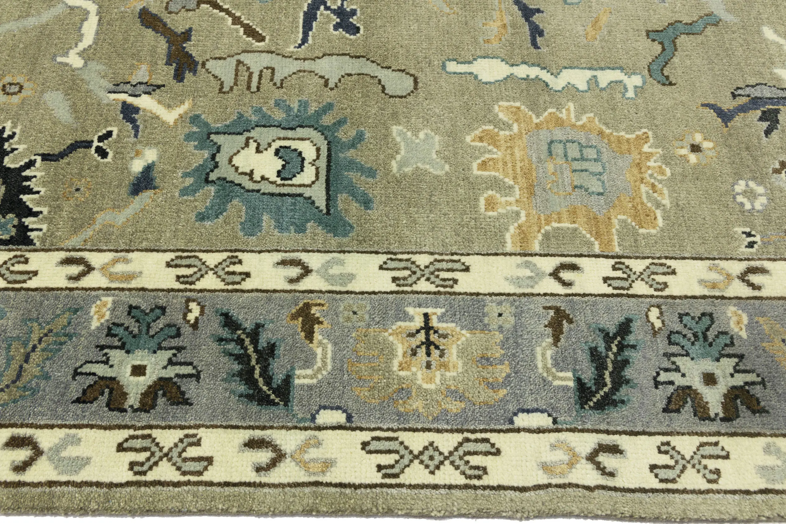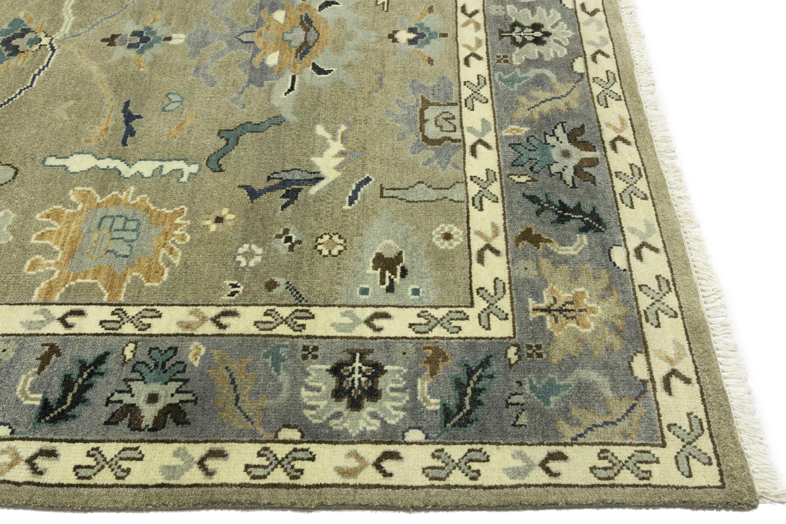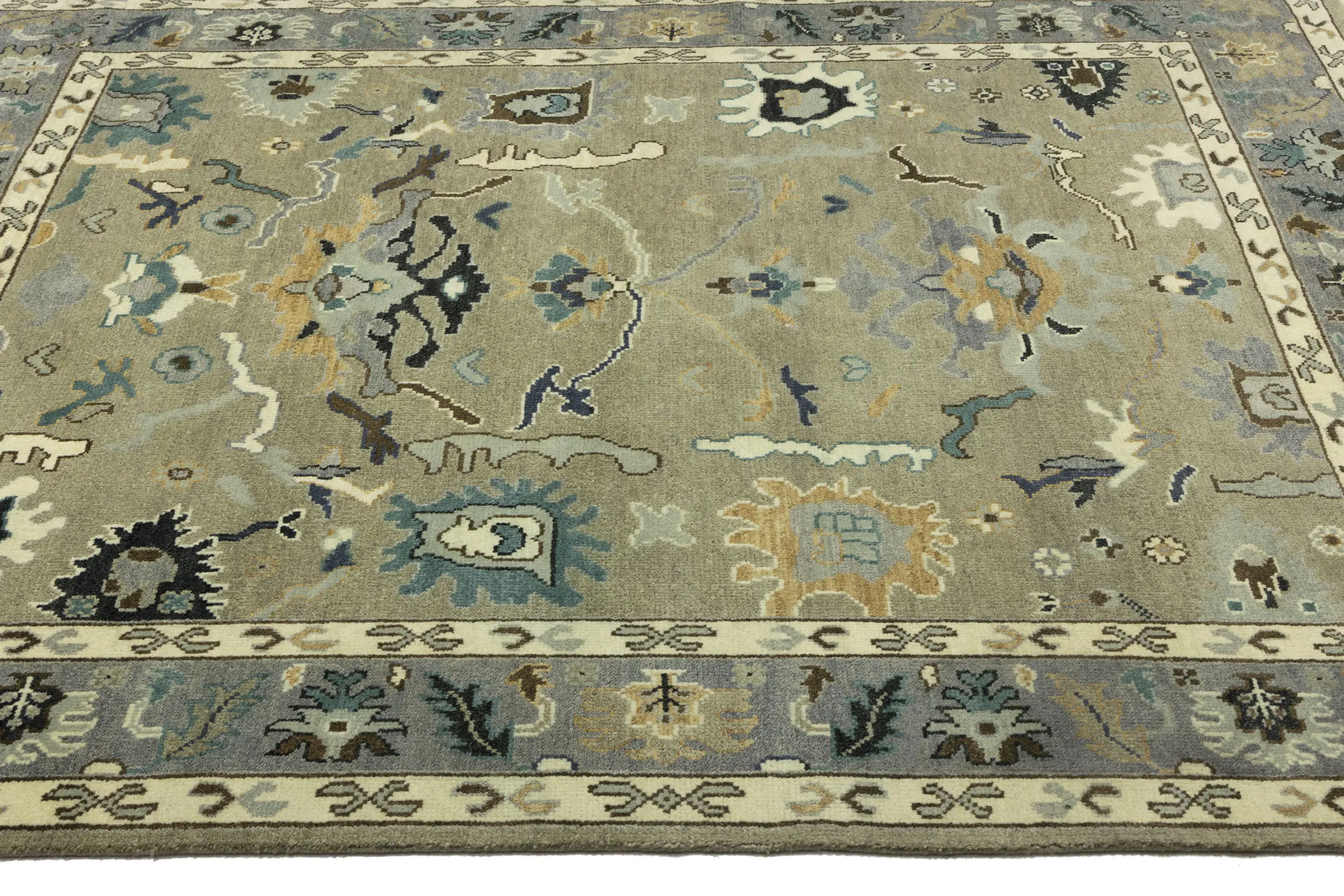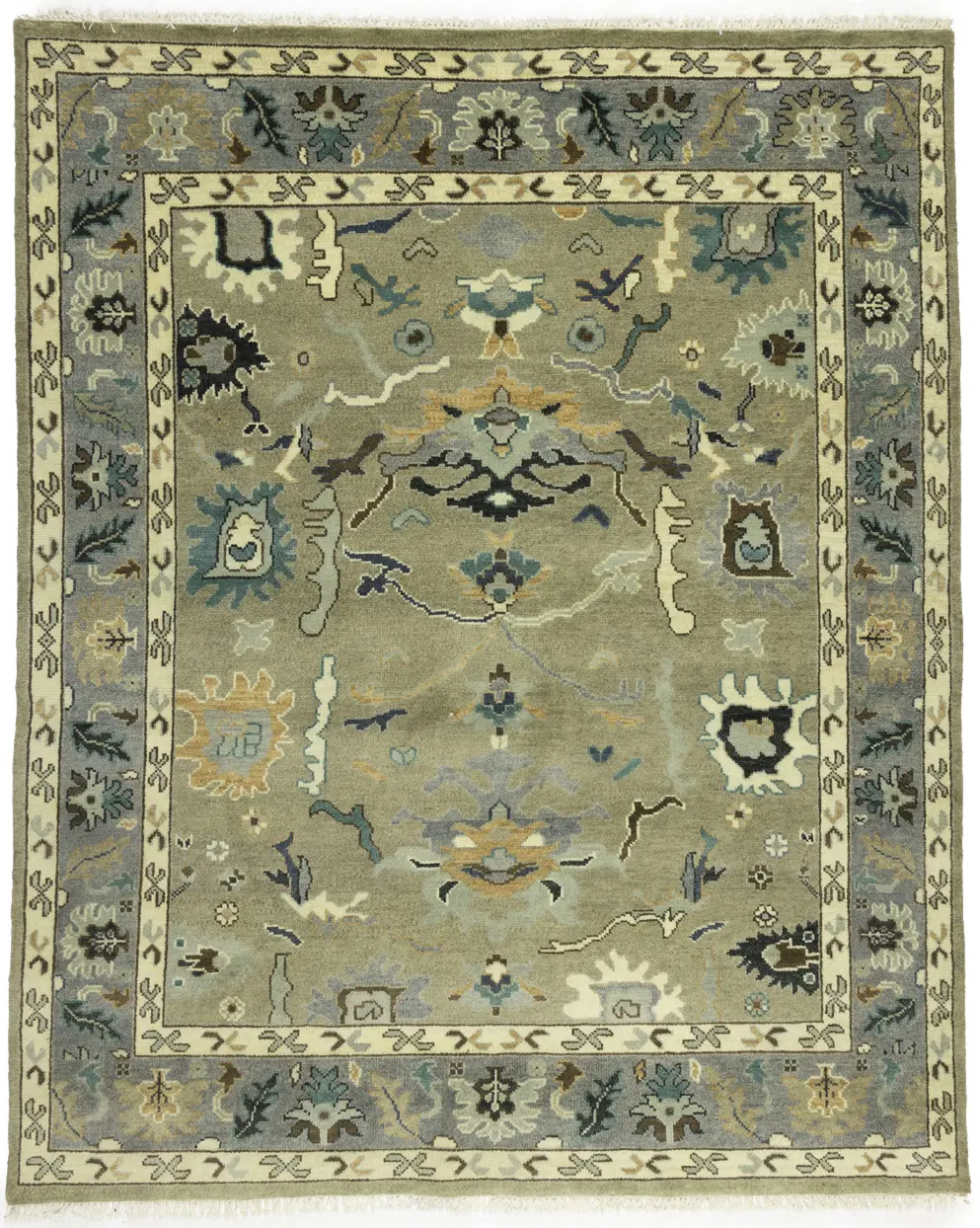 Khaki Floral 8X10 Oushak Chobi Oriental Rug
