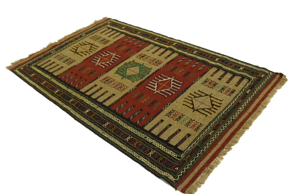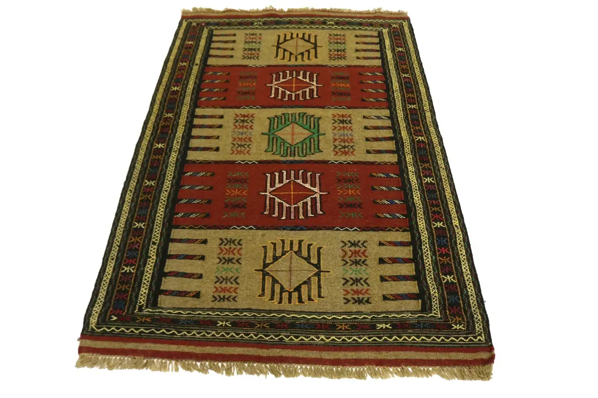 Handmade 4X6 flat-weave Sumak Persian rug made with natural dyes (fine wool pile and cotton foundation), superior knot count, and appealing ancient designs. This Oriental rug never will go out of style and would be among your most valuable treasures.