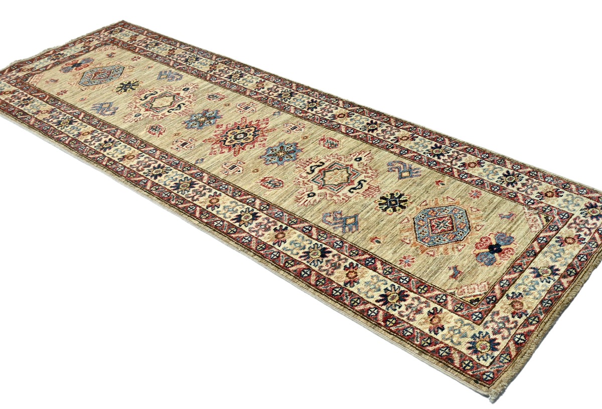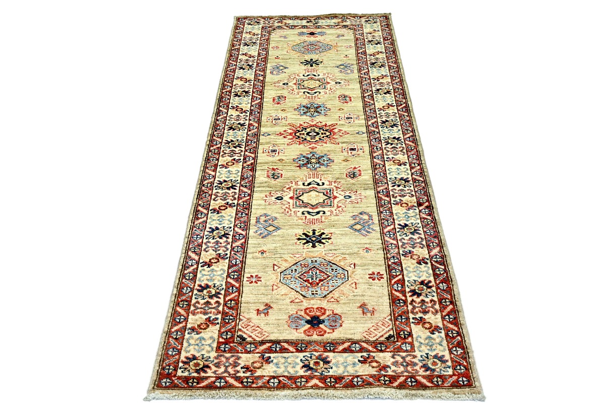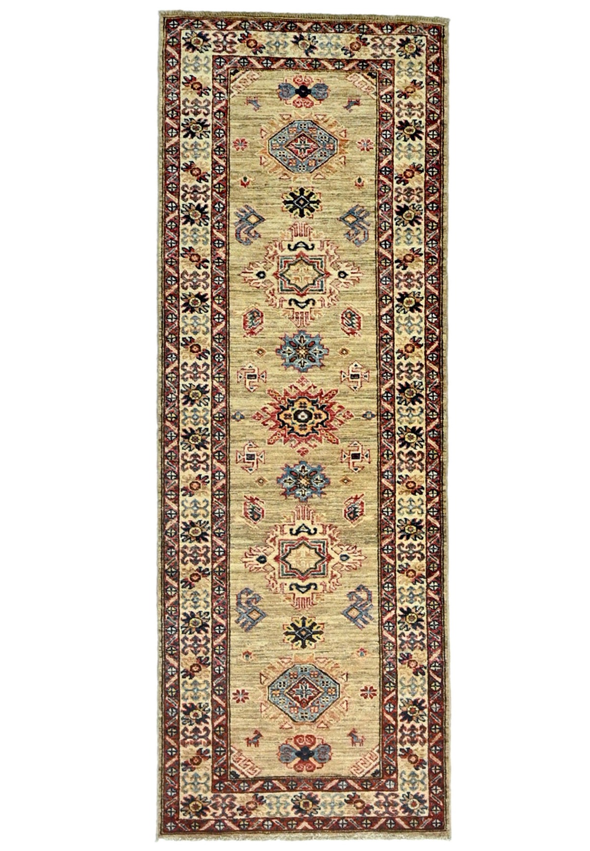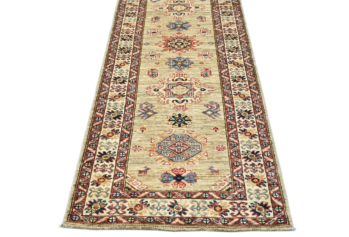 Khaki Tribal Geometric 2'5X7 Kazak Pakistan Oriental Runner Rug