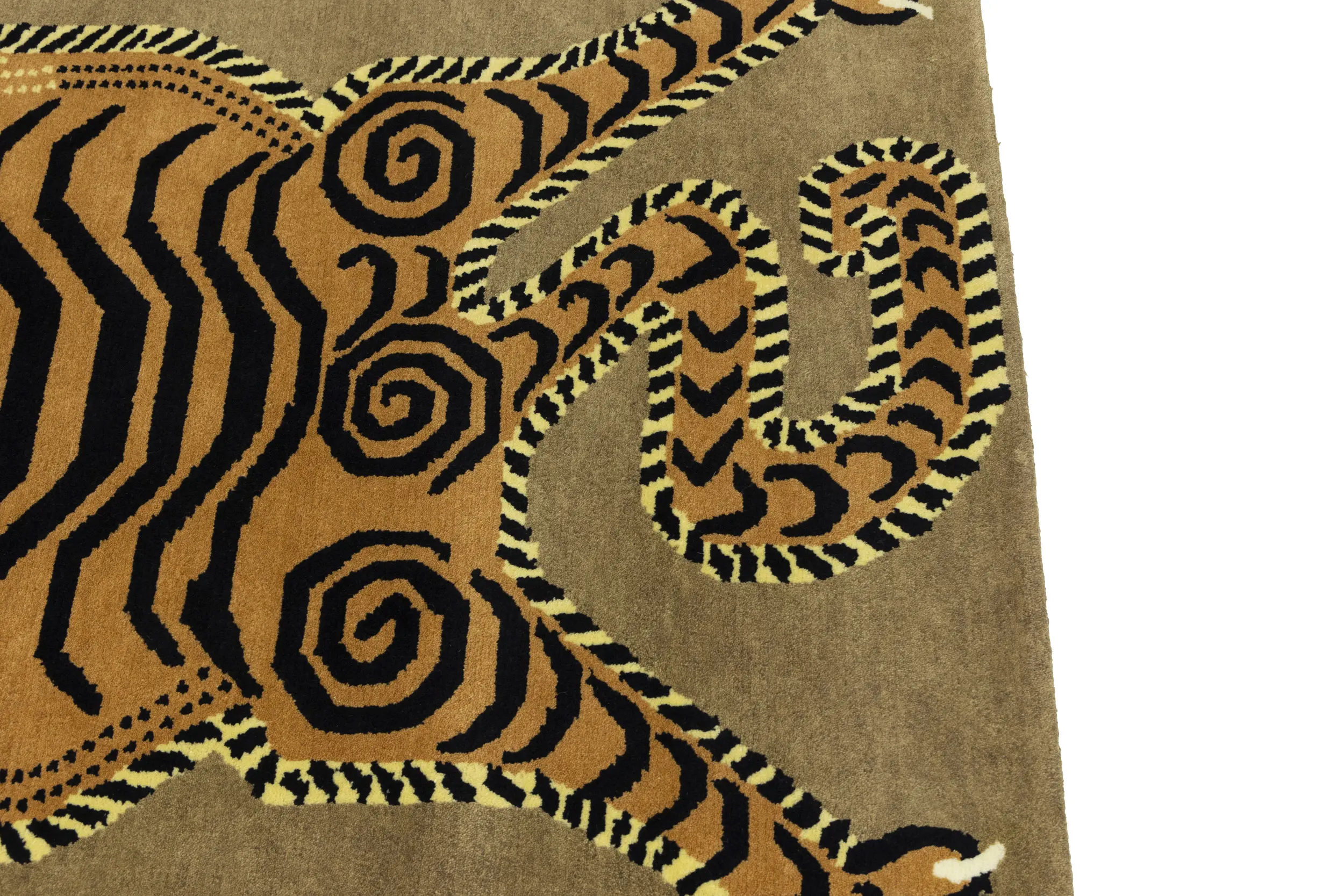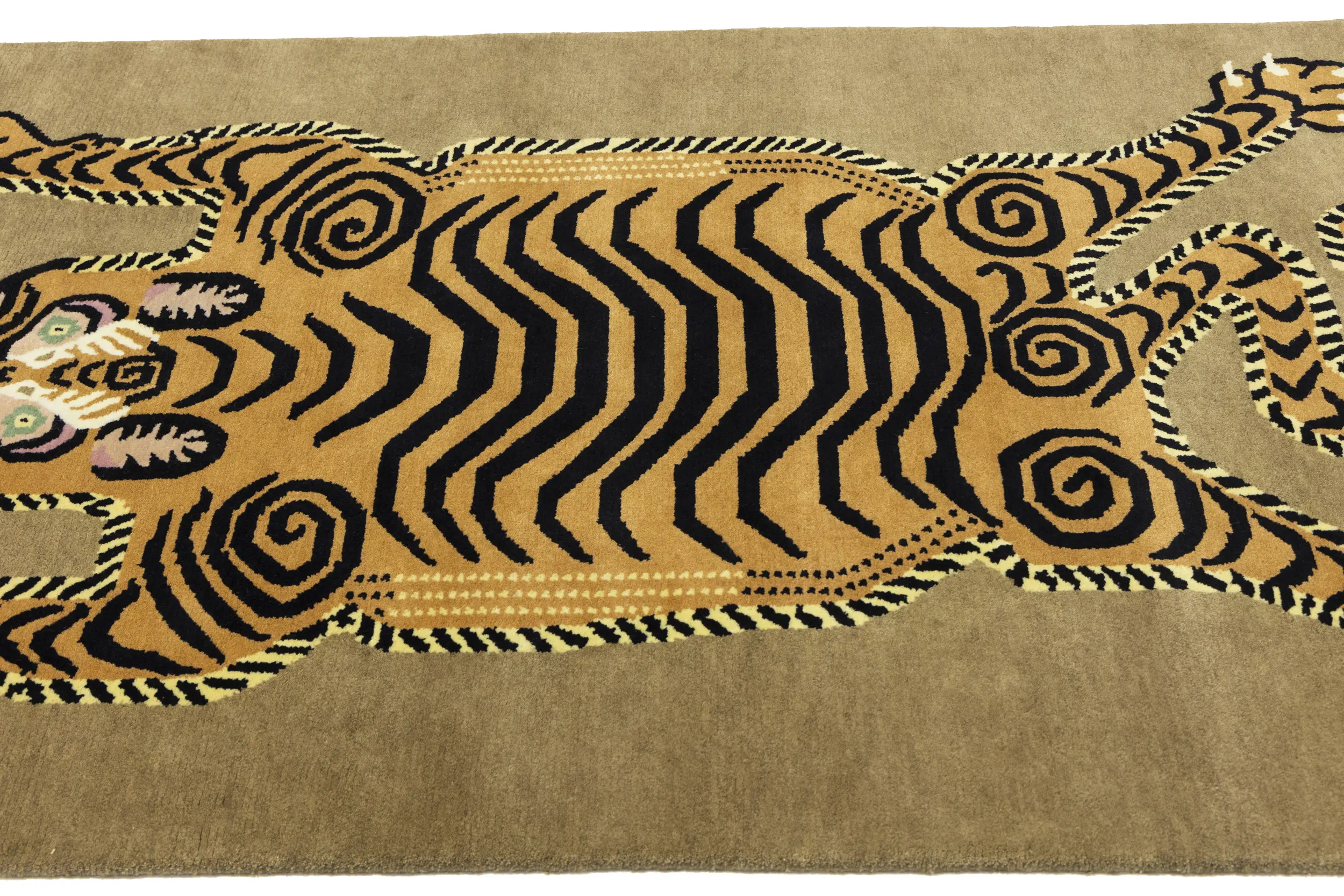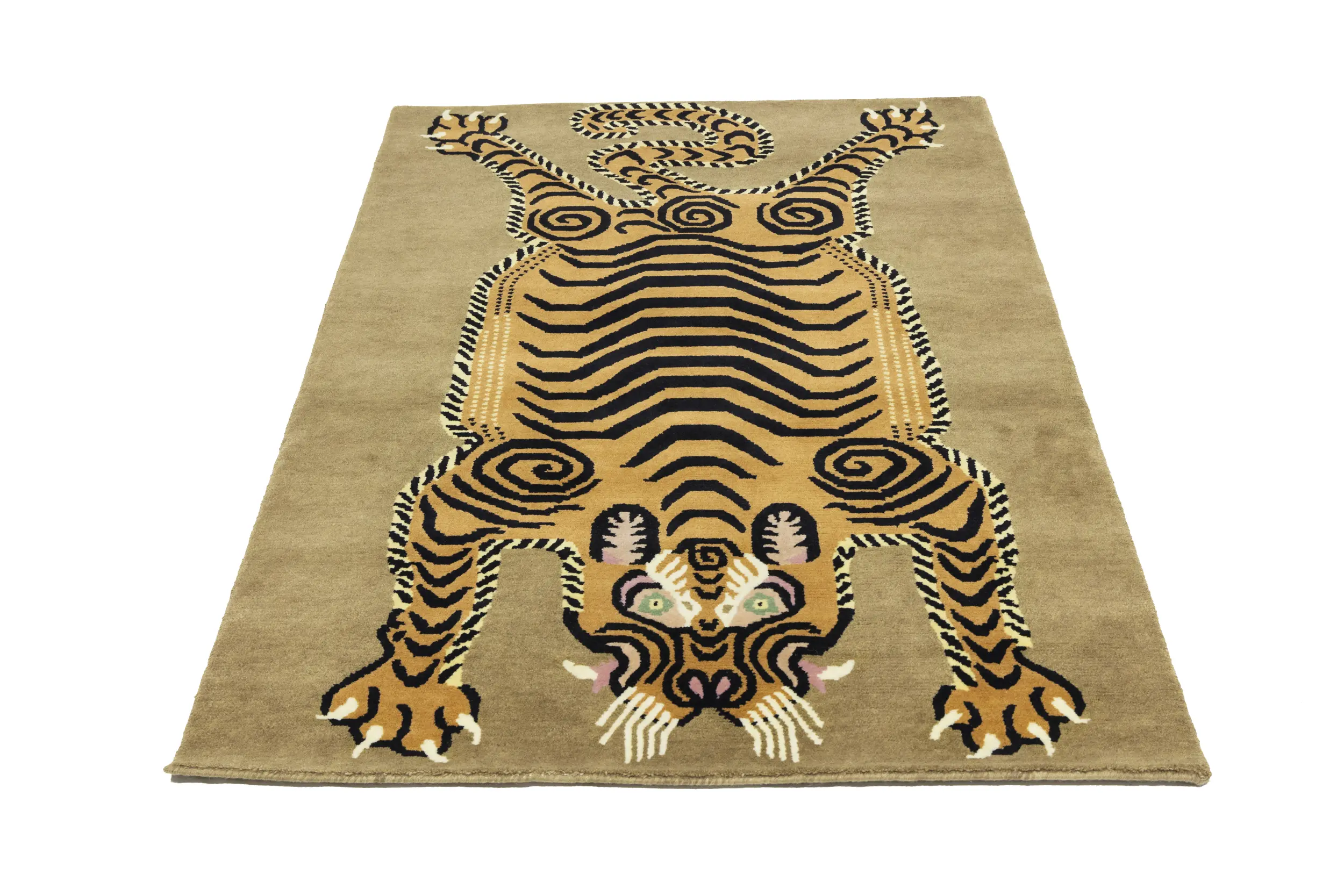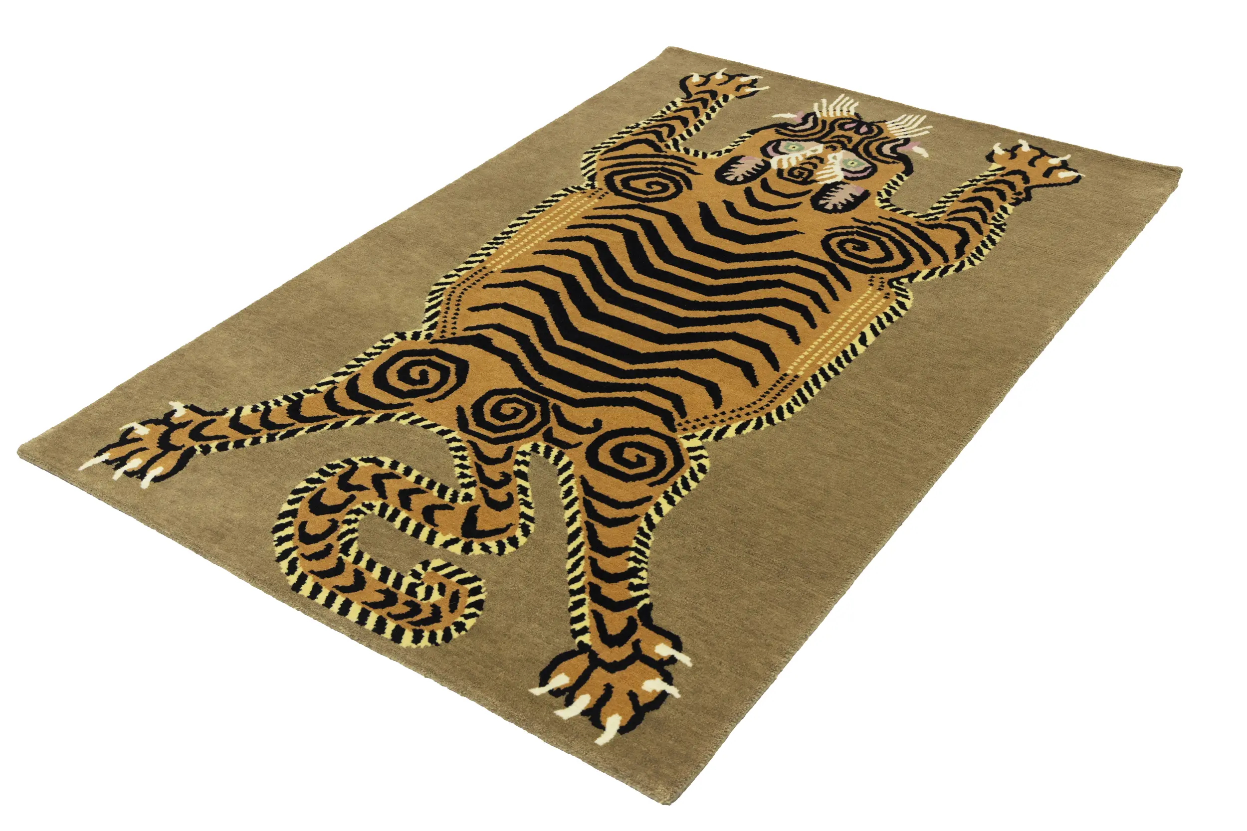 Khaki Tribal Pictorial 4X6 Fine Nepali Oriental Rug