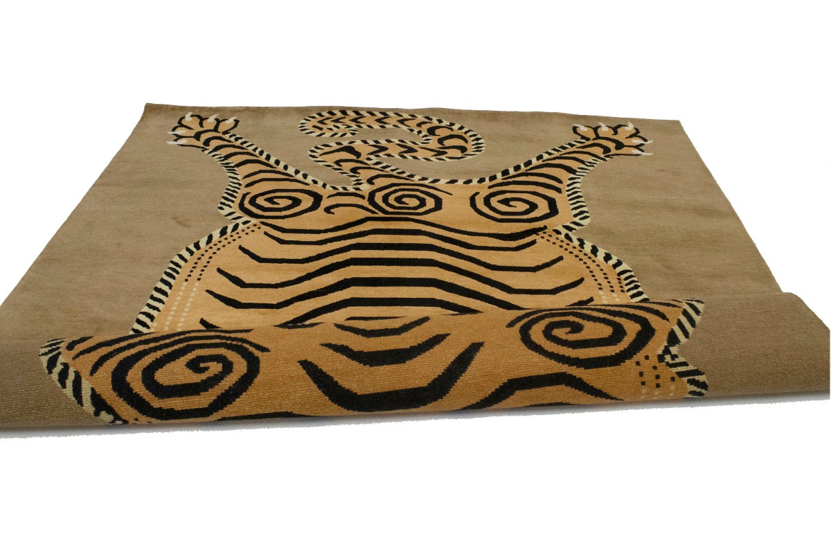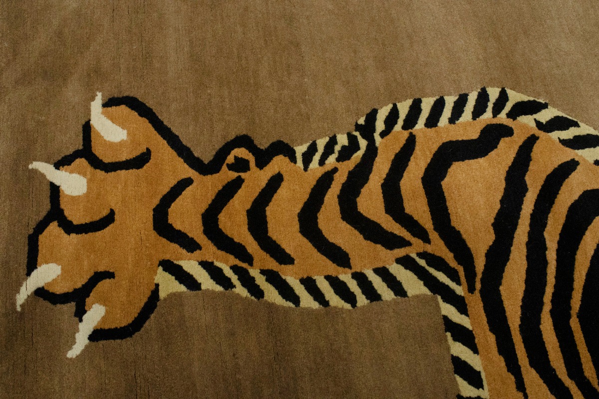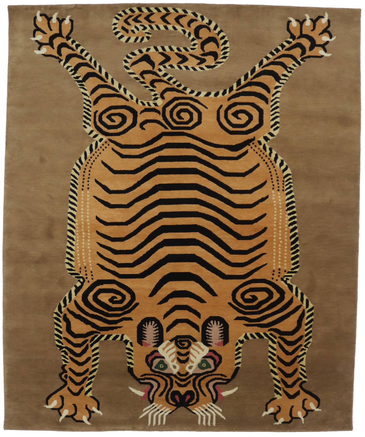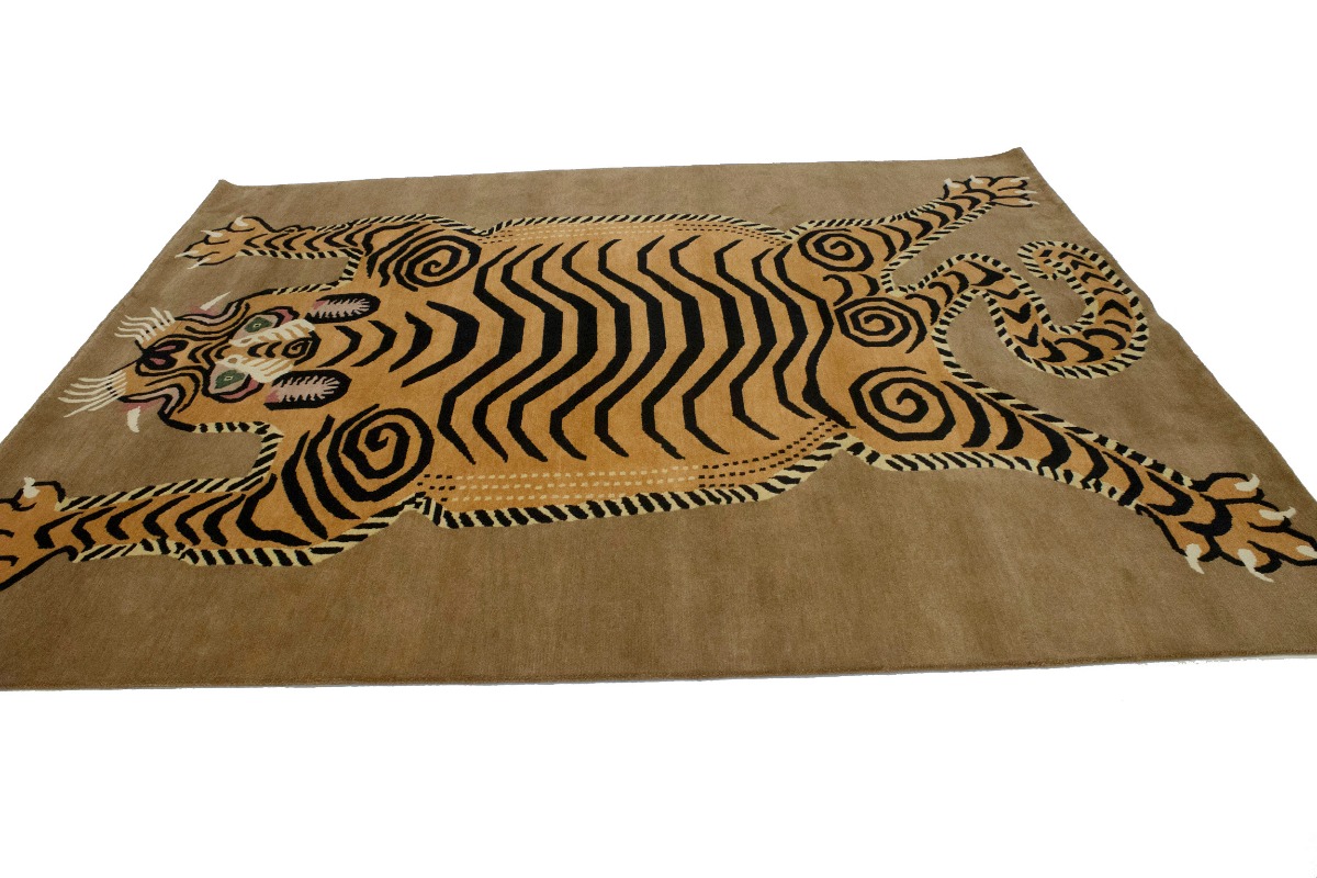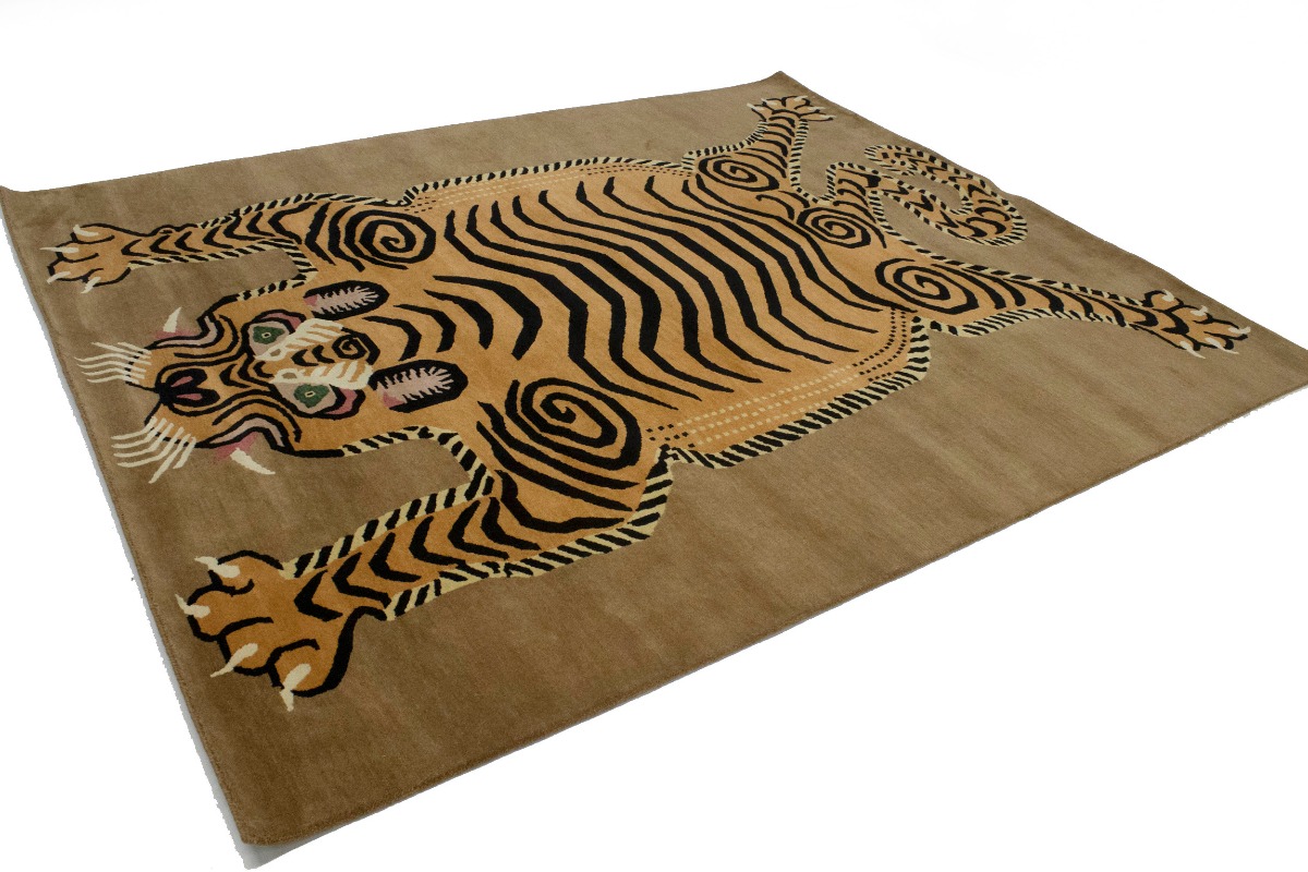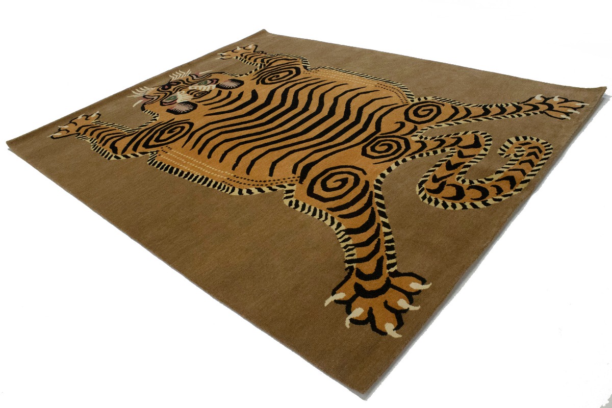Tiger Khaki Tribal Pictorial 8X10 Fine Nepali Oriental Rug