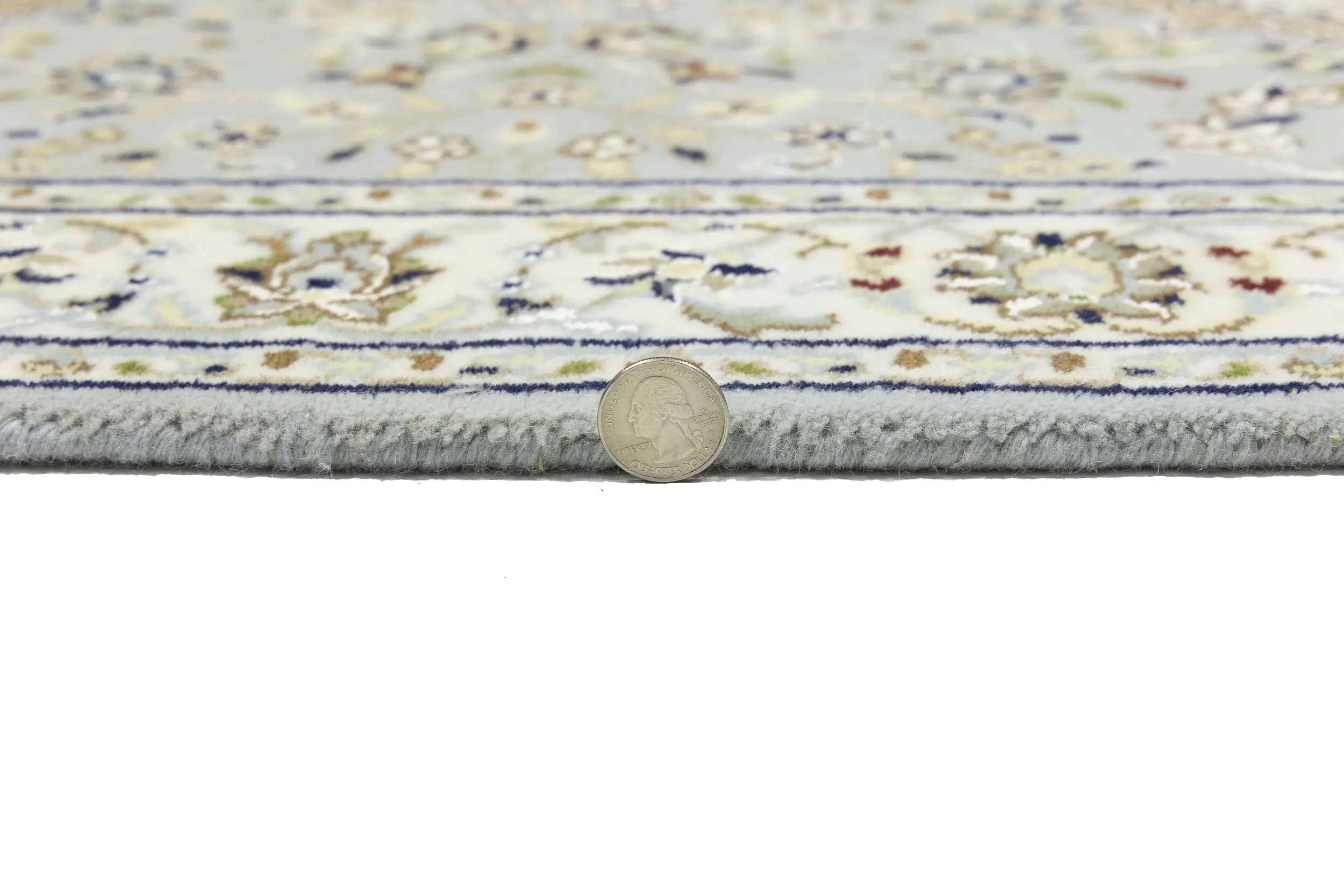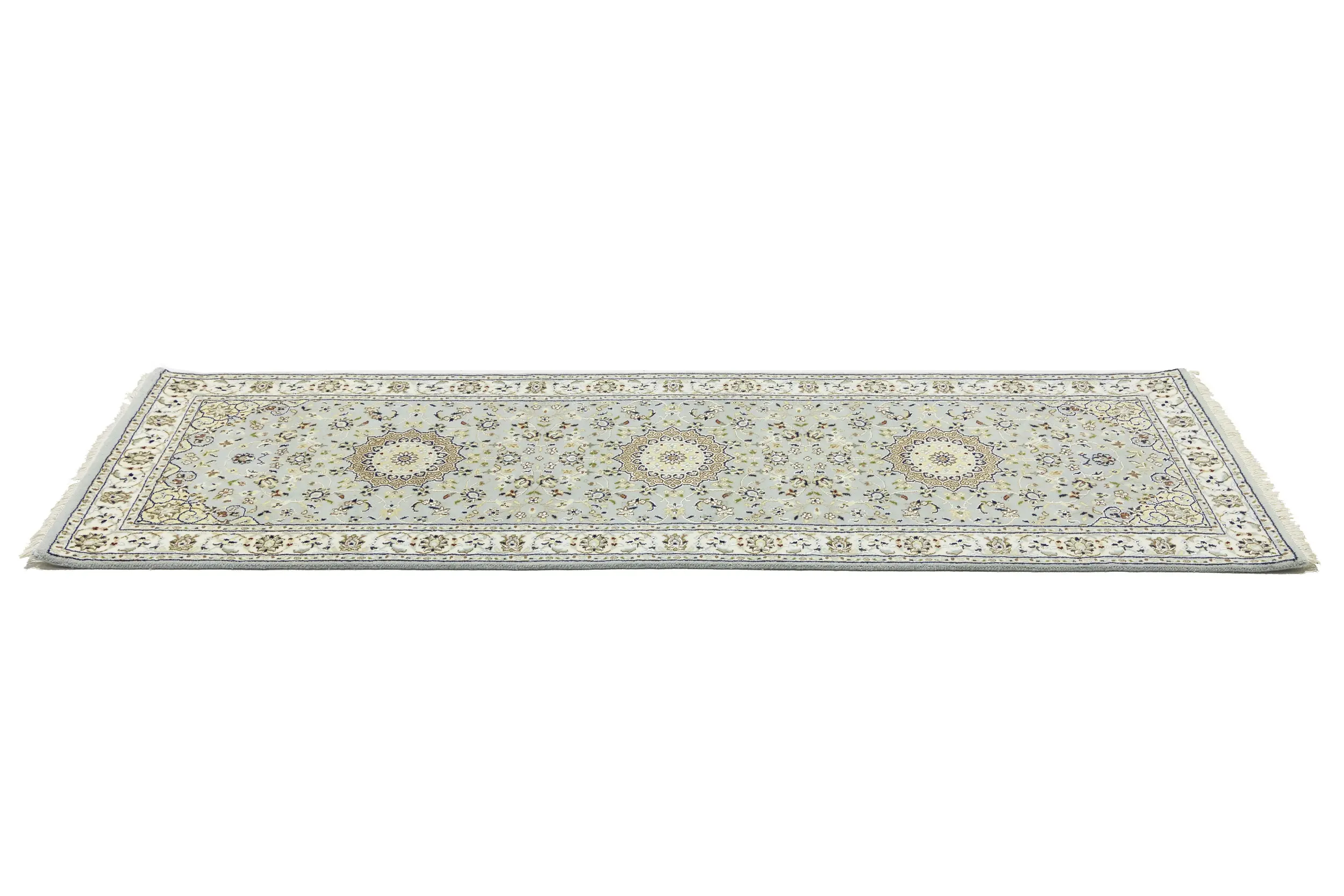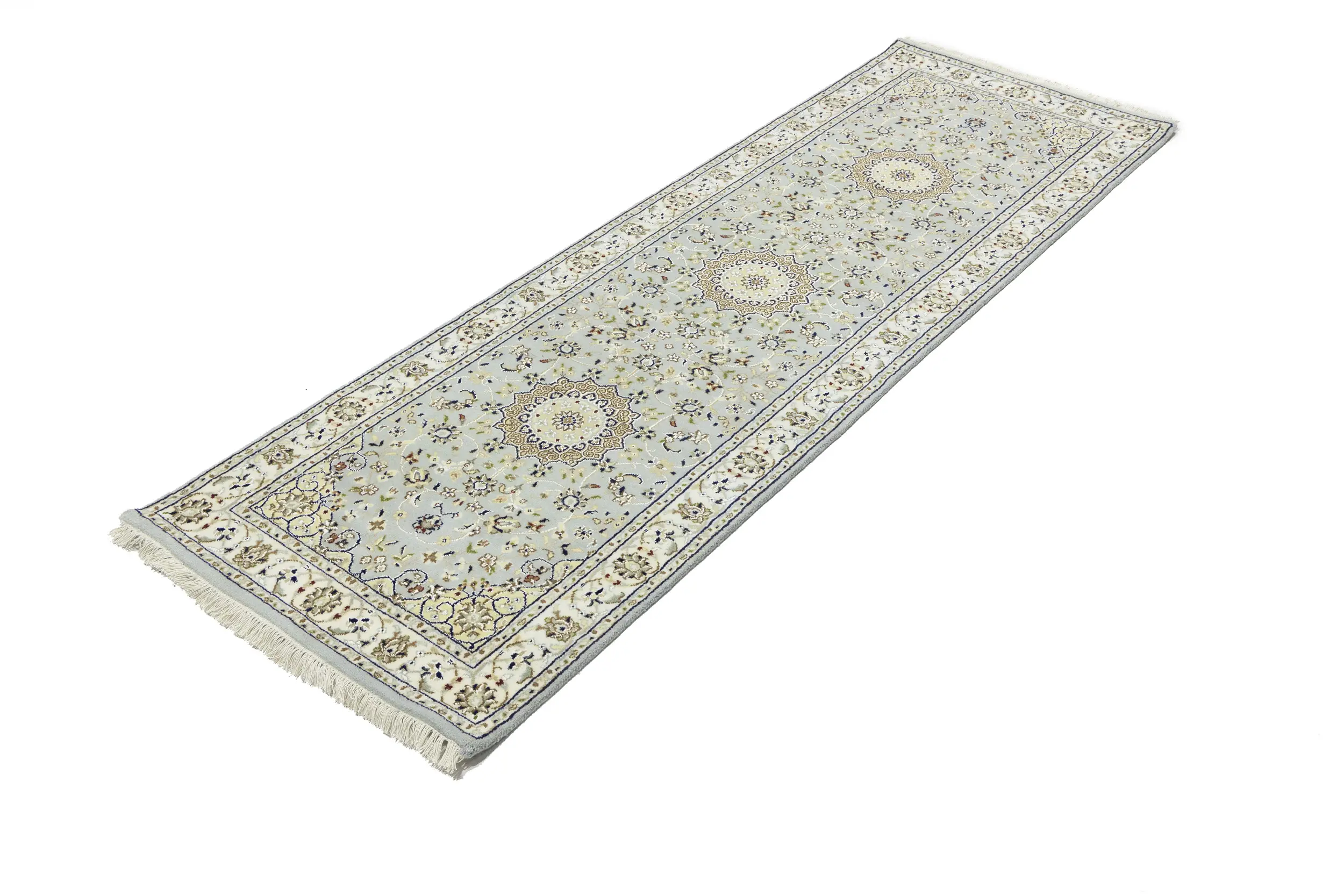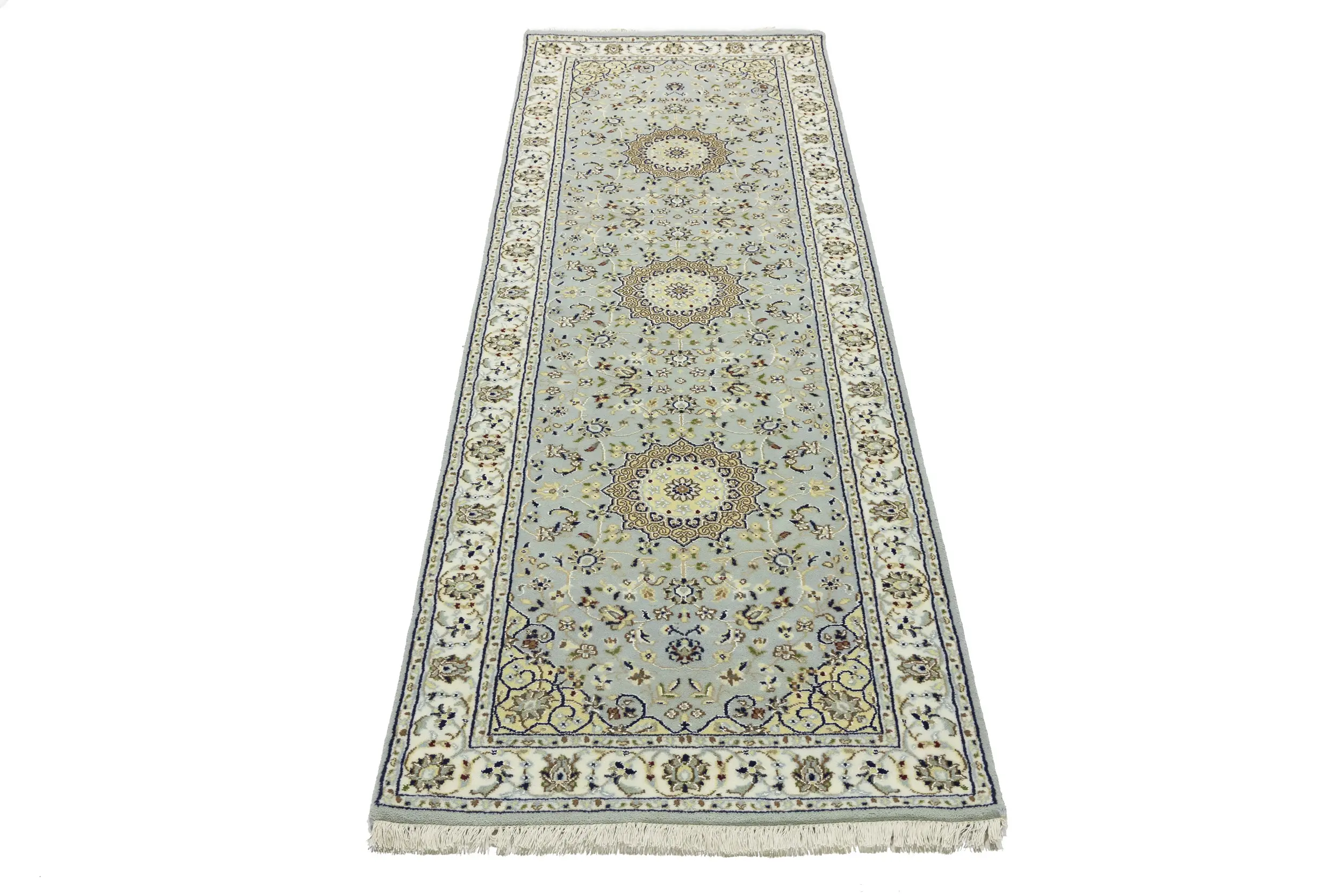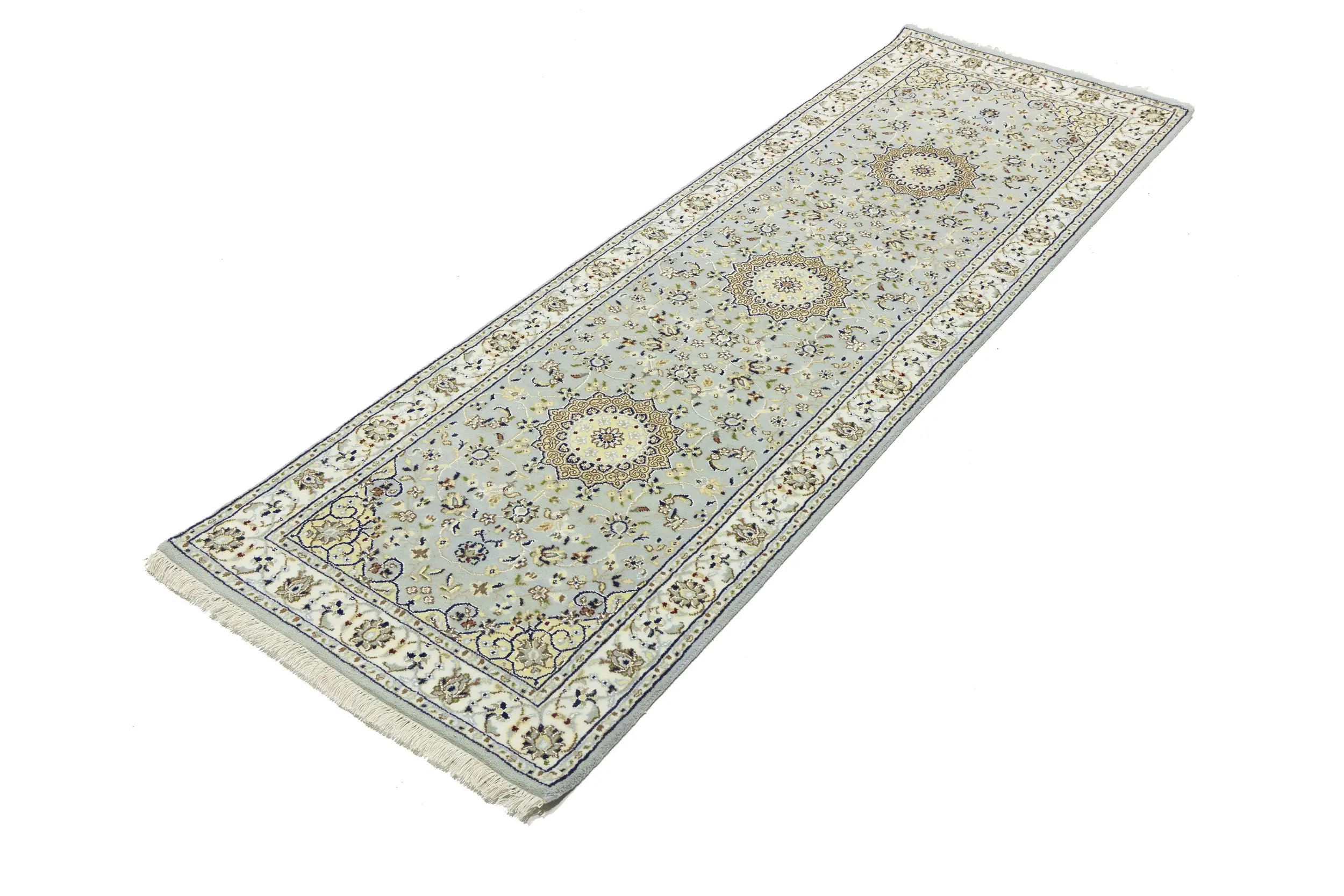 Light Blue Floral 3X8 Indo-Nain Oriental Runner Rug