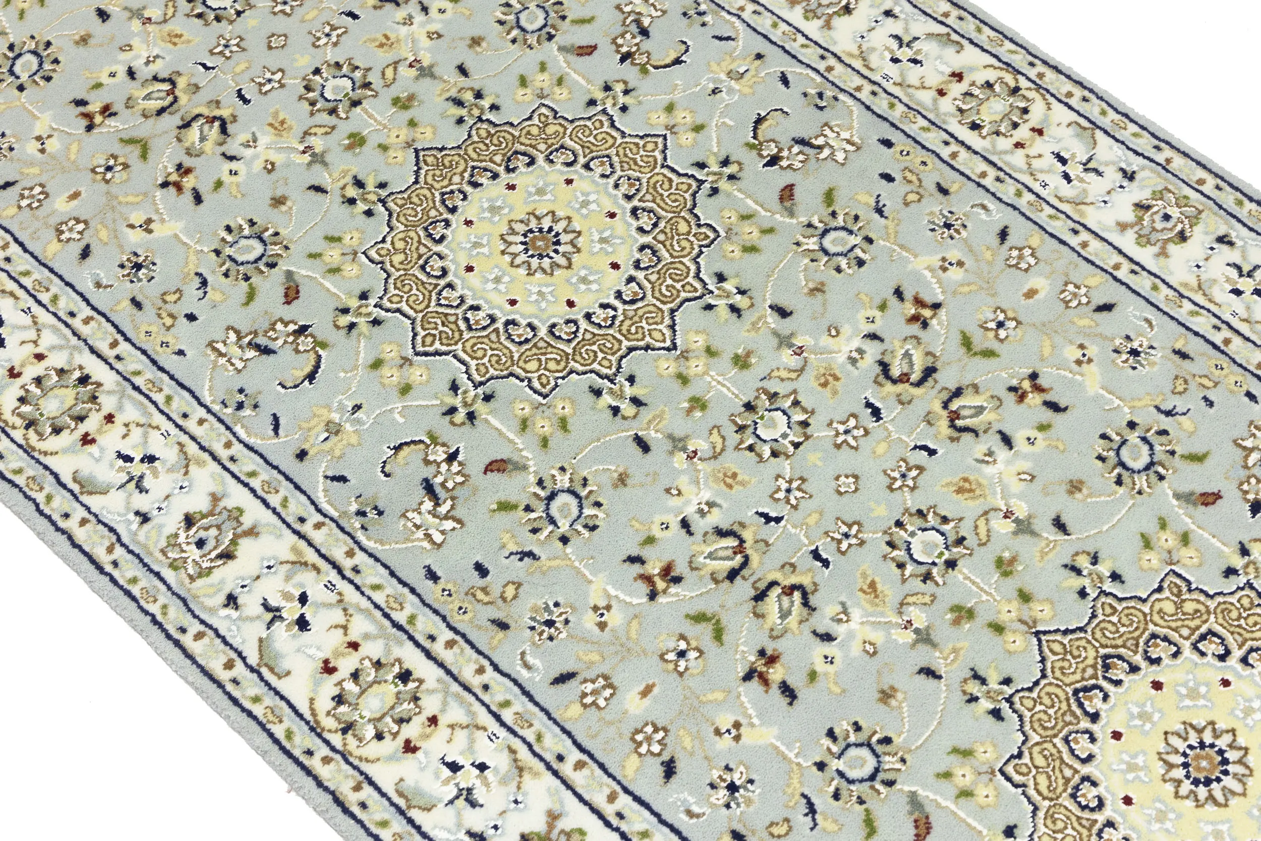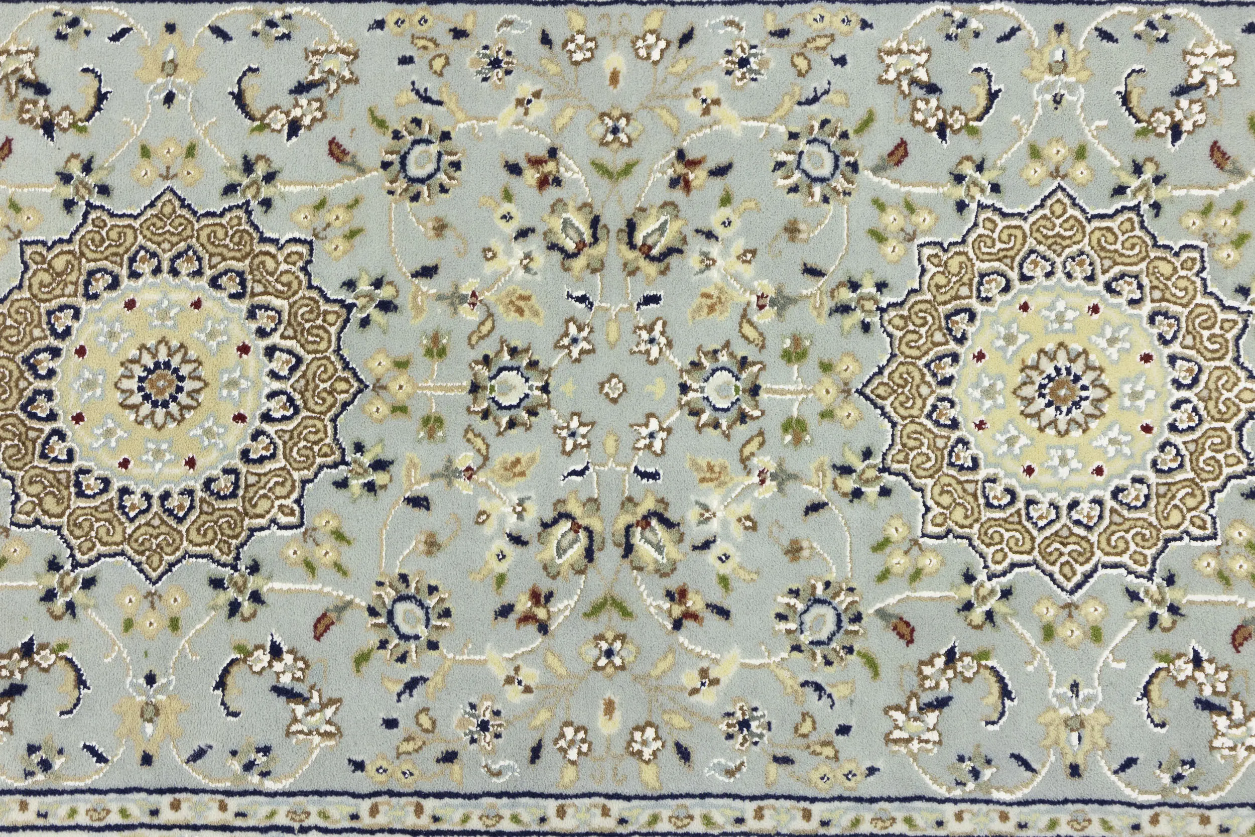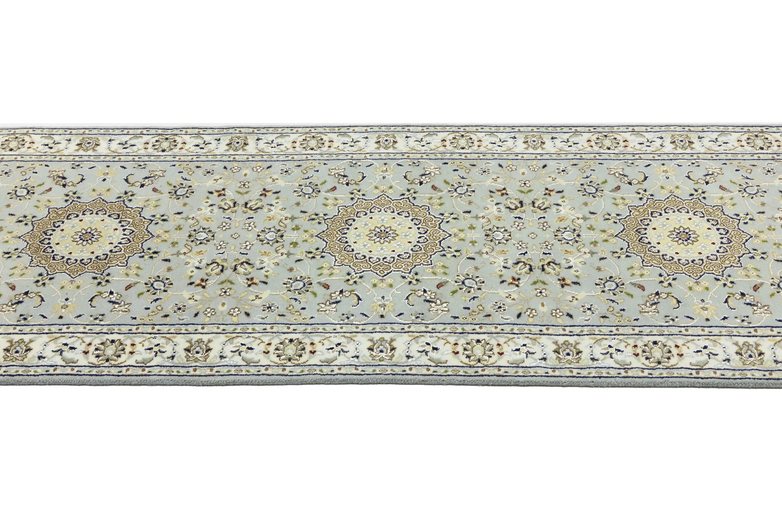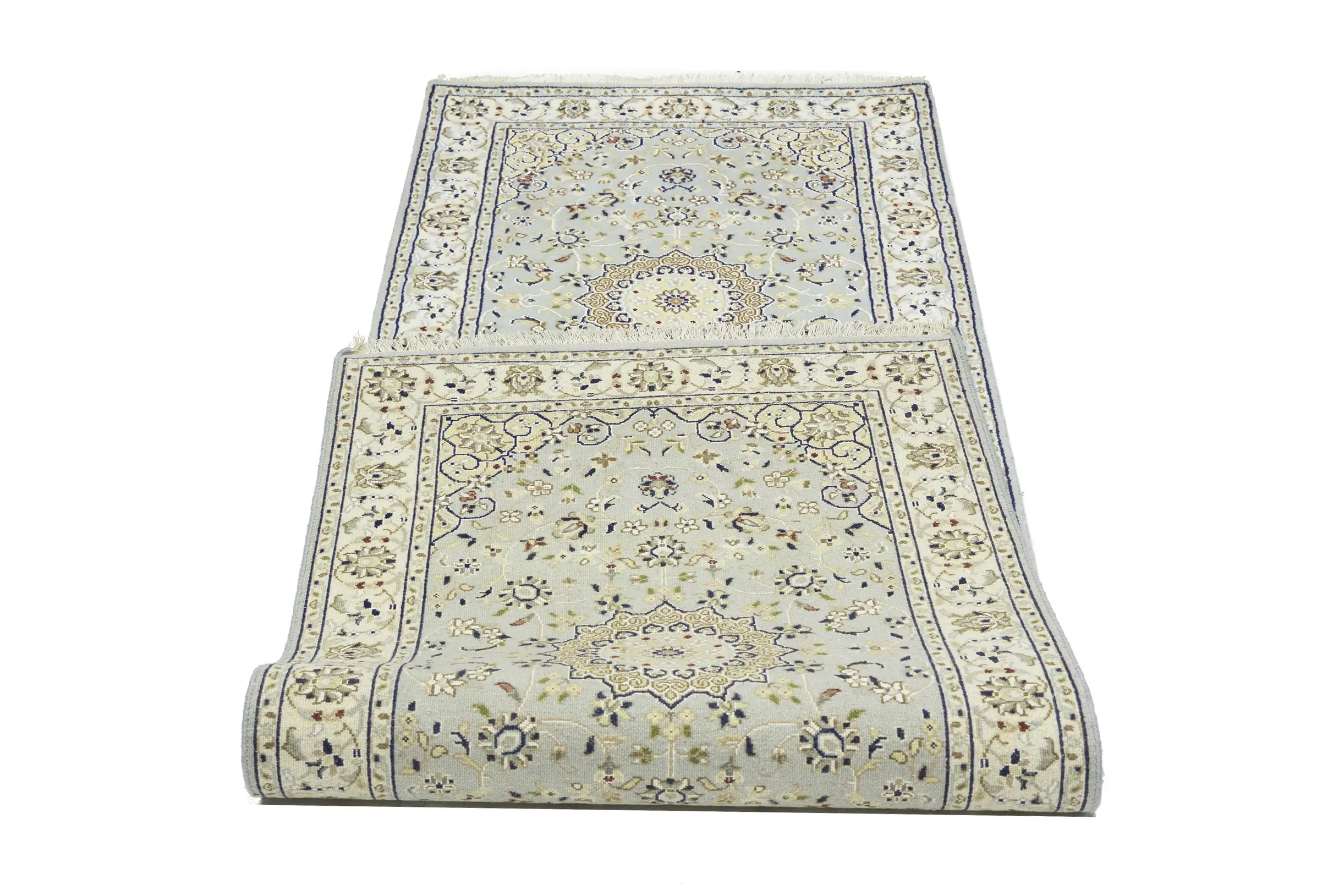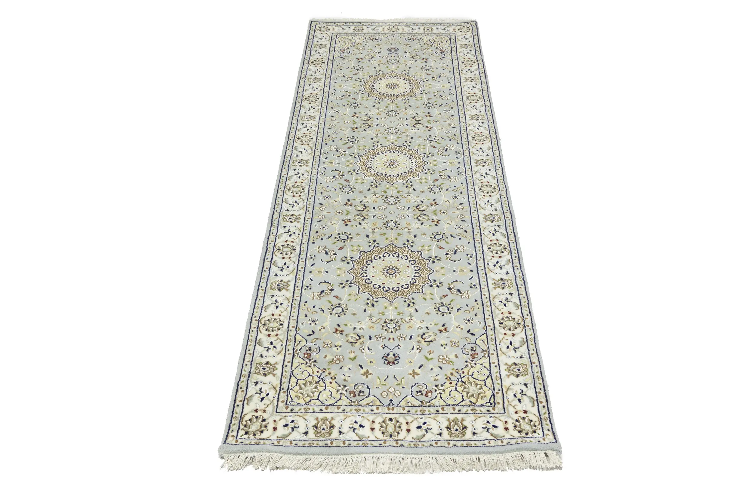 Light Blue Floral 3X8 Indo-Nain Oriental Runner Rug