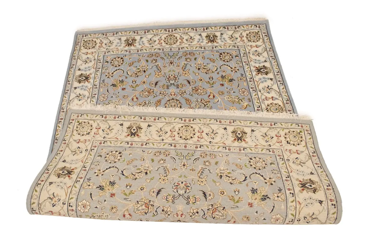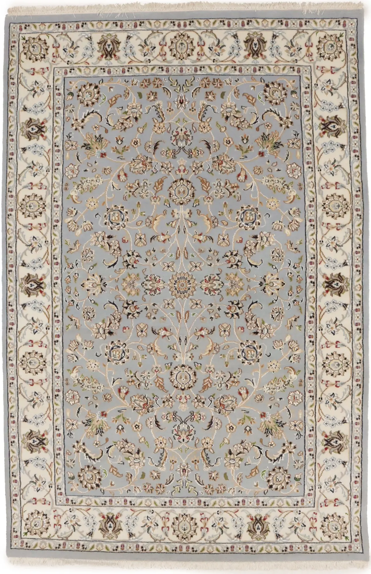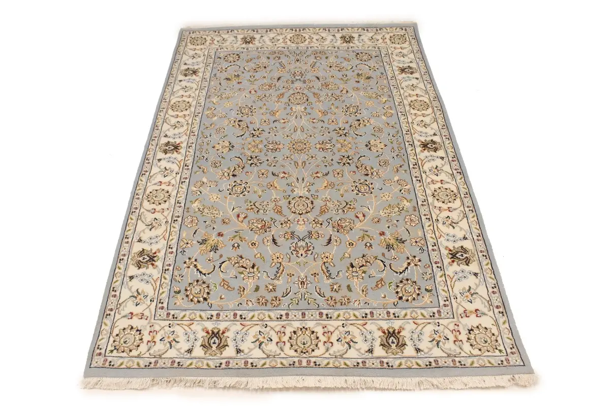 Light Blue Floral 4X6 Indo-Nain Oriental Rug