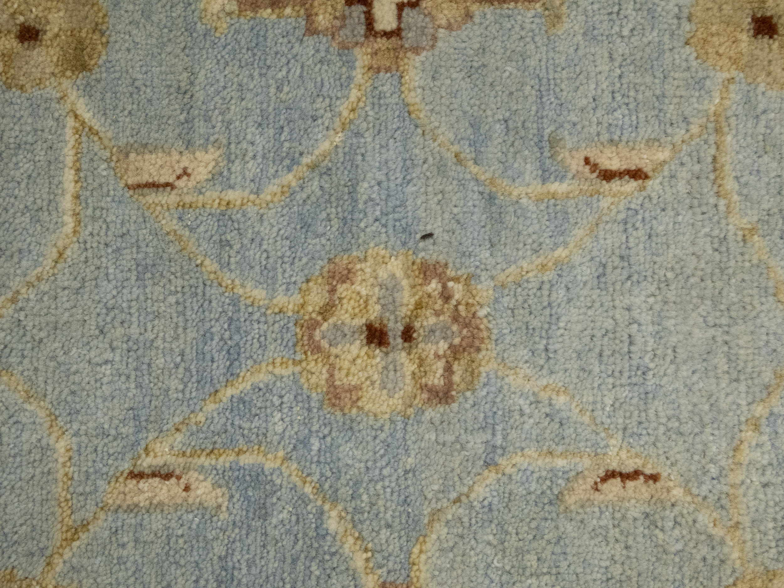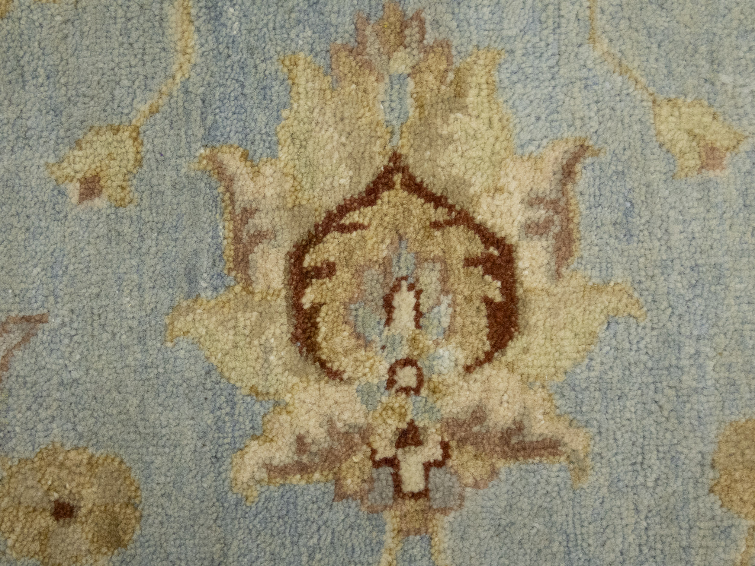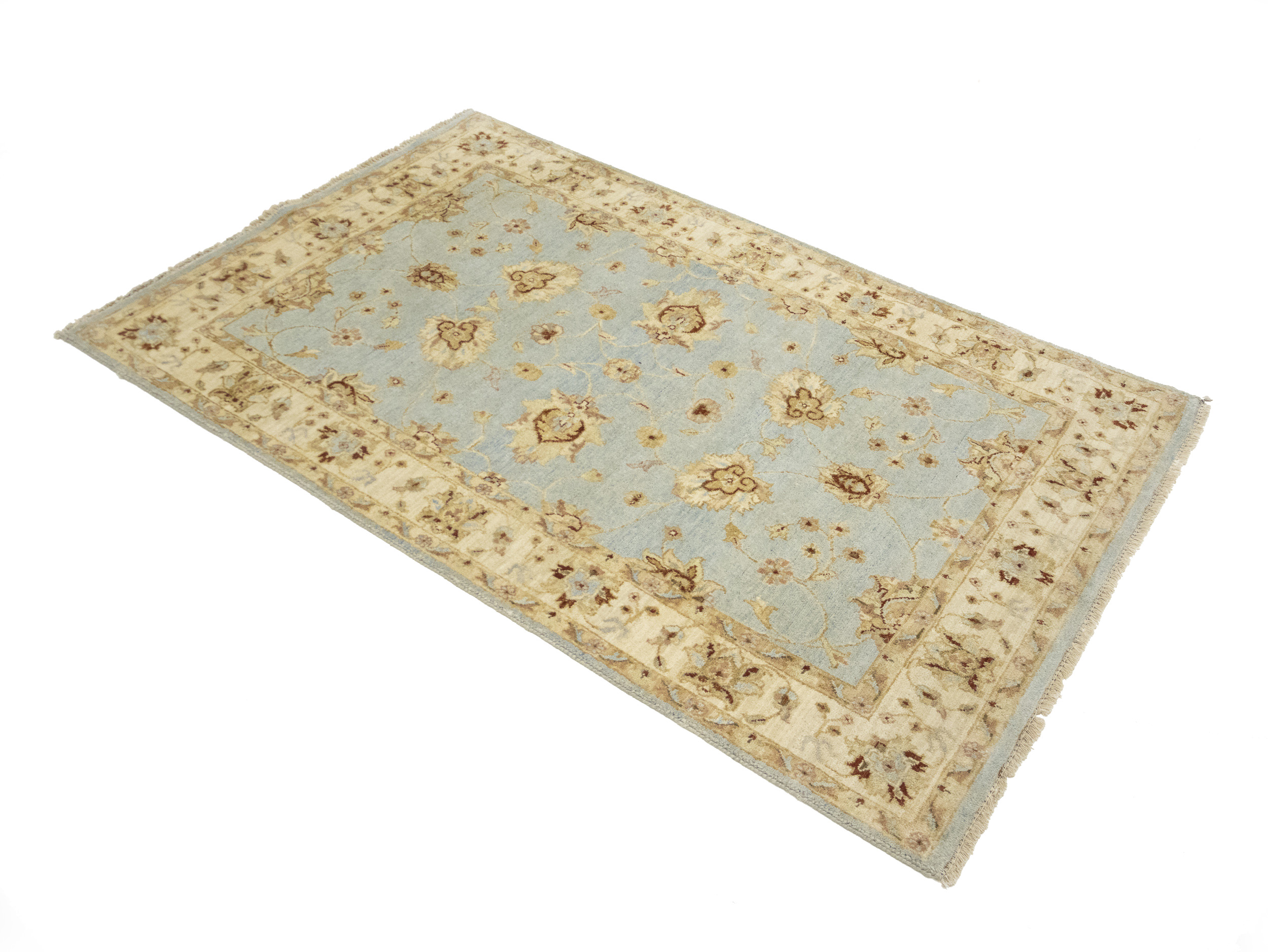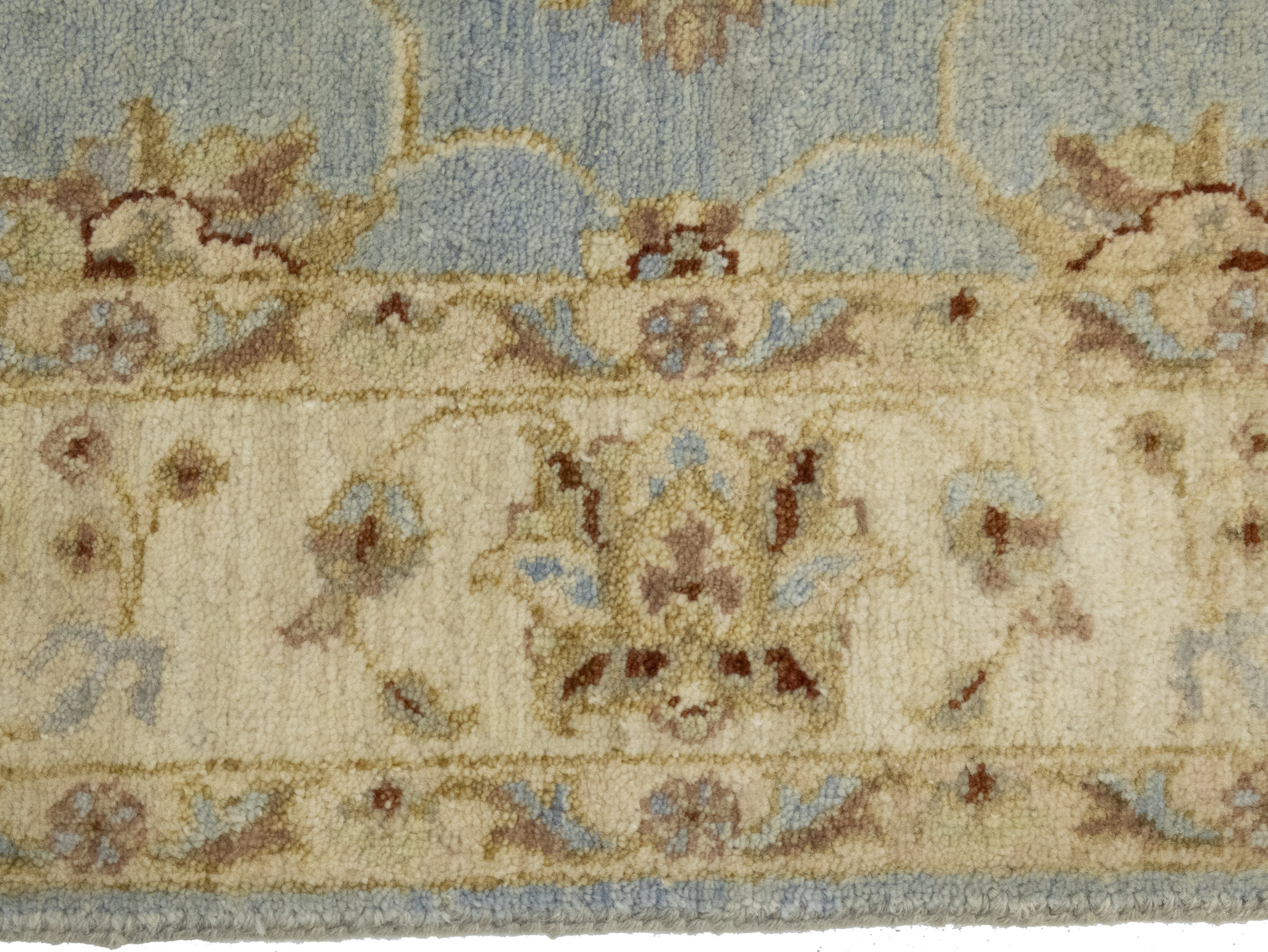 Handmade 4X6 light blue oriental rug made with vegetable dyes (fine wool pile and cotton foundation), exceptional knot count, and appealing ancient designs. This Oriental rug never will go out of style and would be among your most valuable treasures.