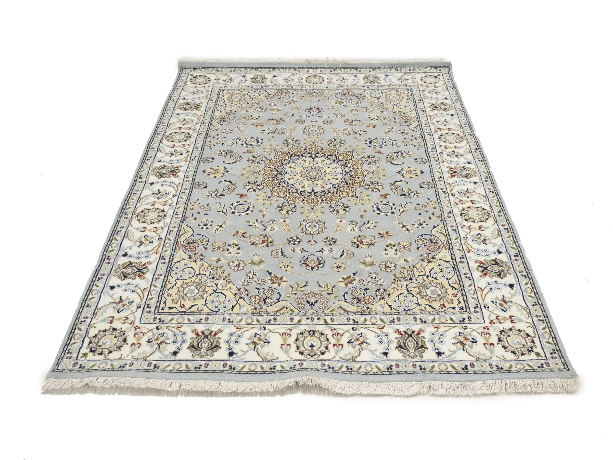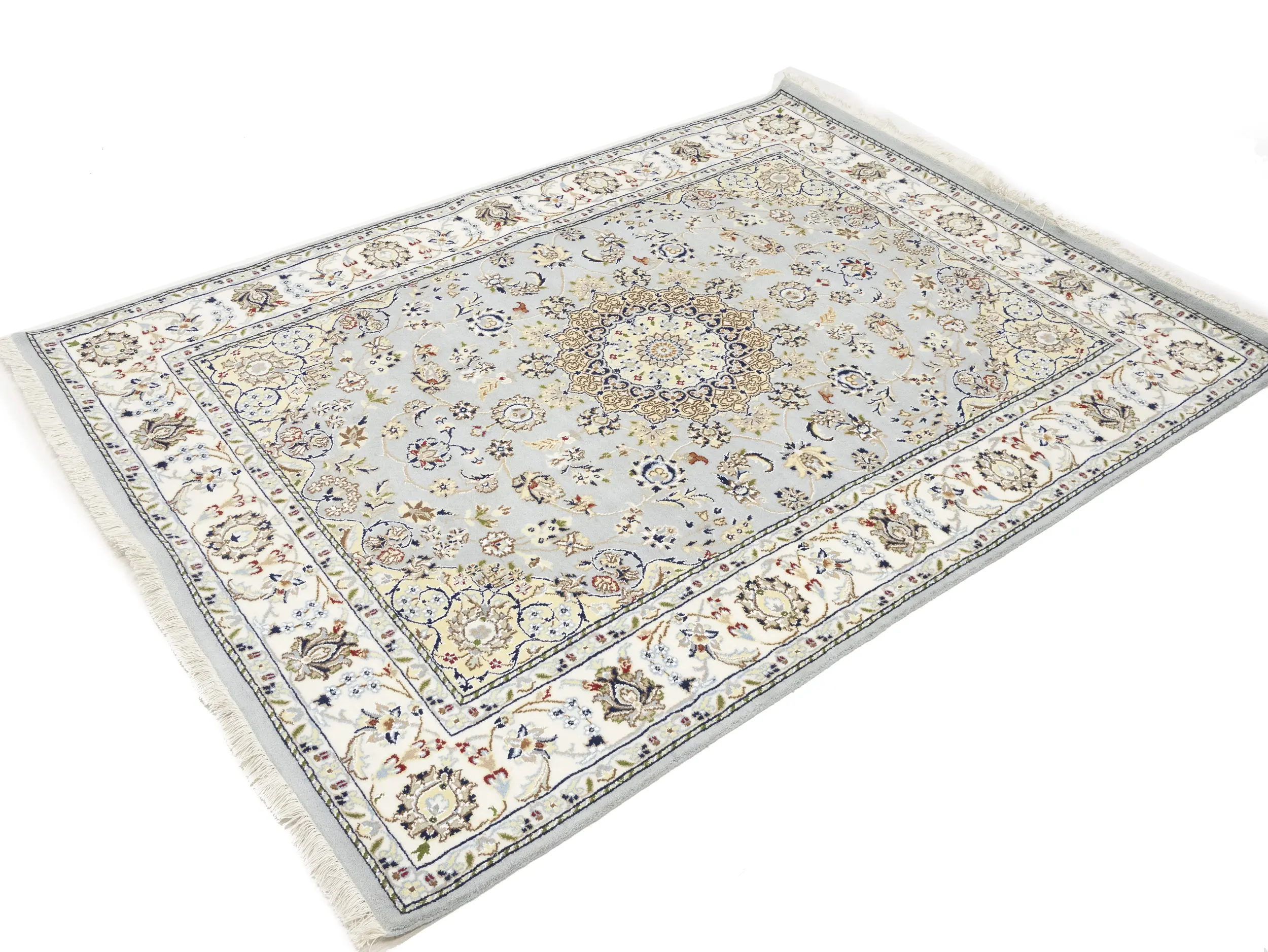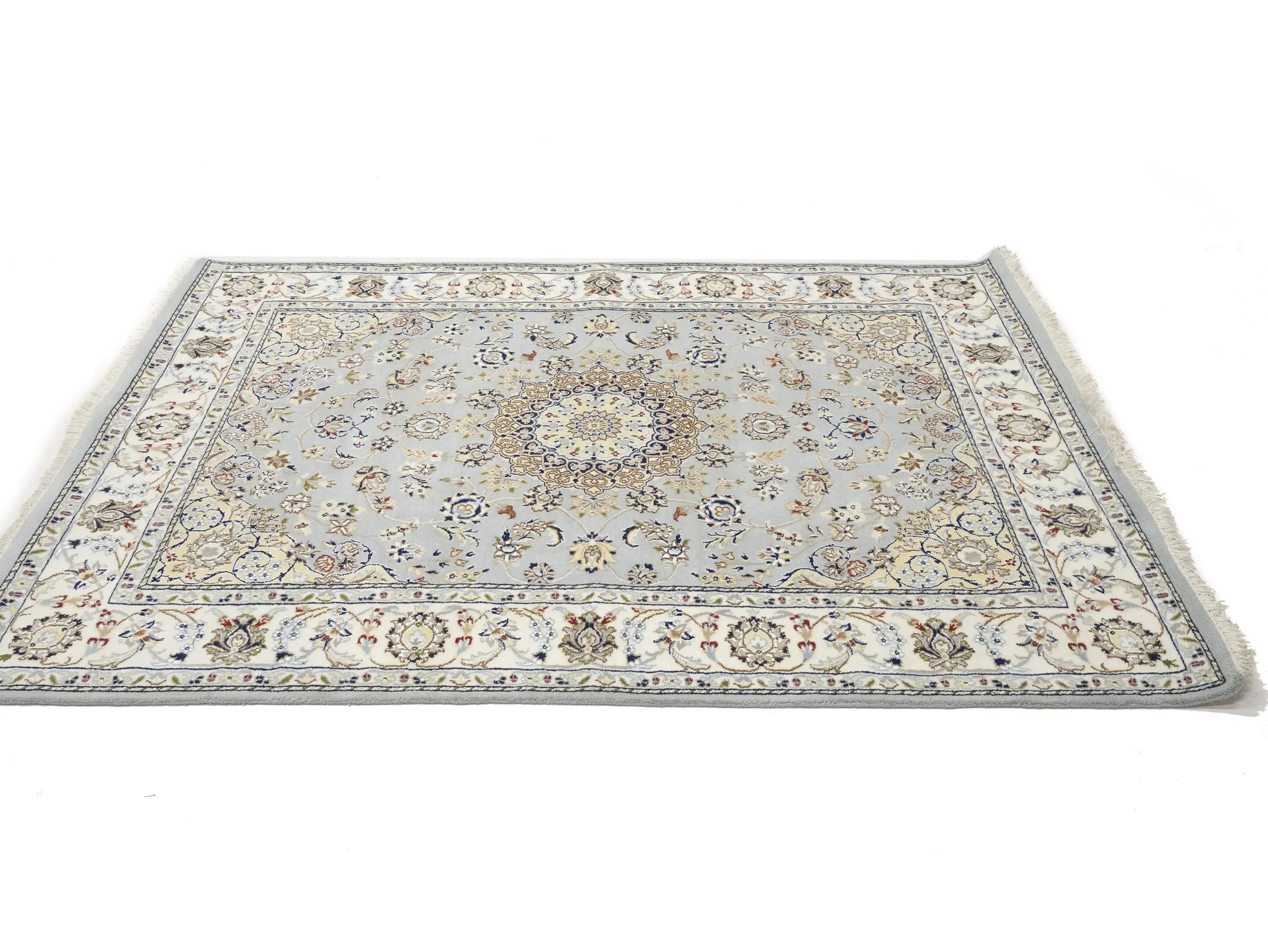 Light Blue Floral 5X7 Indo-Nain Oriental Rug