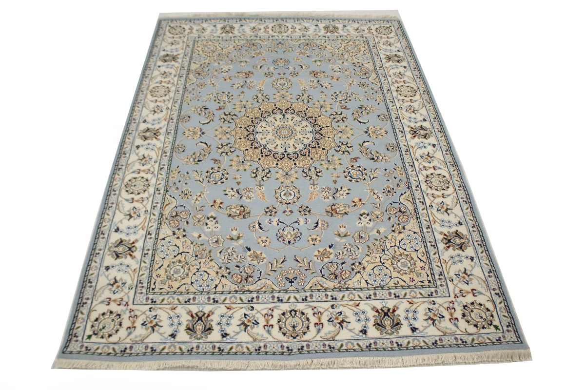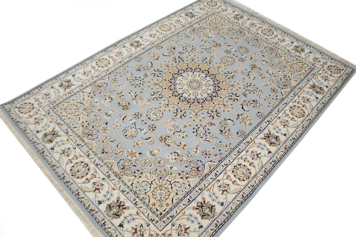 Light Blue Floral 5X7 Indo-Nain Oriental Rug
