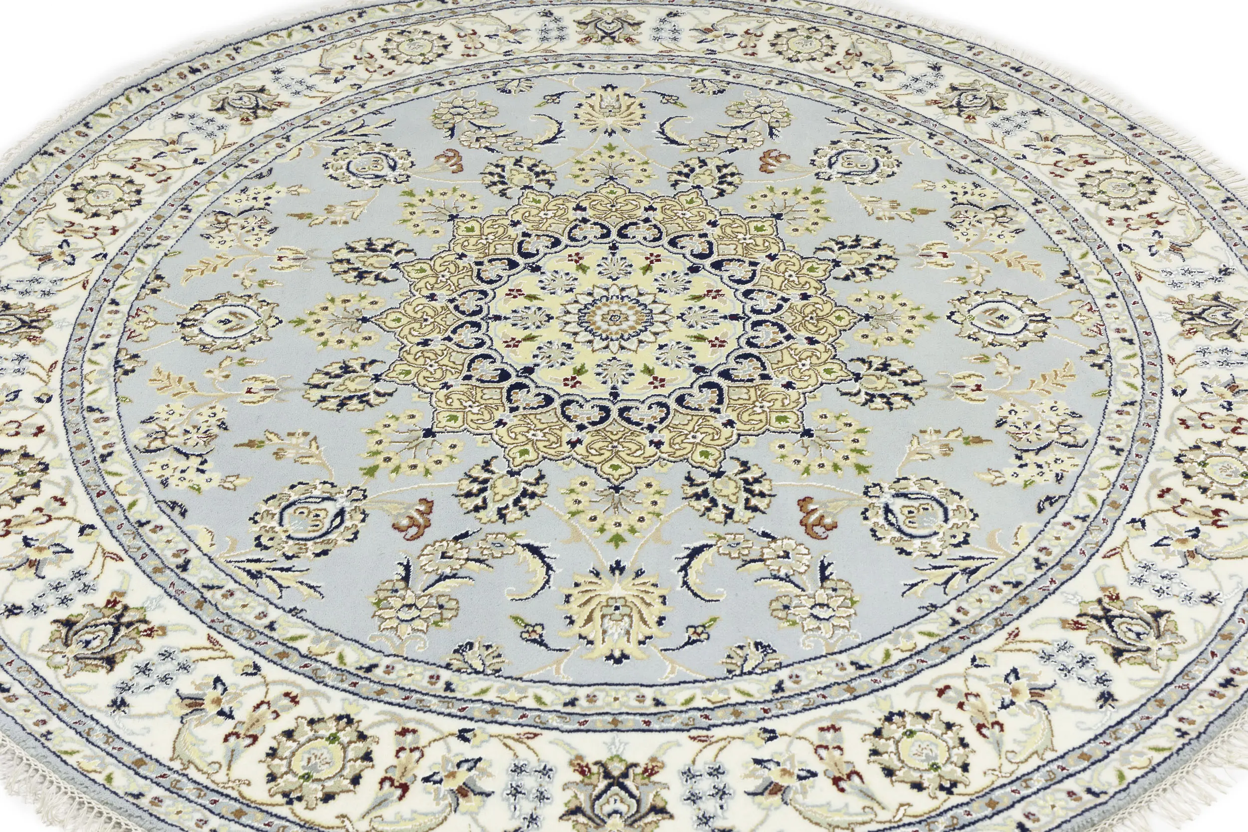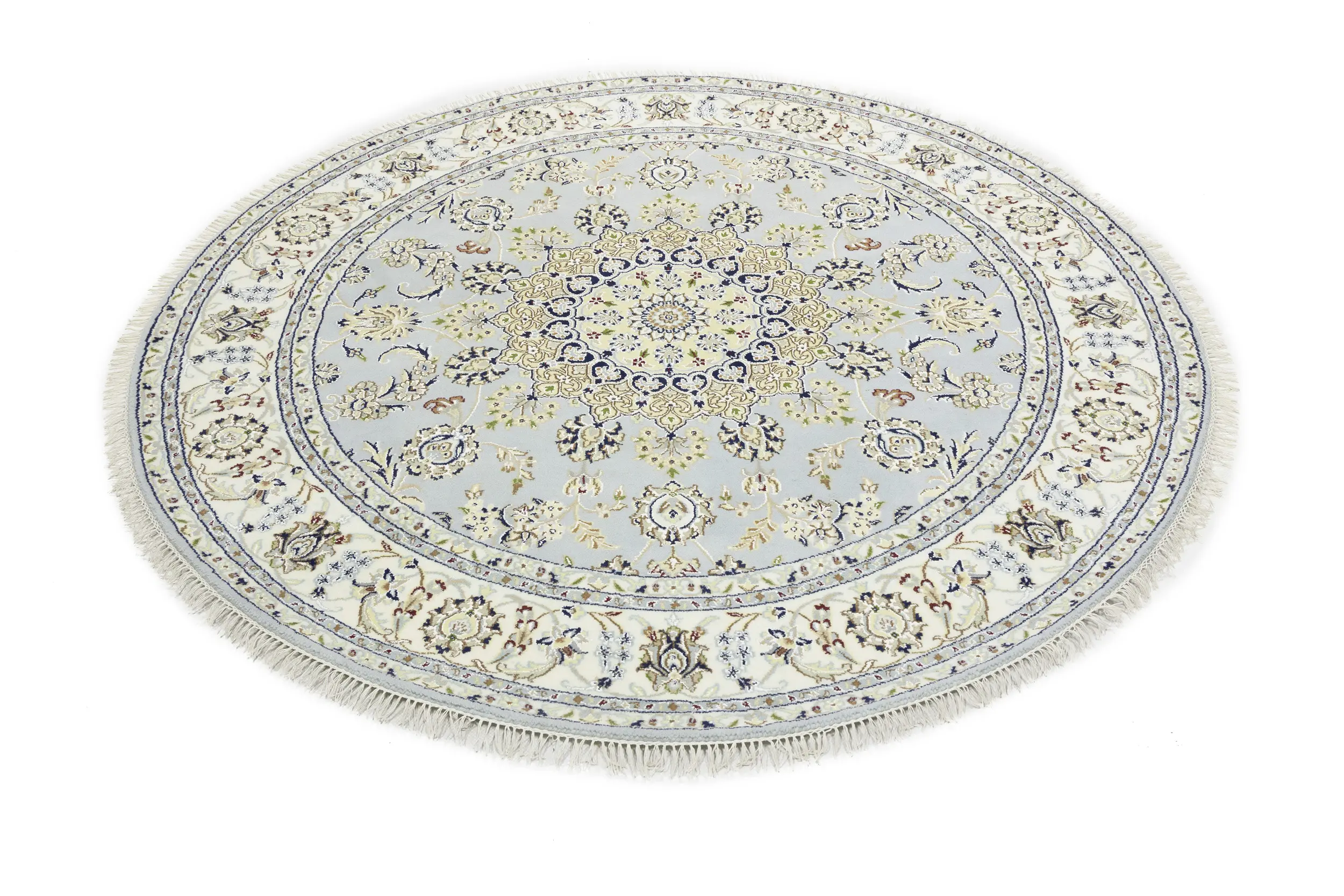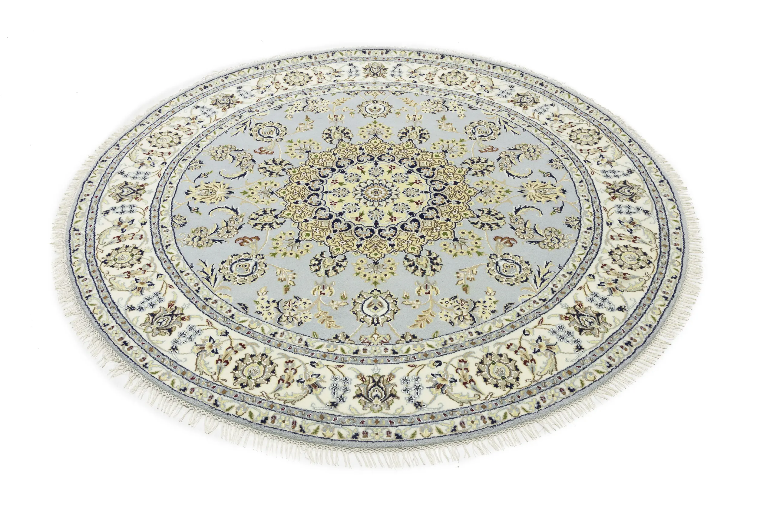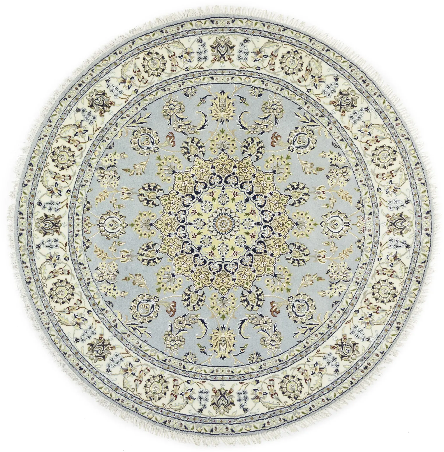 Light Blue Floral 6X6 Indo-Nain Oriental Round Rug