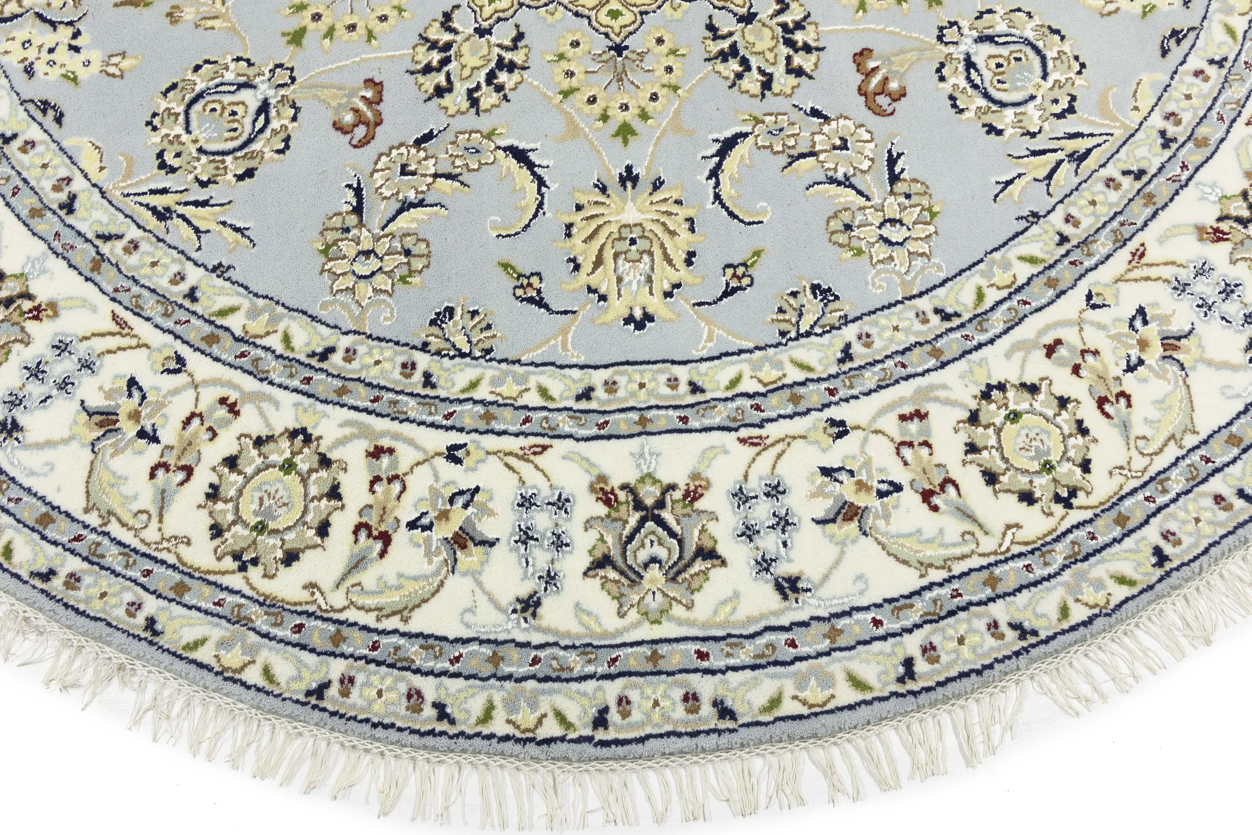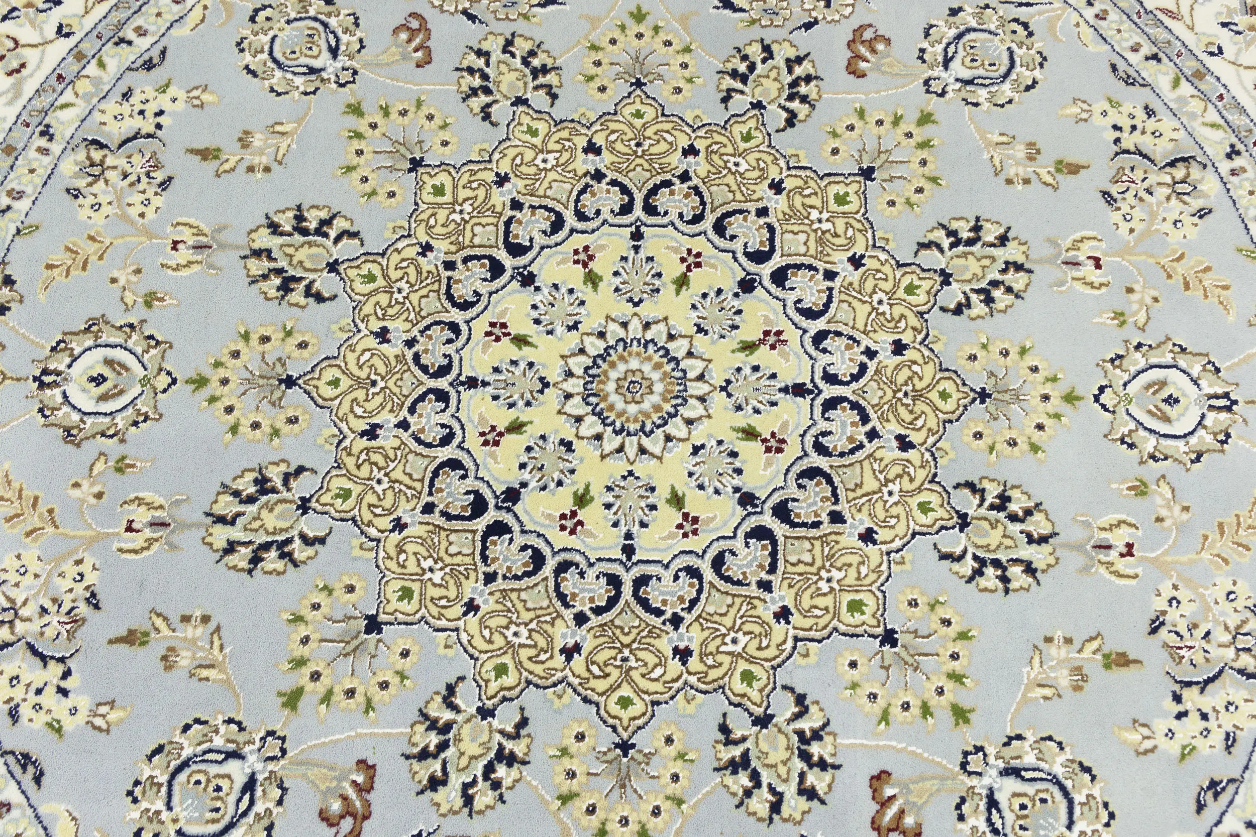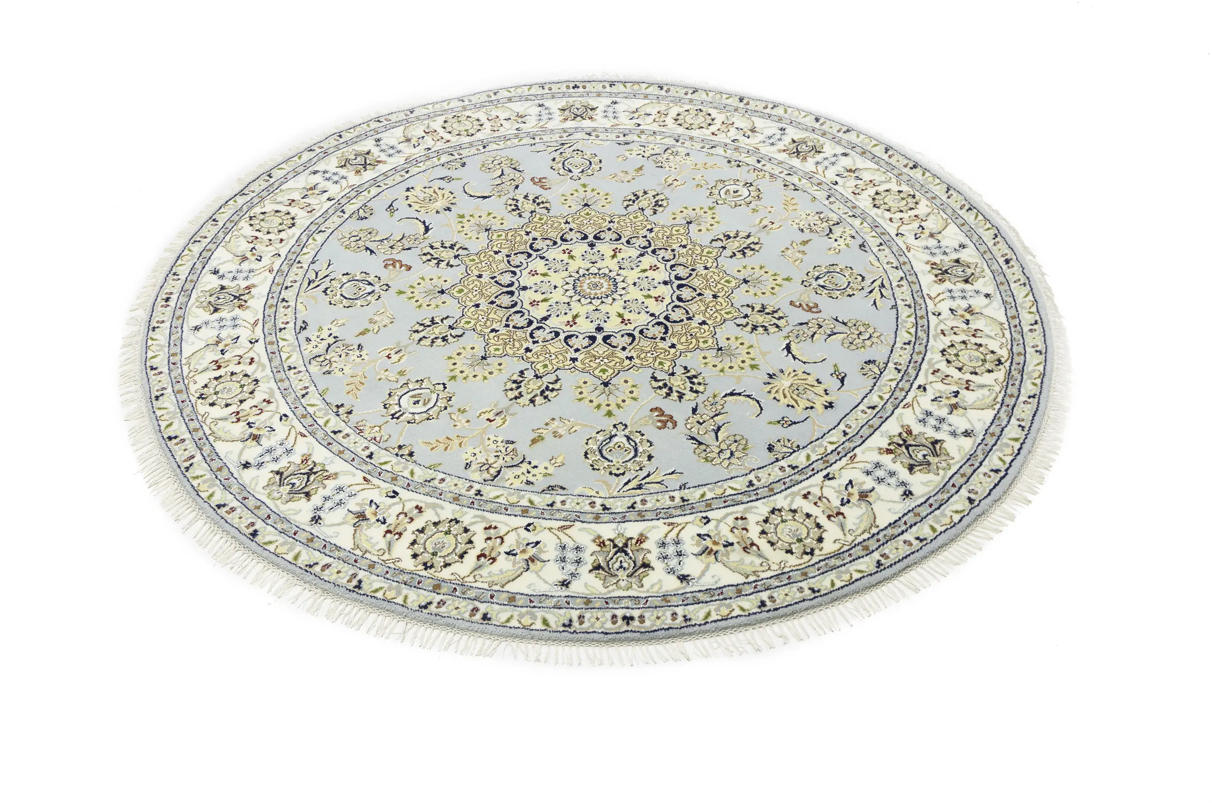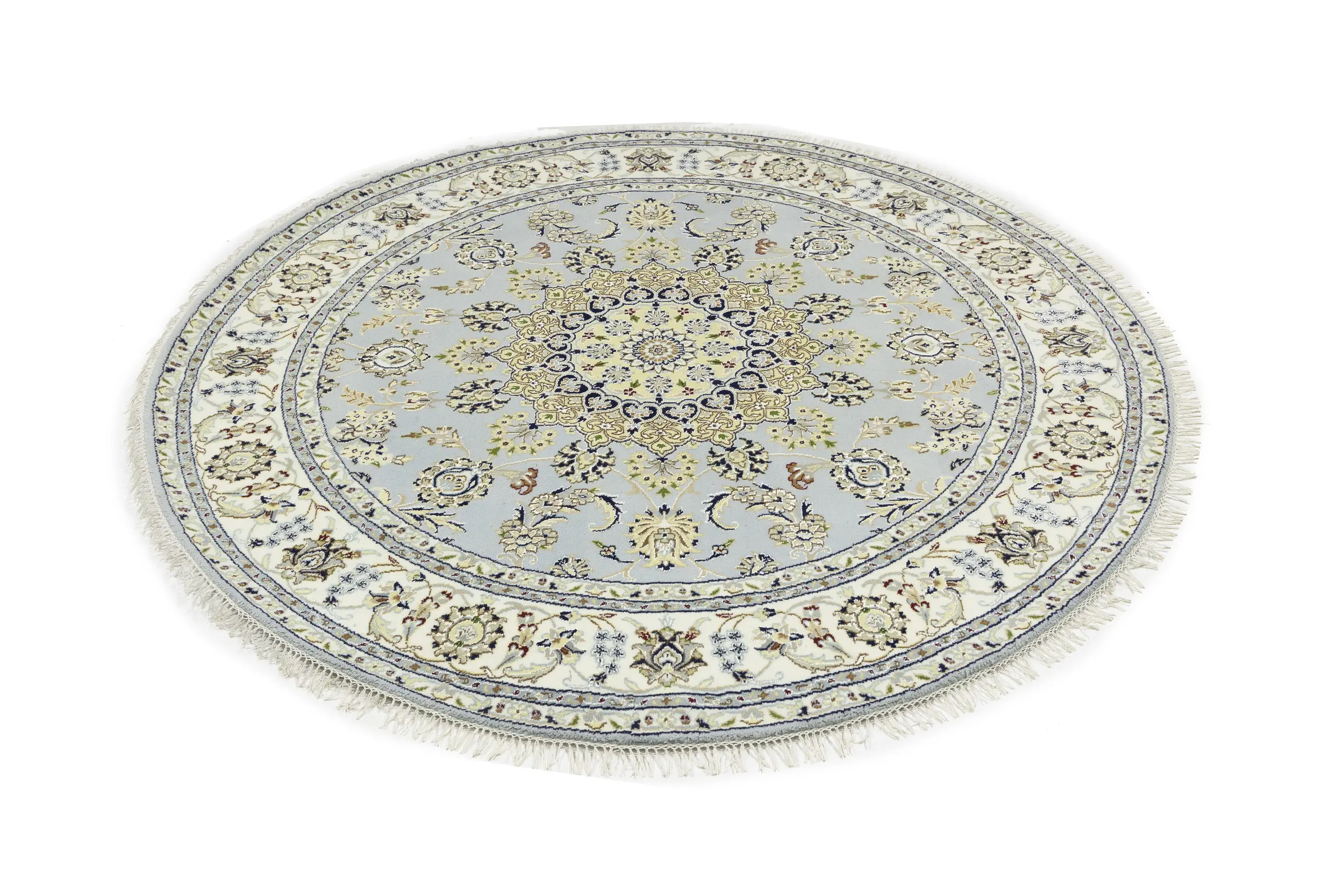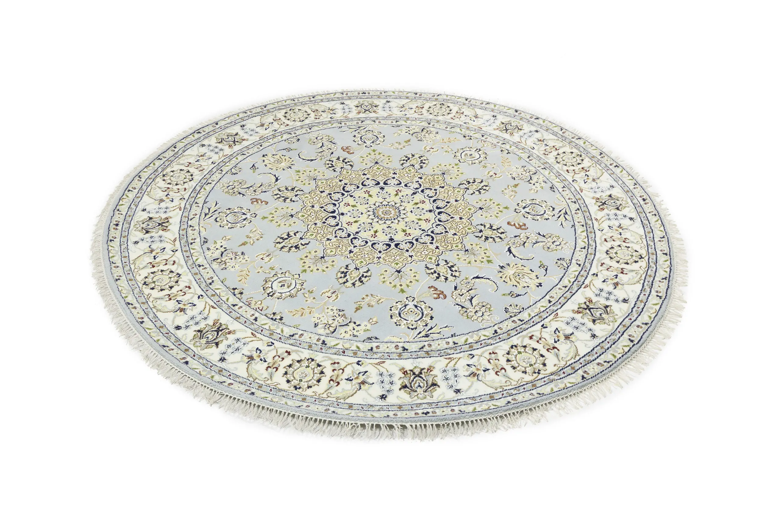 Light Blue Floral 6X6 Indo-Nain Oriental Round Rug
