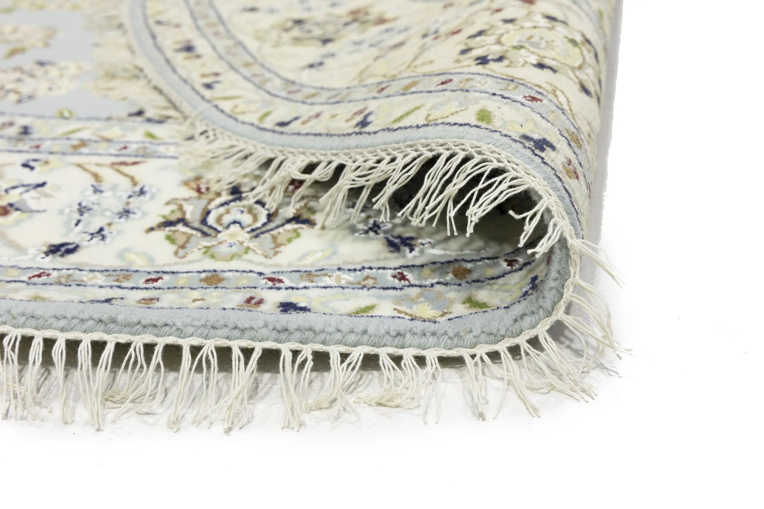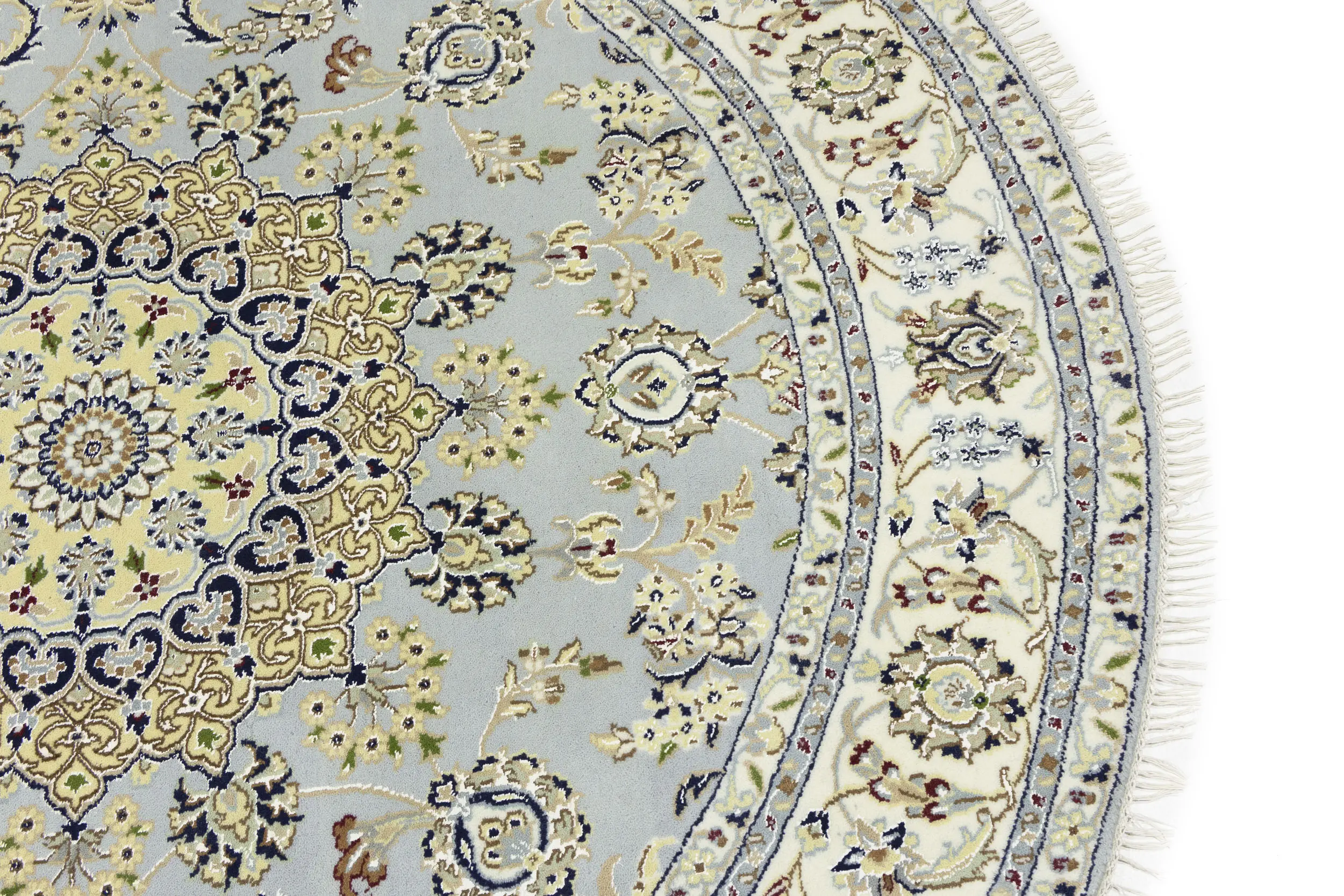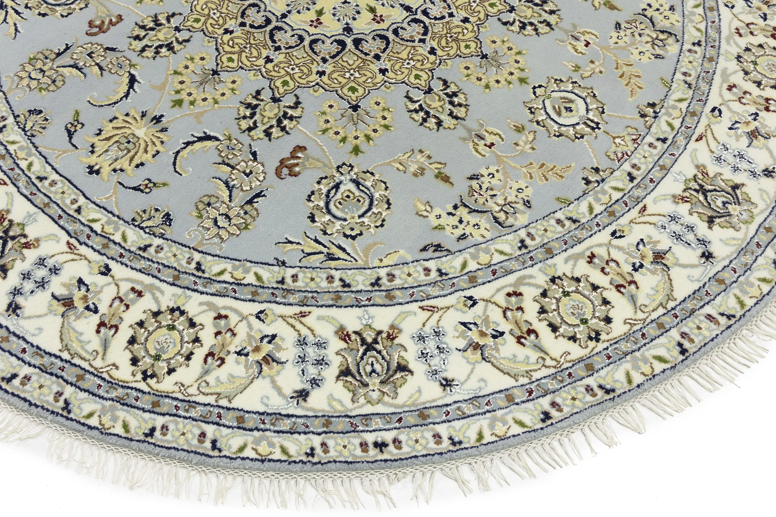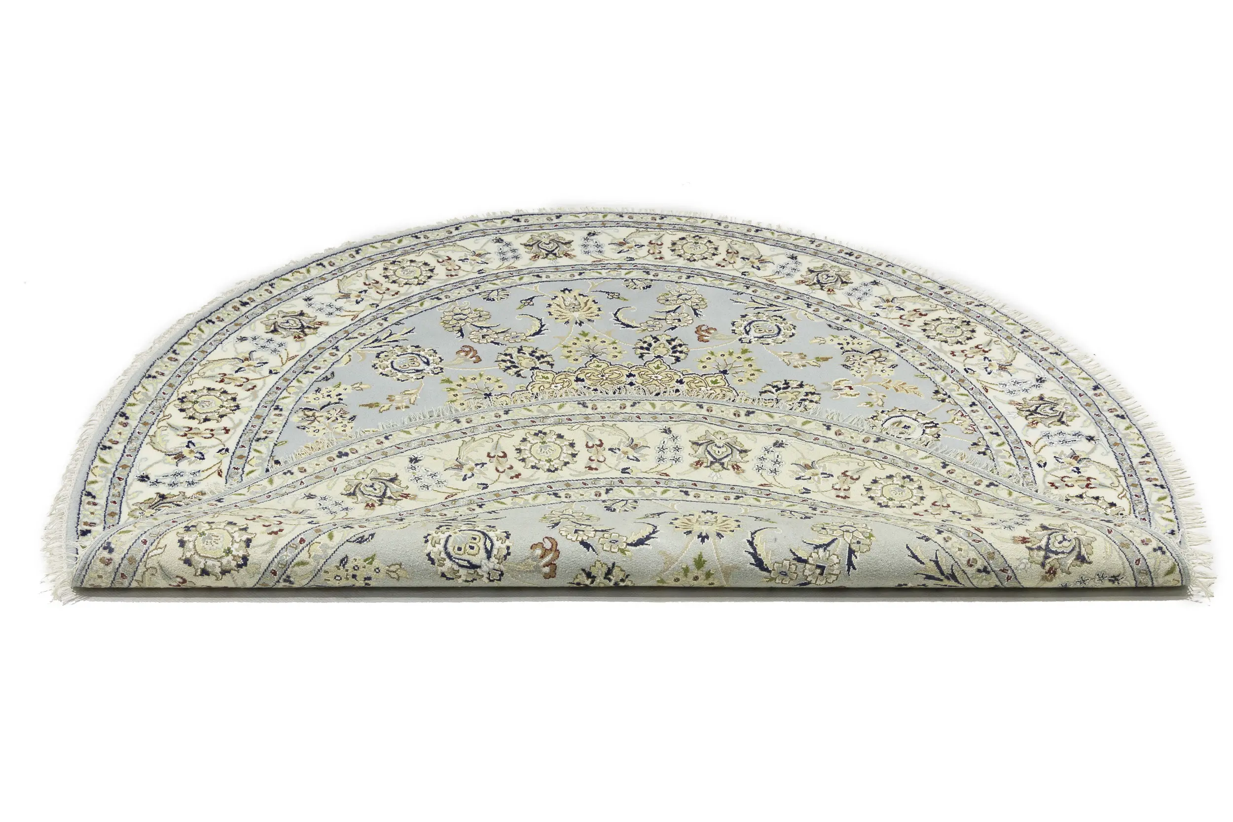 Light Blue Floral 6X6 Indo-Nain Oriental Round Rug