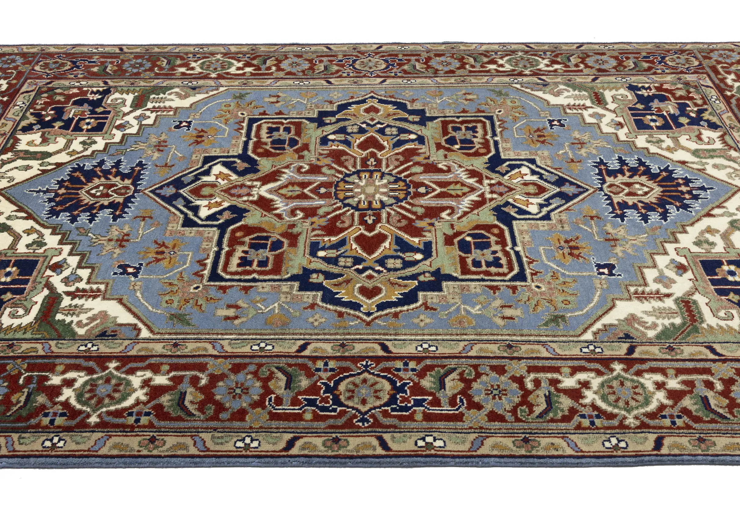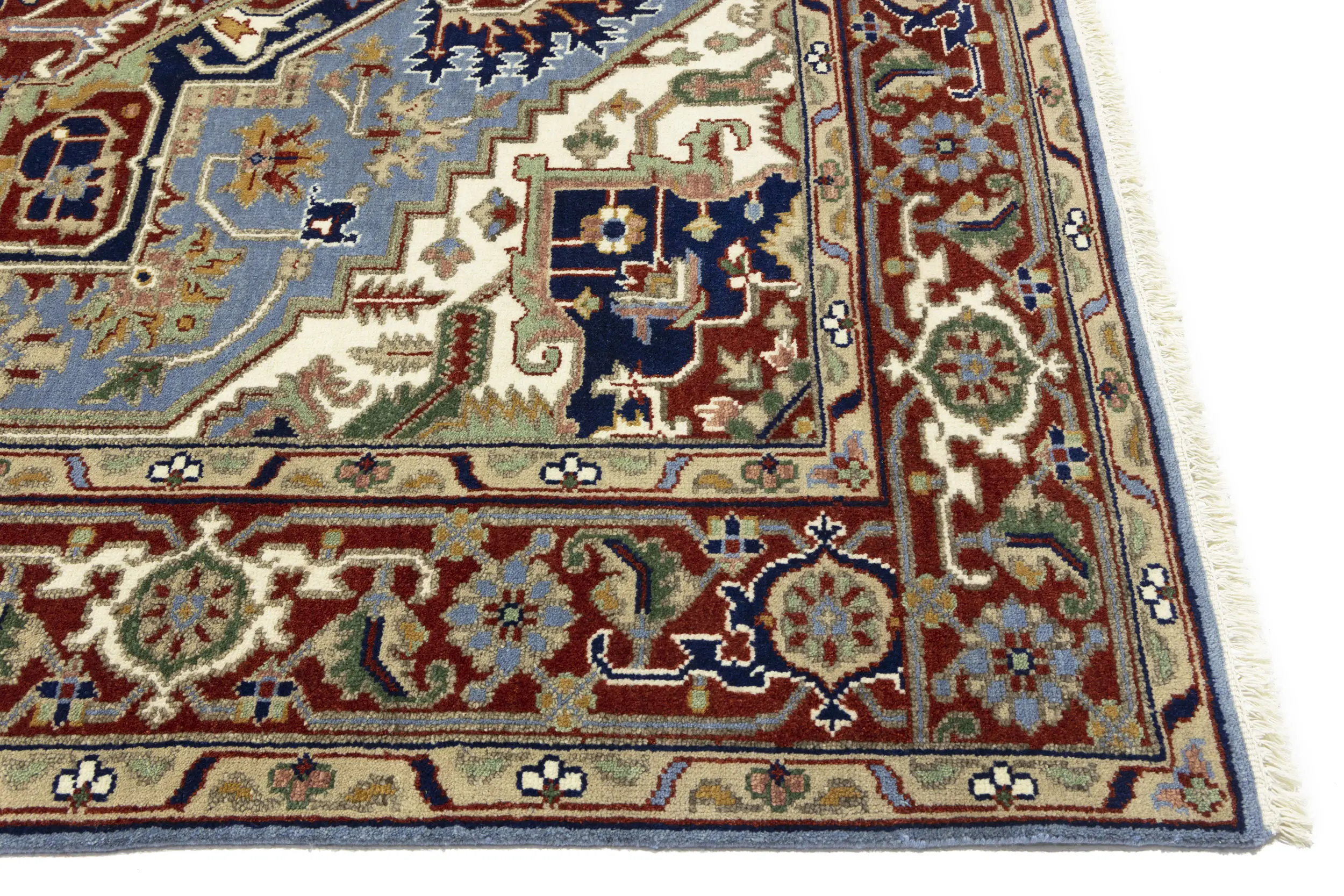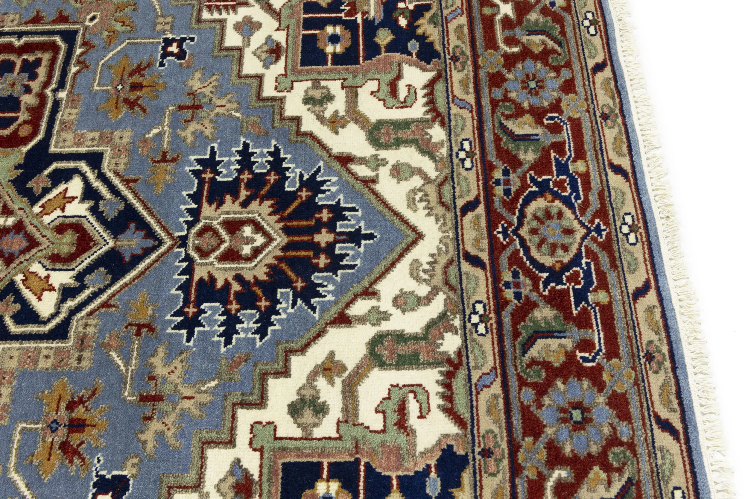 Light Blue Floral 9X12 Heriz Serapi Oriental Rug