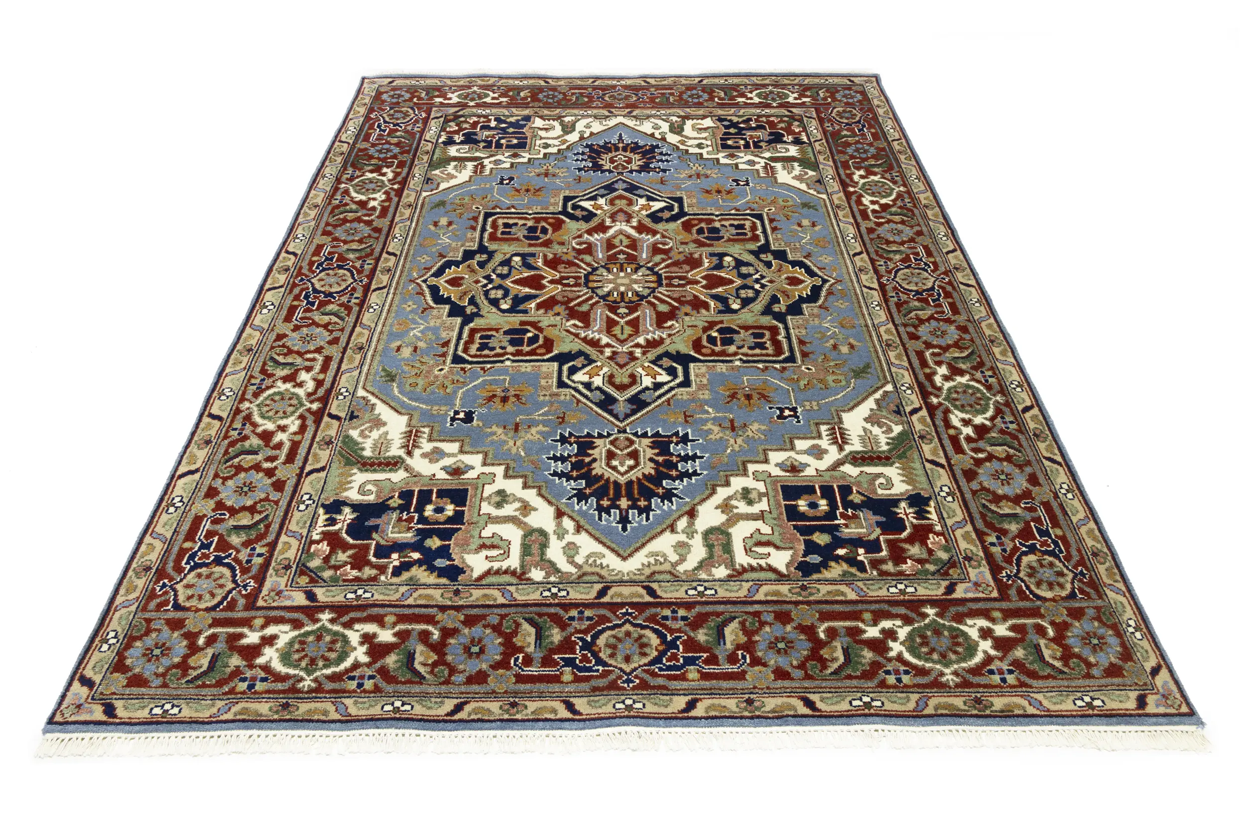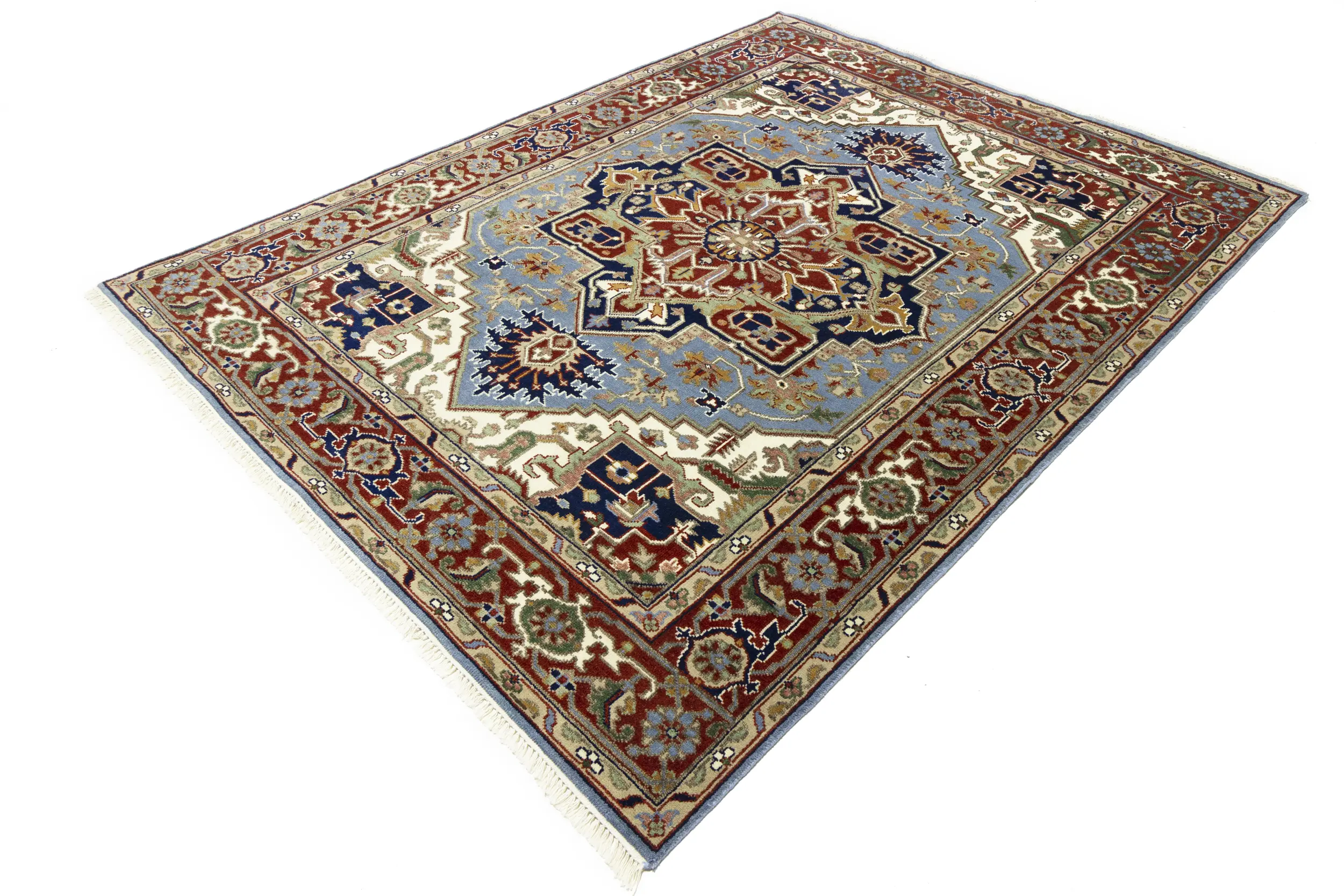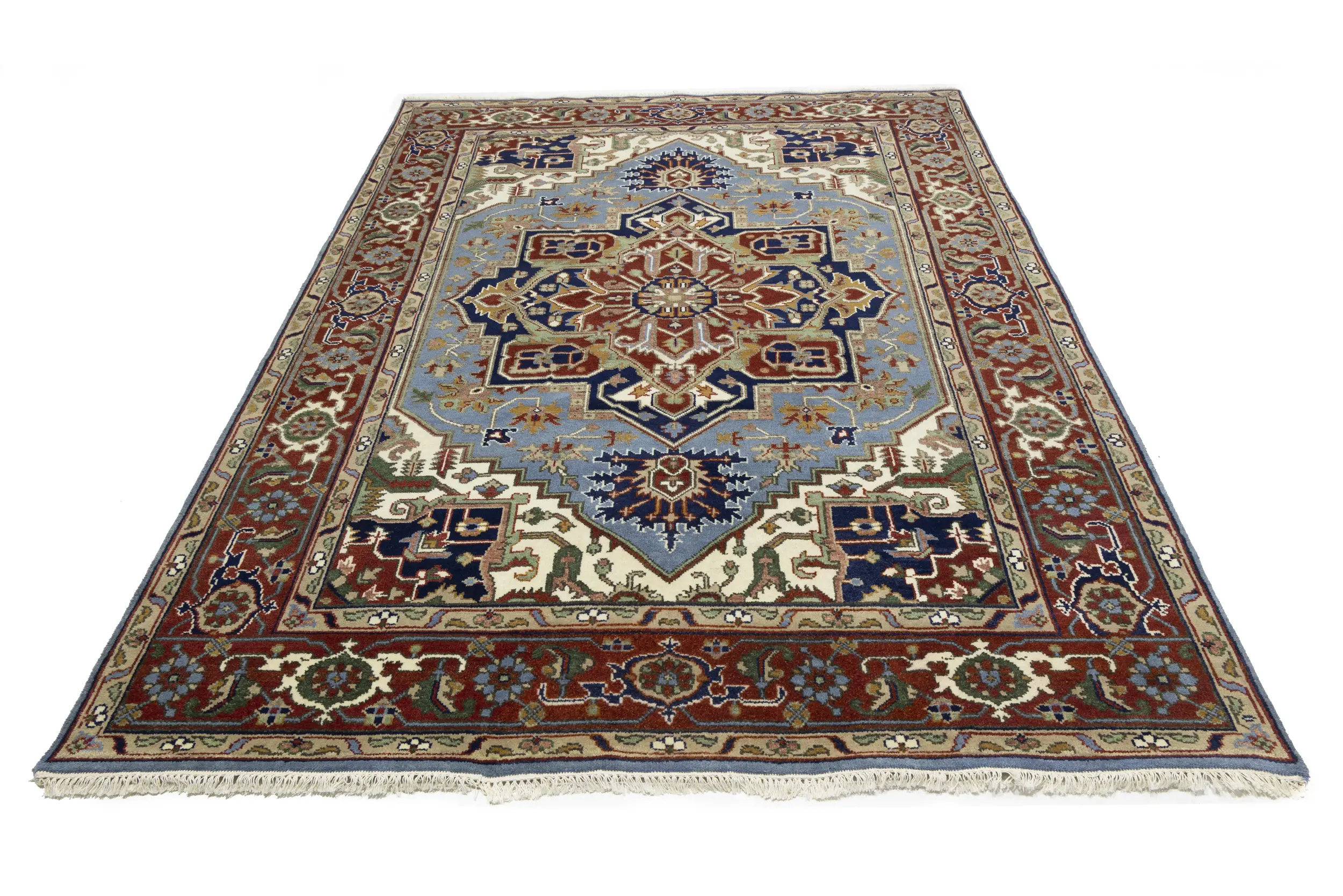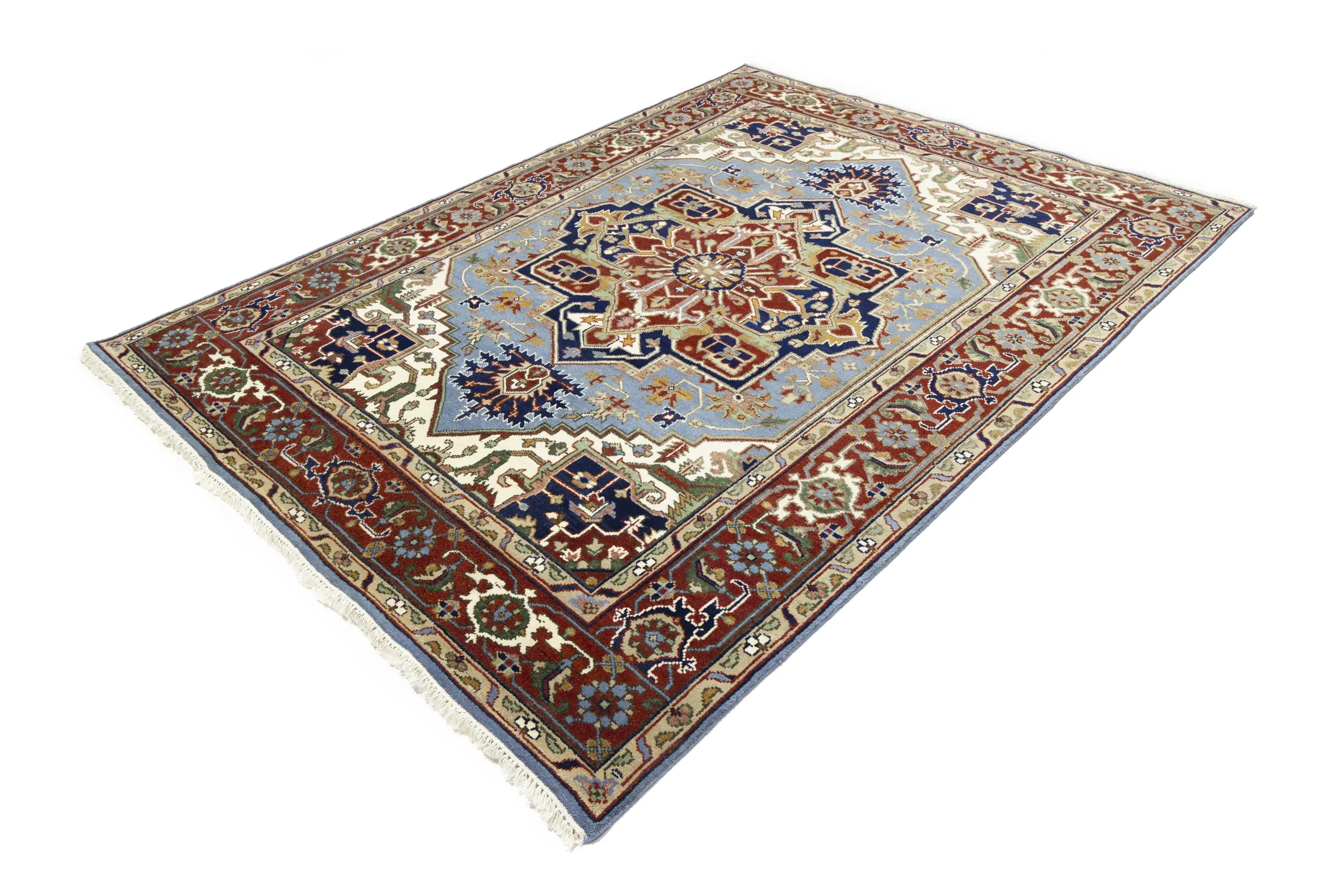 Light Blue Floral 9X12 Heriz Serapi Oriental Rug
