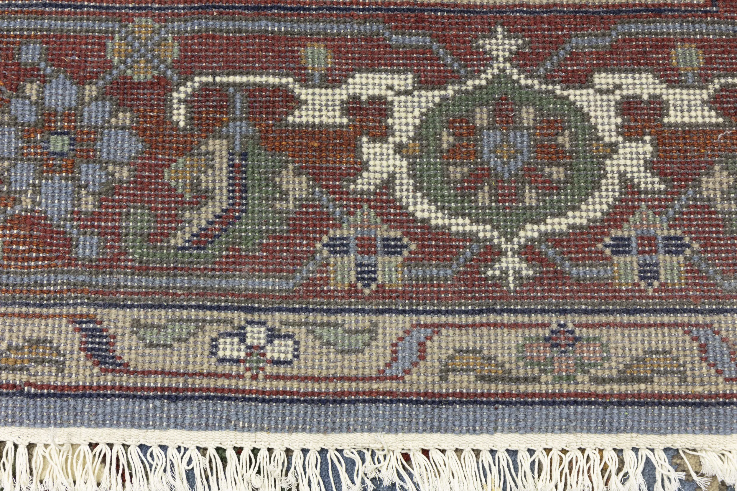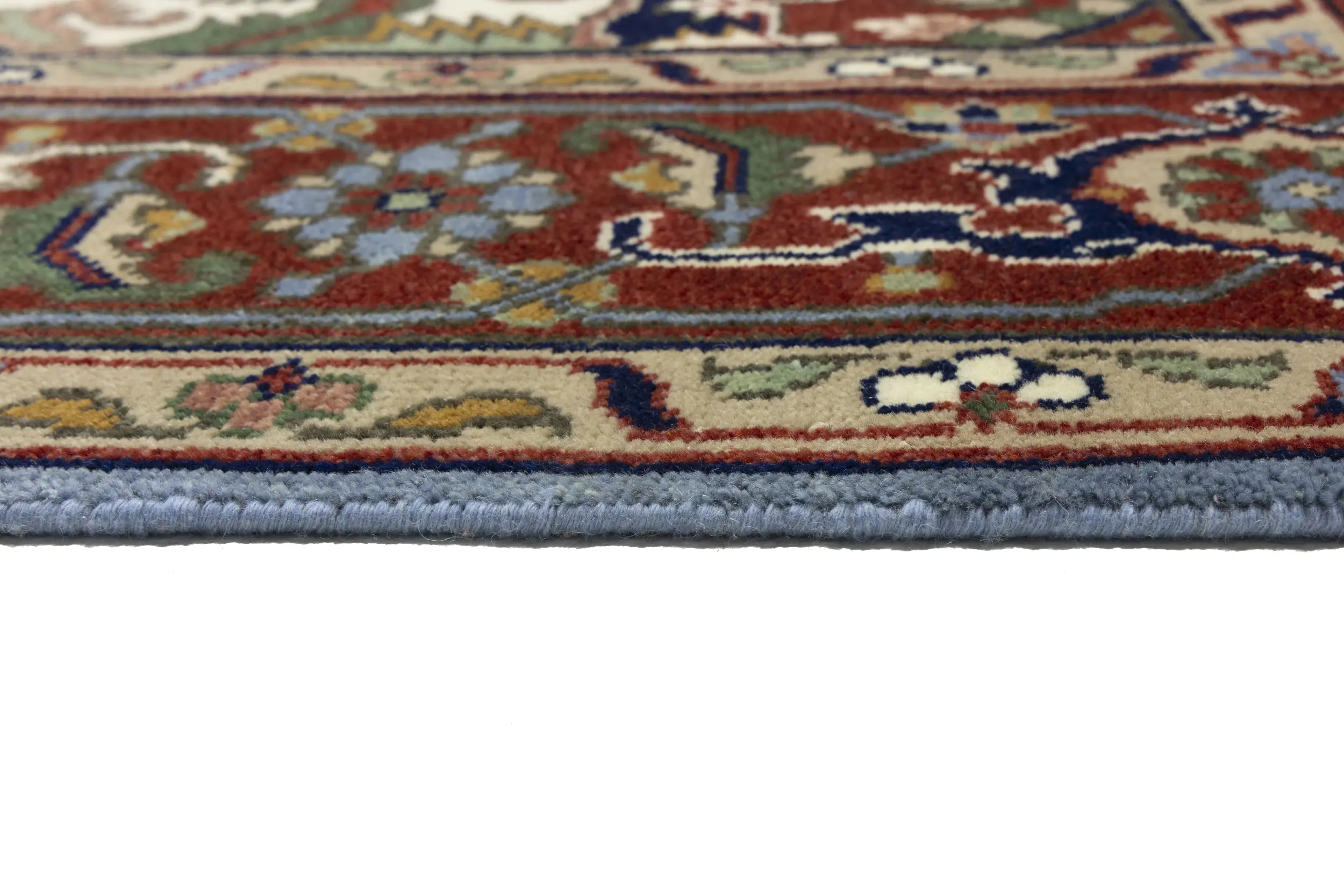 This original 9X12 blue new Oriental rug was finely knotted by the hands of weavers influenced by a variety of amazing artistic designs, to recreate the aged look of the exceptional piece with a richness of color and embellished background field. What set this vintage style Oriental area rug from the others are the material and dye used (wool pile and cotton foundation), knot count, antique designs, fantastic grades, and its regional historical connection: it has deep roots, from the story of the people who produced it to the meaning of the symbols and colors displayed across its canvas that have been praised for centuries. This Indian home décor carpet will be completely cozy and inviting that never will go out of style!