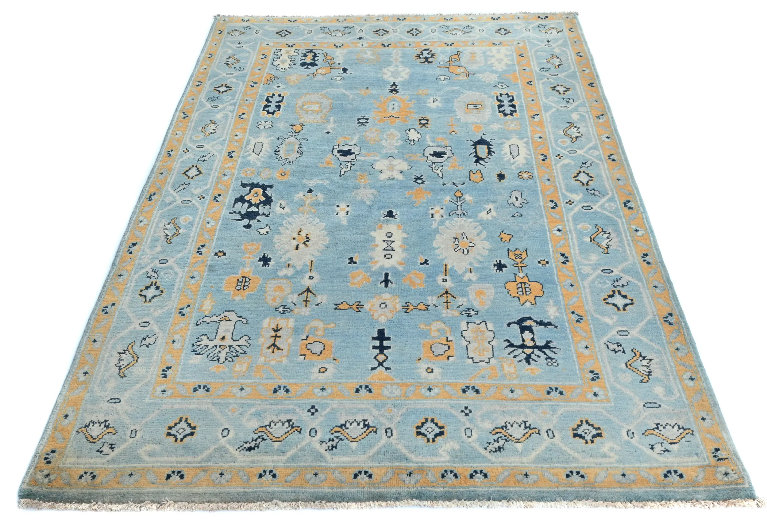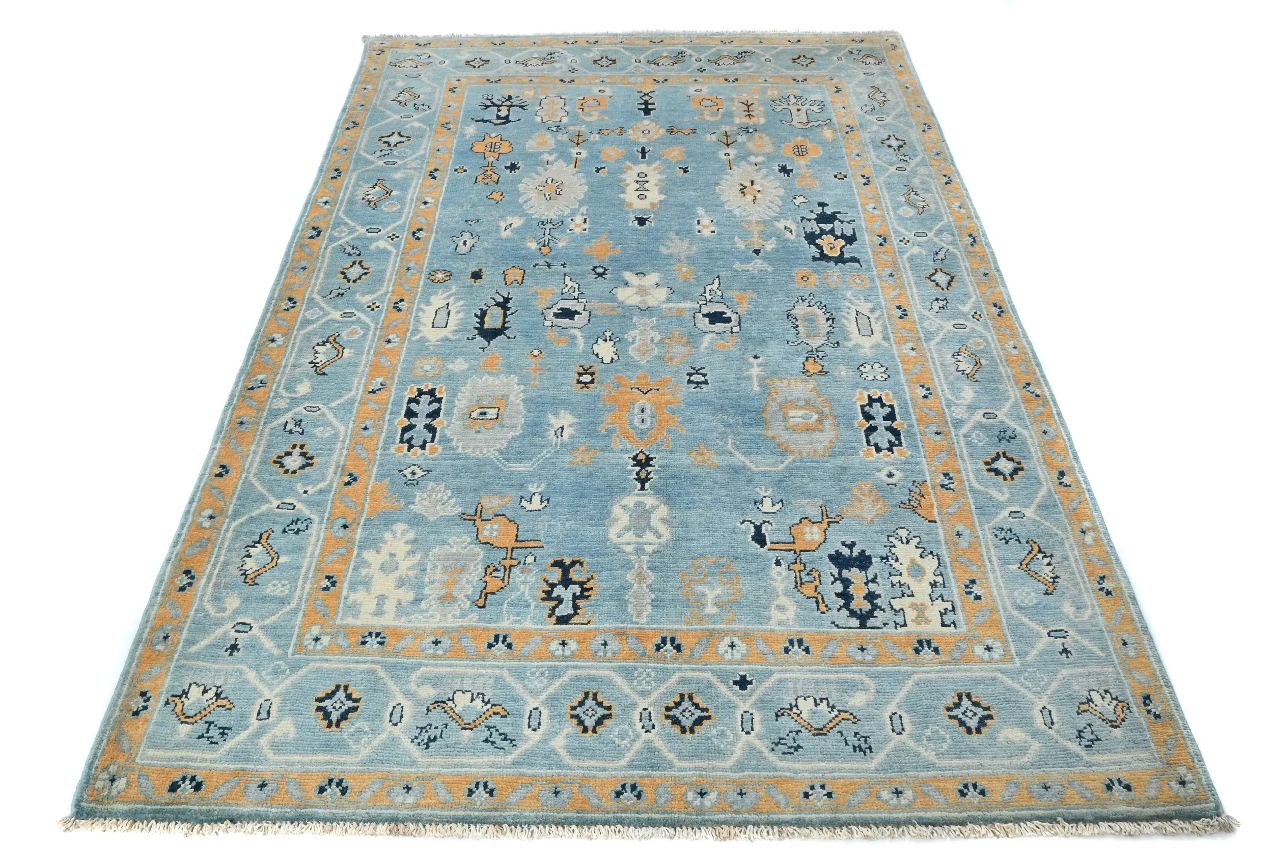 Light Blue Floral Modern 4X6 Oushak Kazak Pakistan Oriental Rug